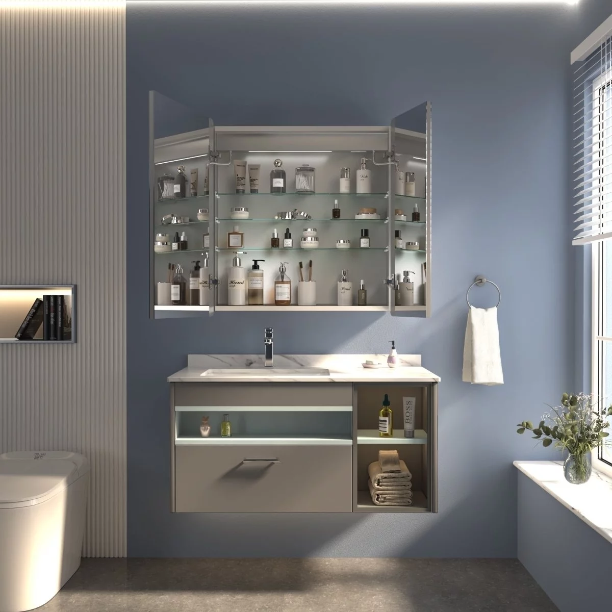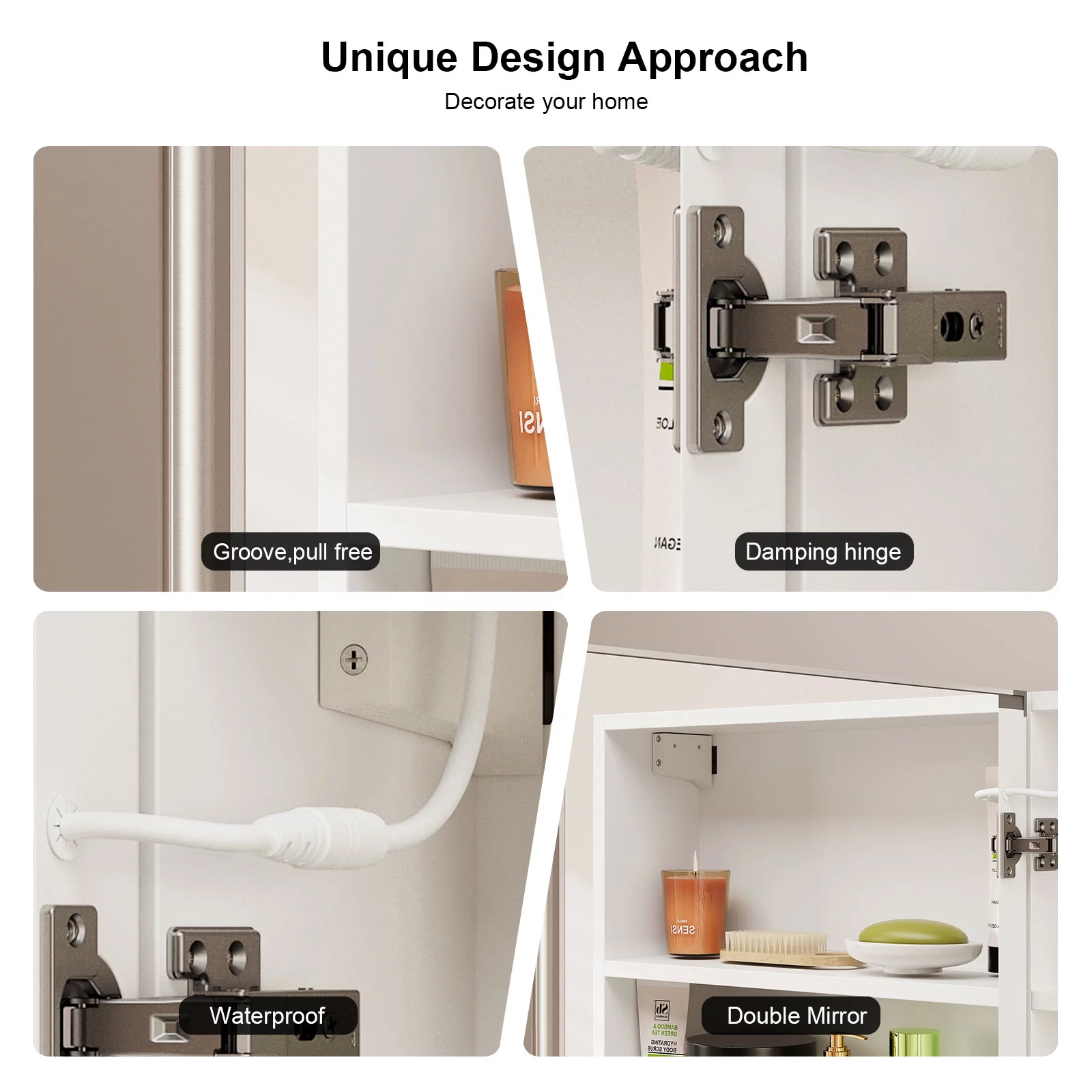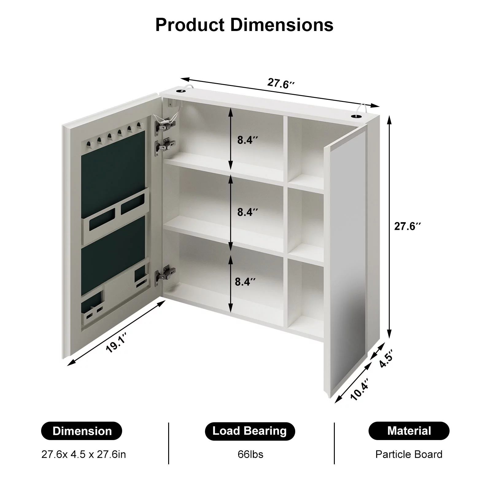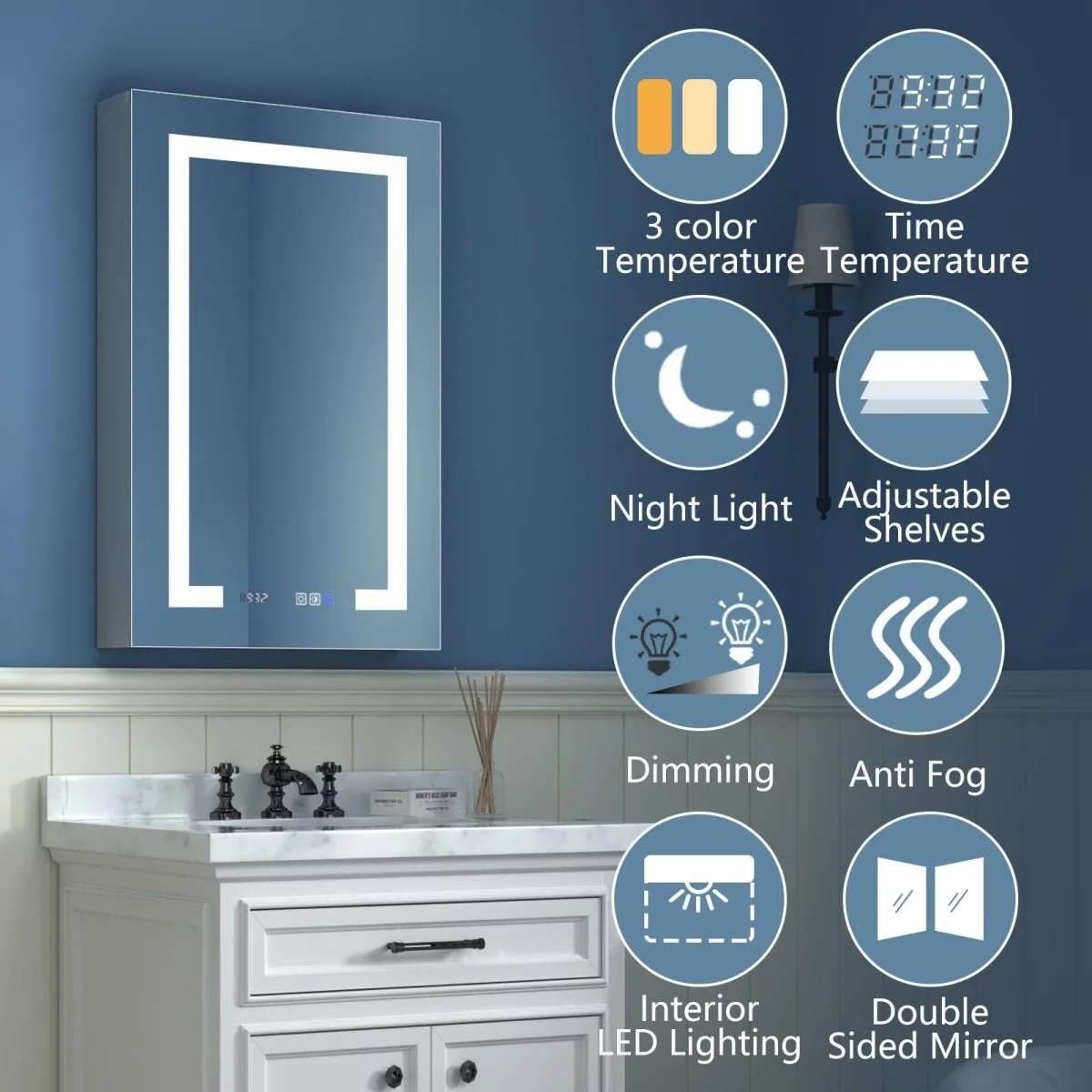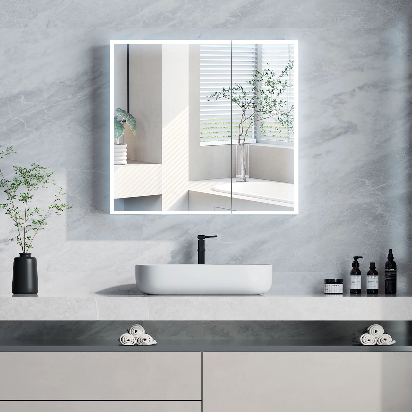 ExBrite 30" W x 32" H LED Lighted Bathroom Medicine Cabinet with Mirror Recessed or Surface Mounted LED Medicine Cabinet