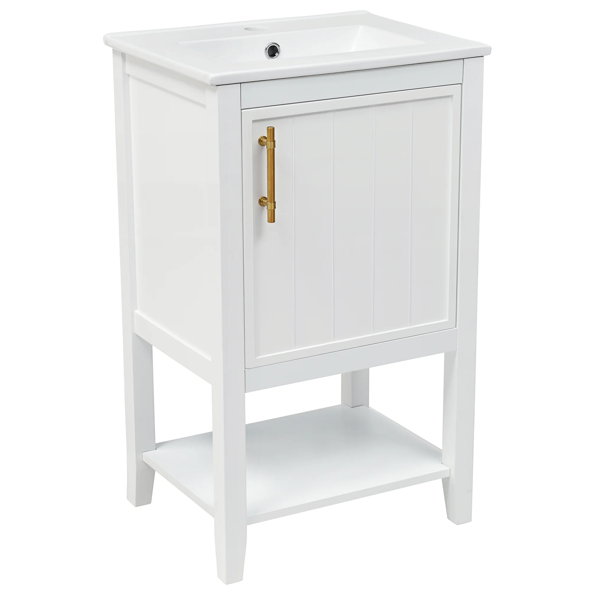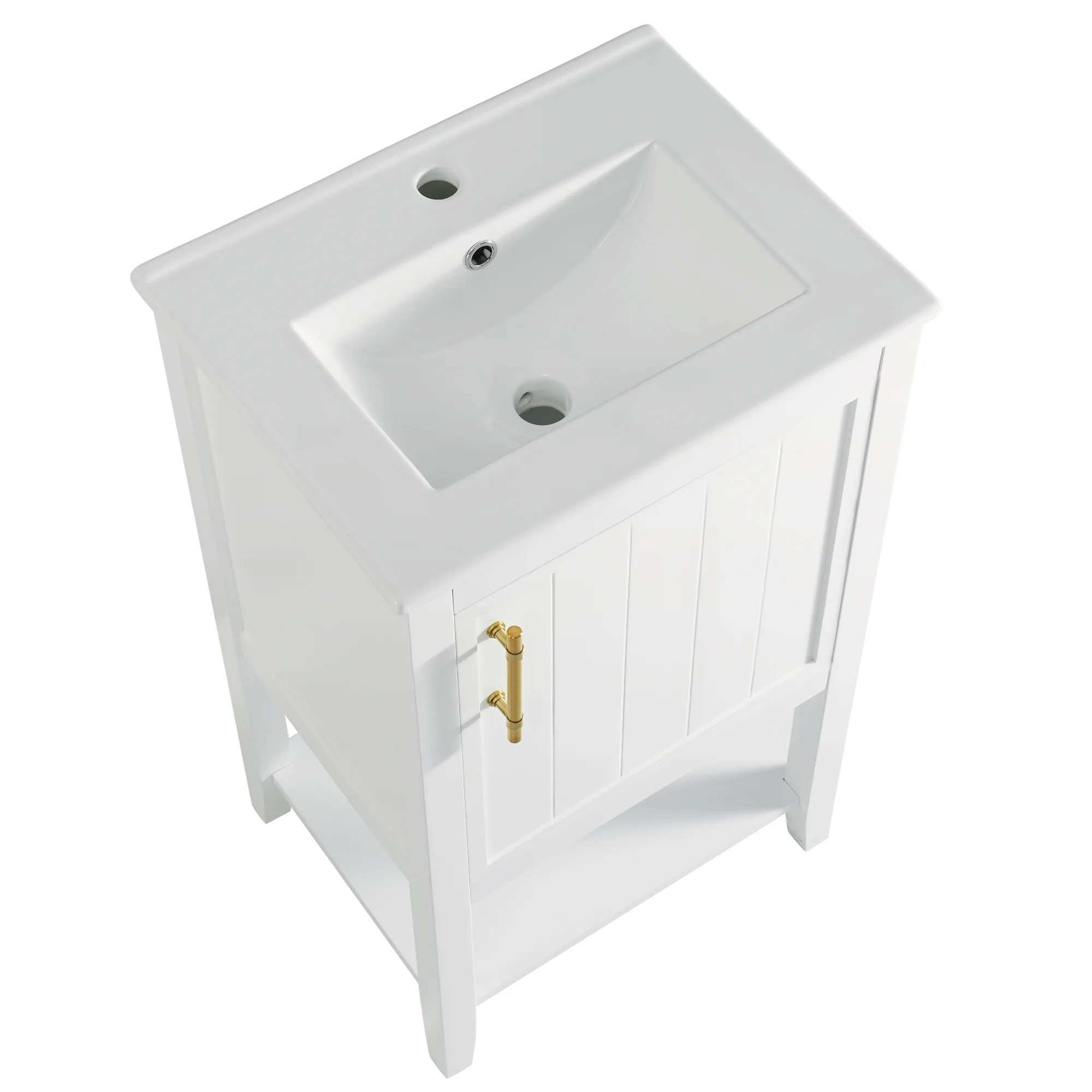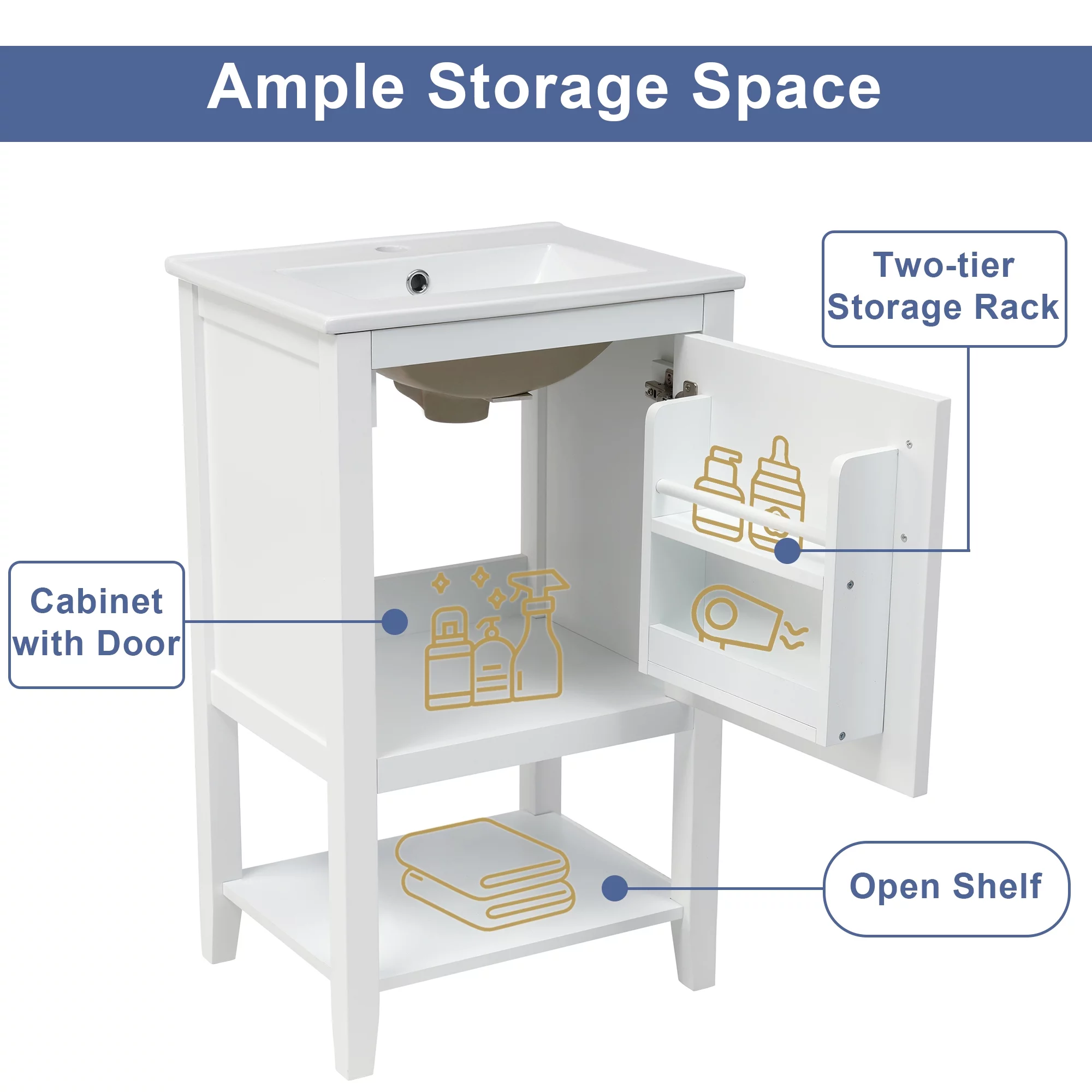 EUROCO 20" Bathroom Vanity with Sink, Bathroom Cabinet with Soft Closing Door, Storage Rack and Open Shelf, White