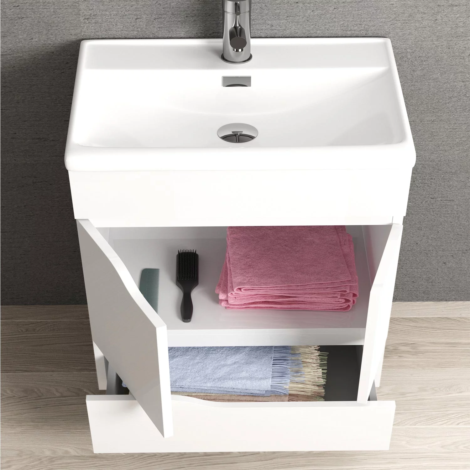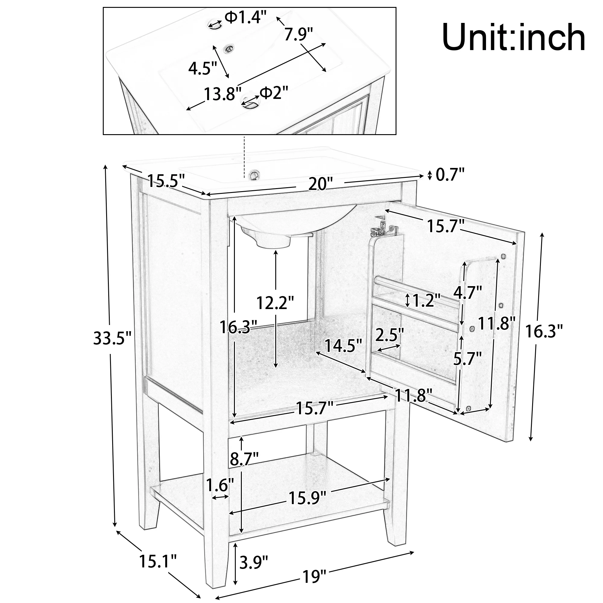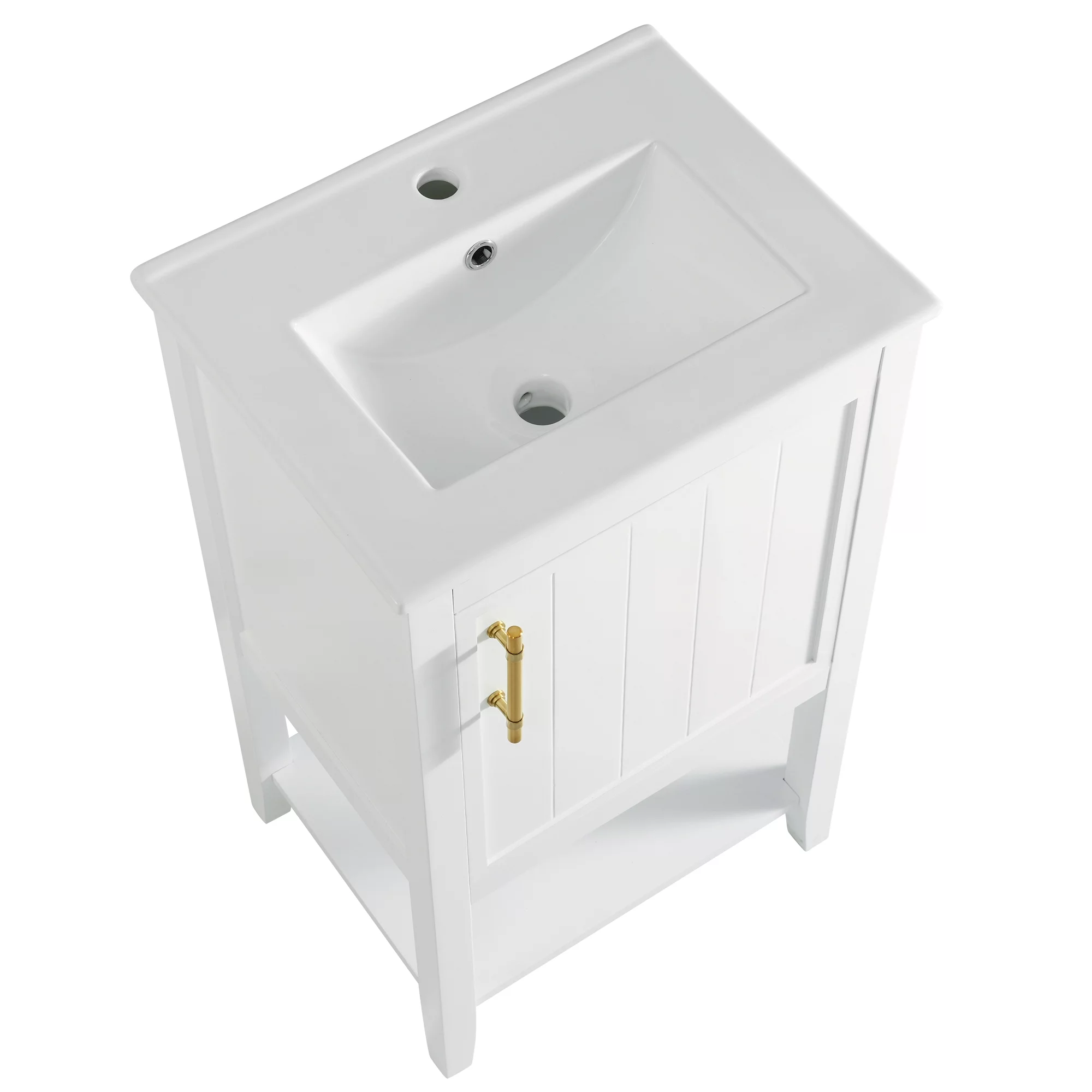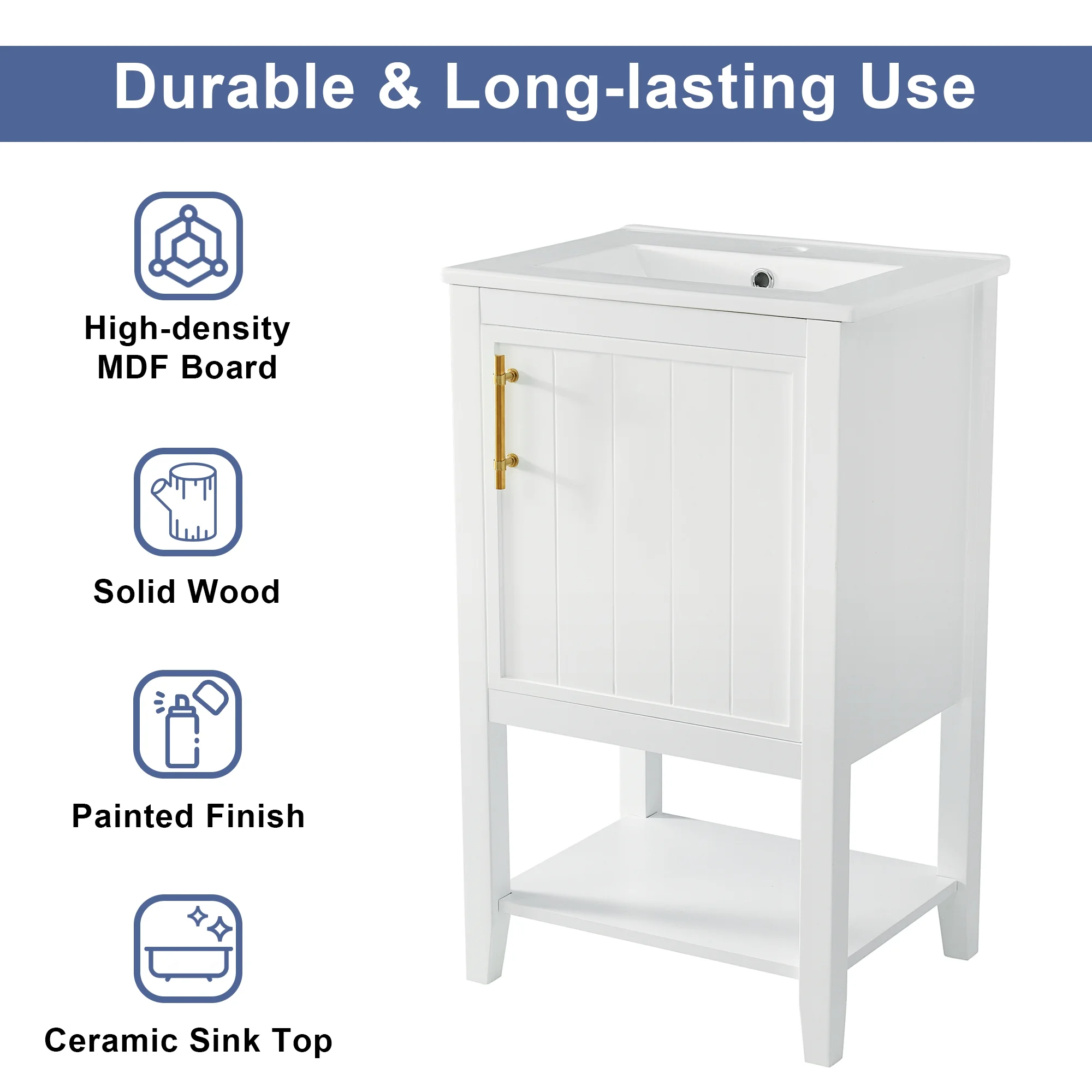 EUROCO 20" Bathroom Vanity with Sink, Bathroom Cabinet with Soft Closing Door, Storage Rack and Open Shelf, White