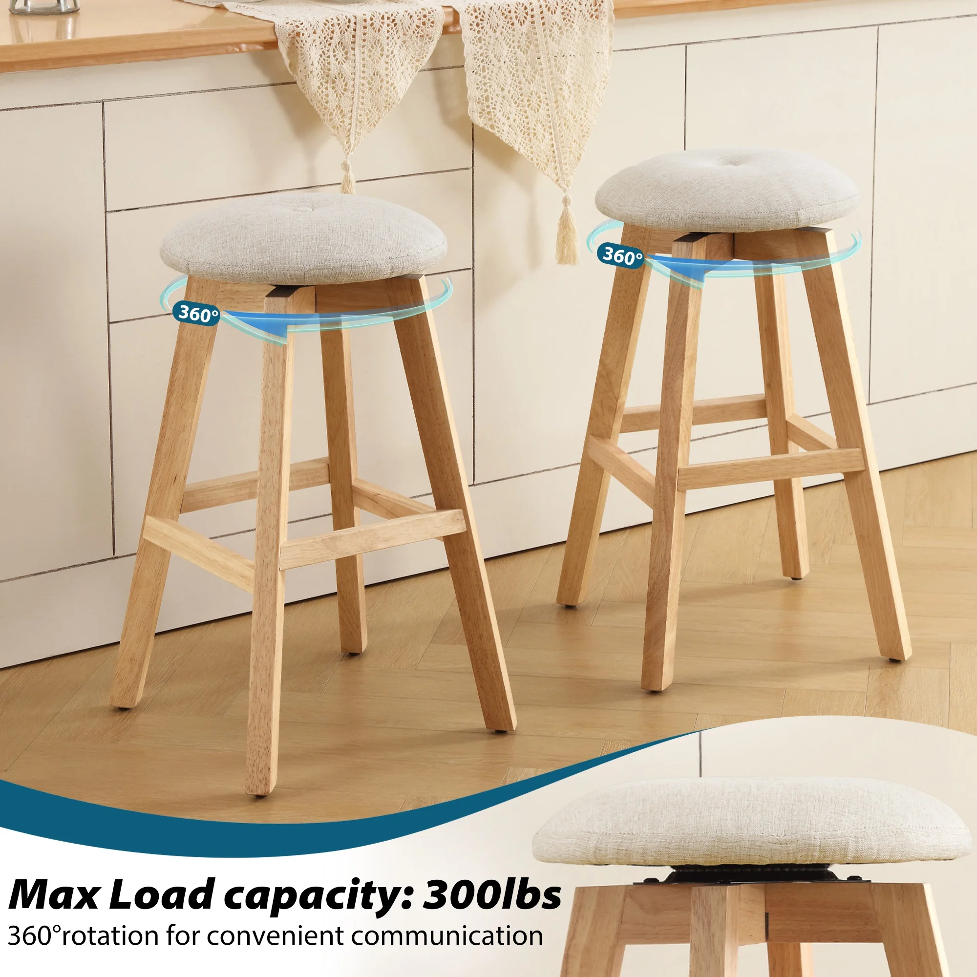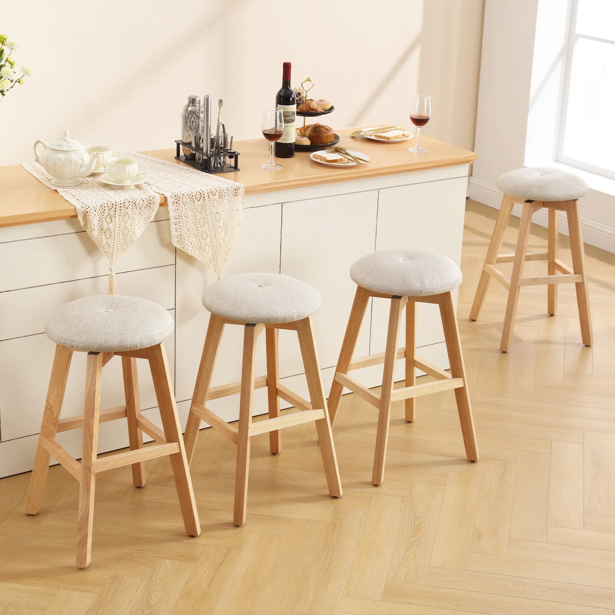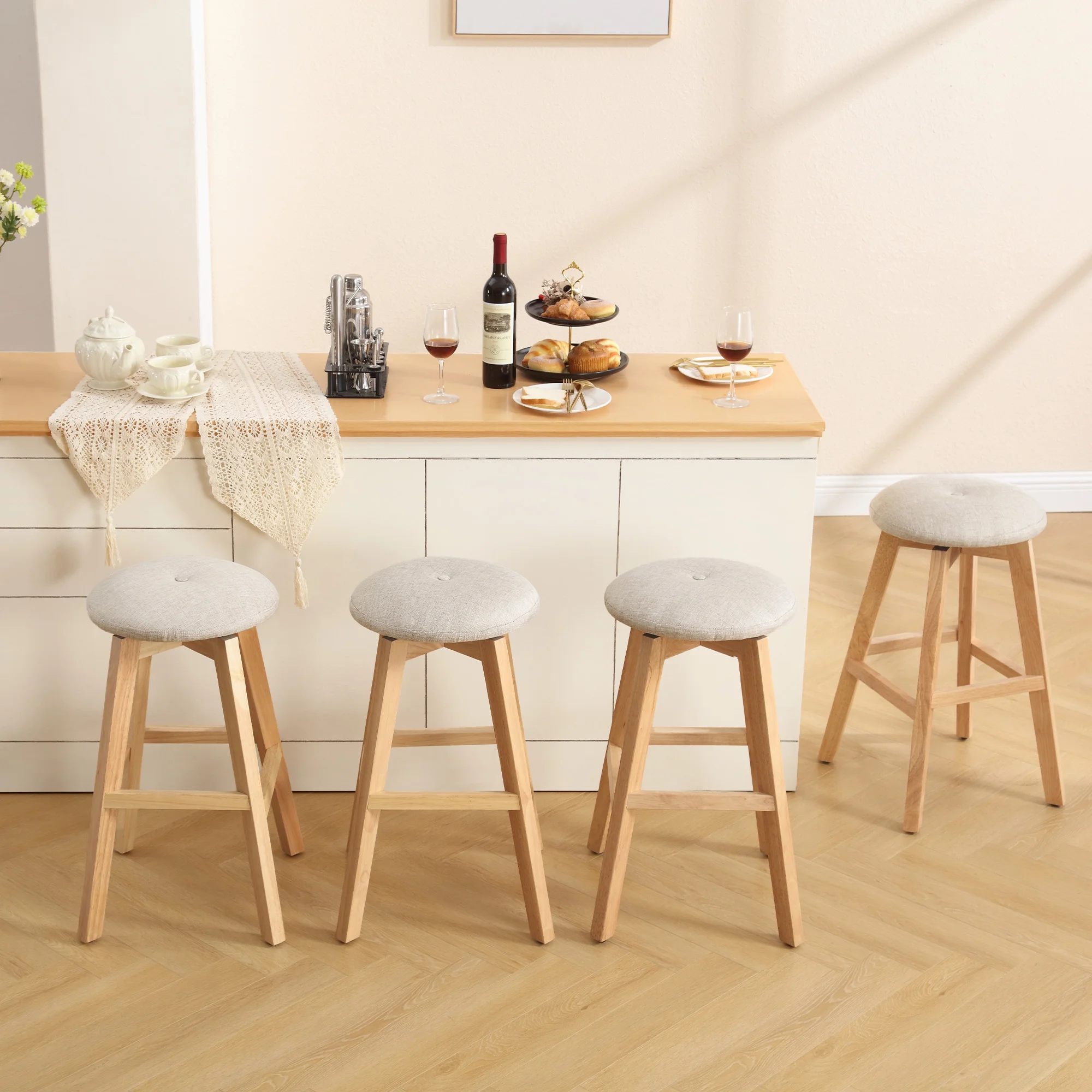 AUSTUFF 26" Bar Stools Set of 4 Swivel Counter Height Bar Stools for Kitchen Island Button Tufted, Natural & Khaki