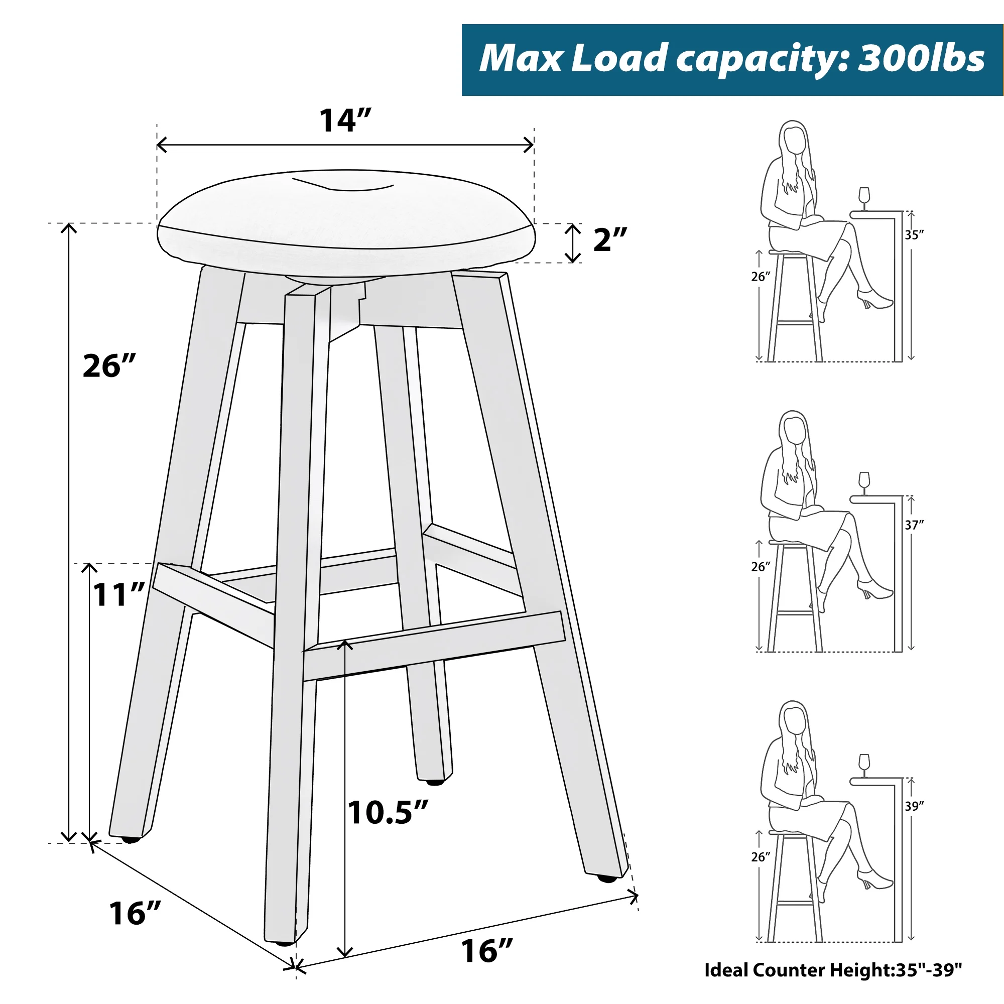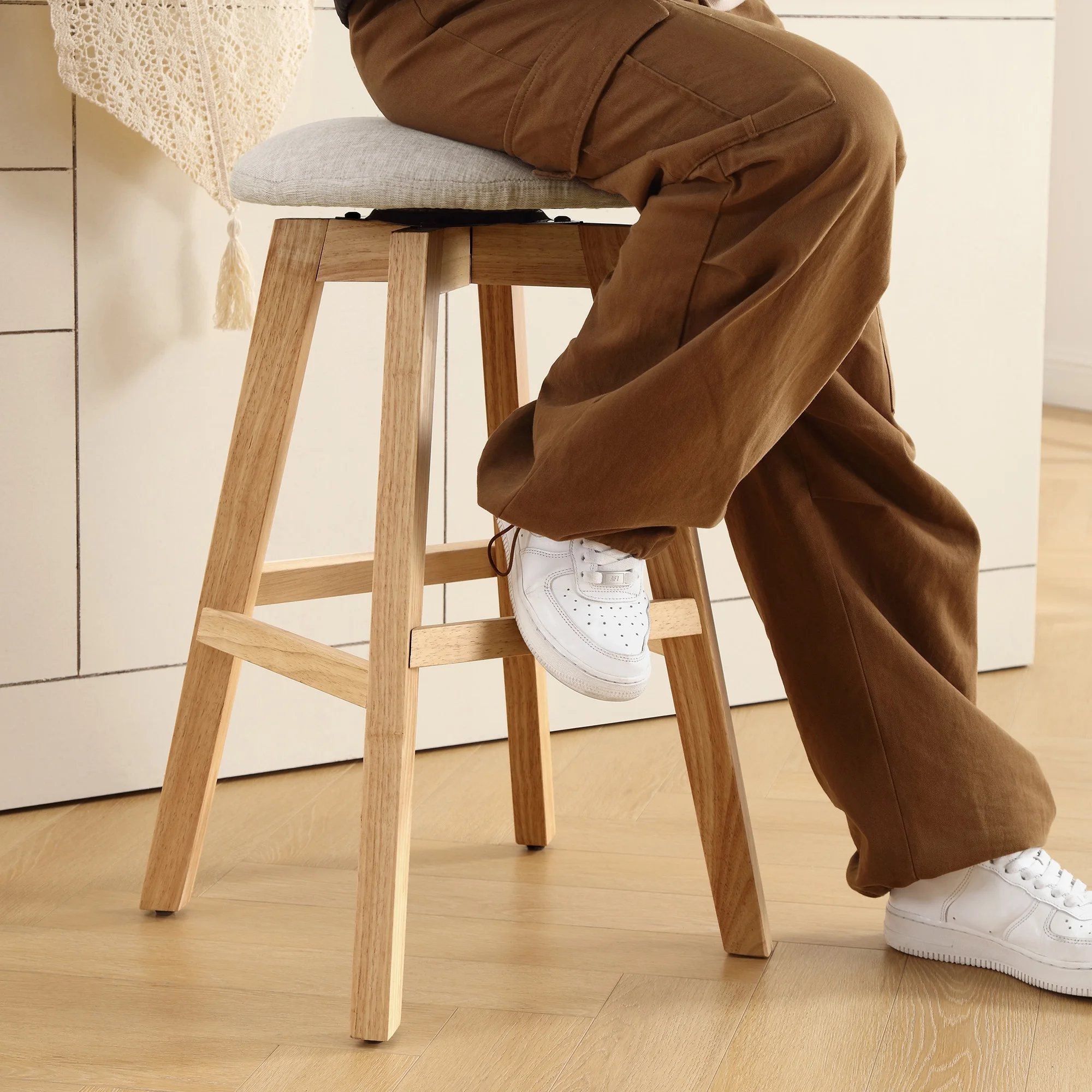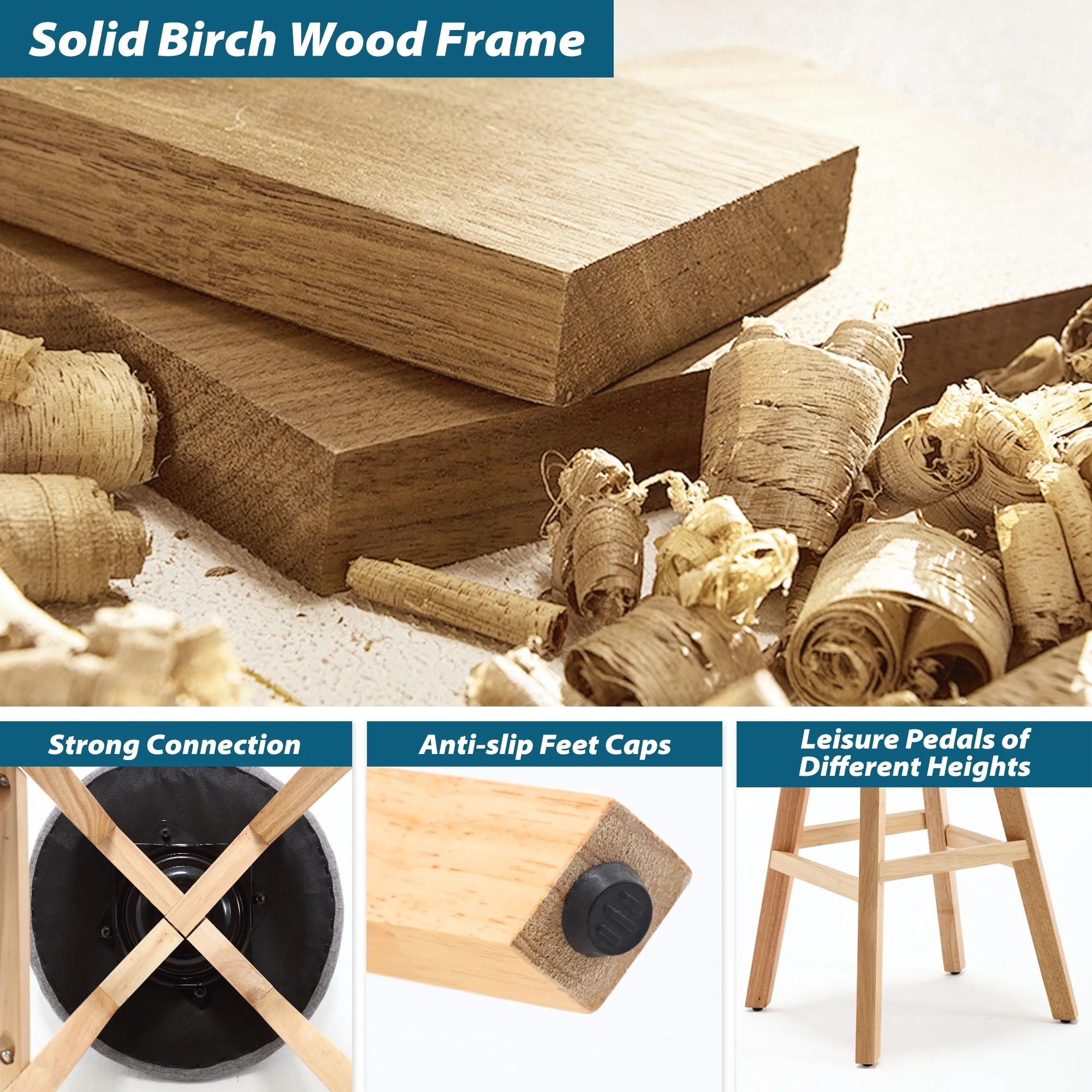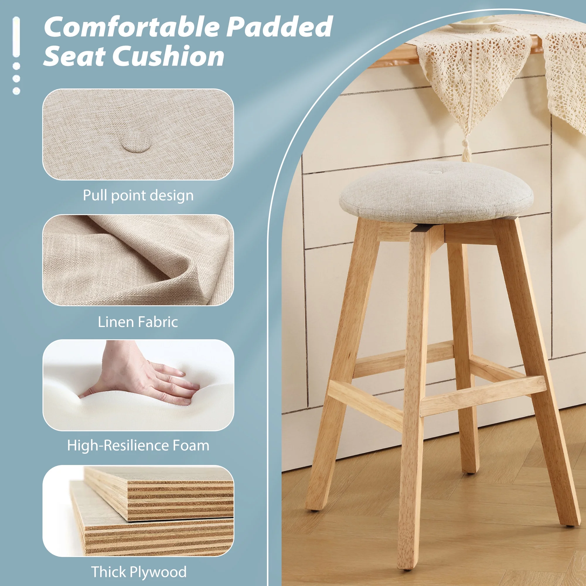 AUSTUFF 26" Bar Stools Set of 4 Swivel Counter Height Bar Stools for Kitchen Island Button Tufted, Natural & Khaki