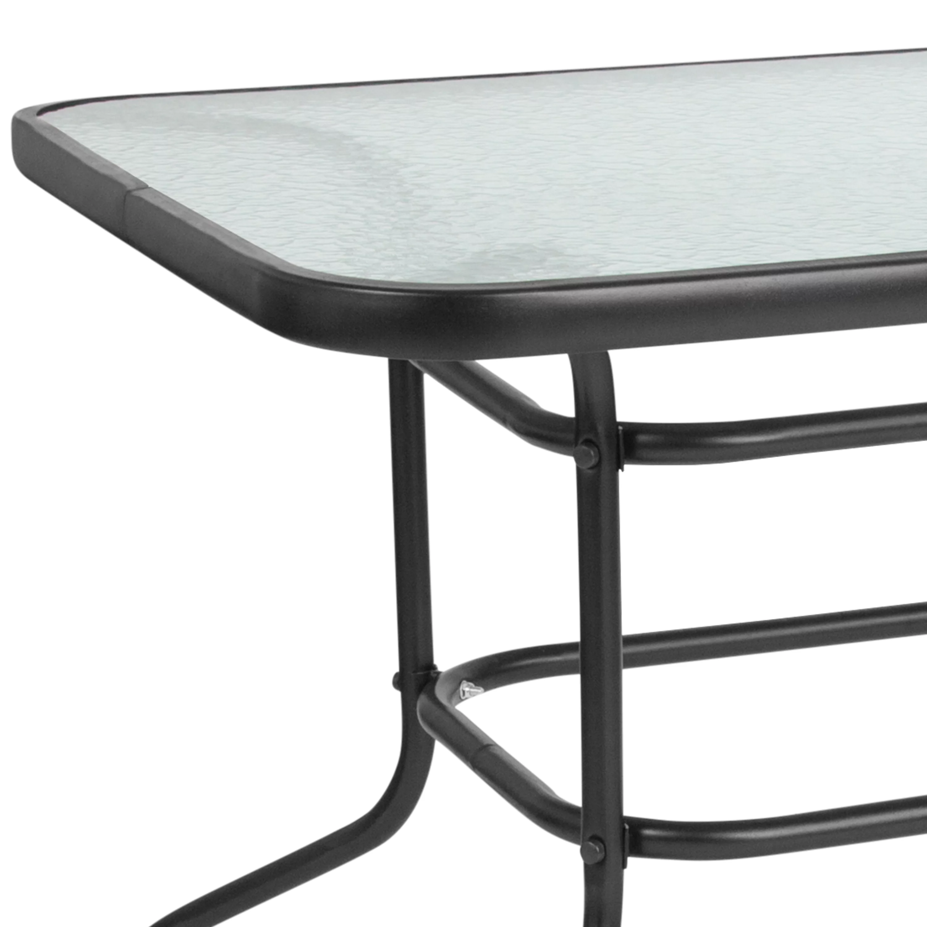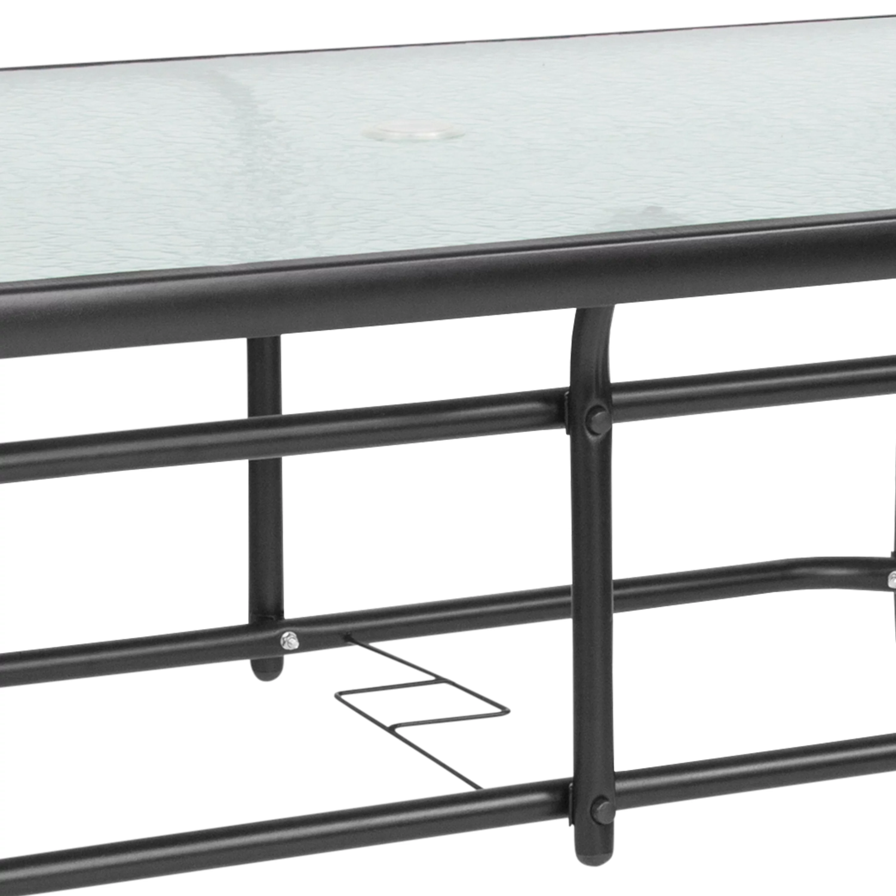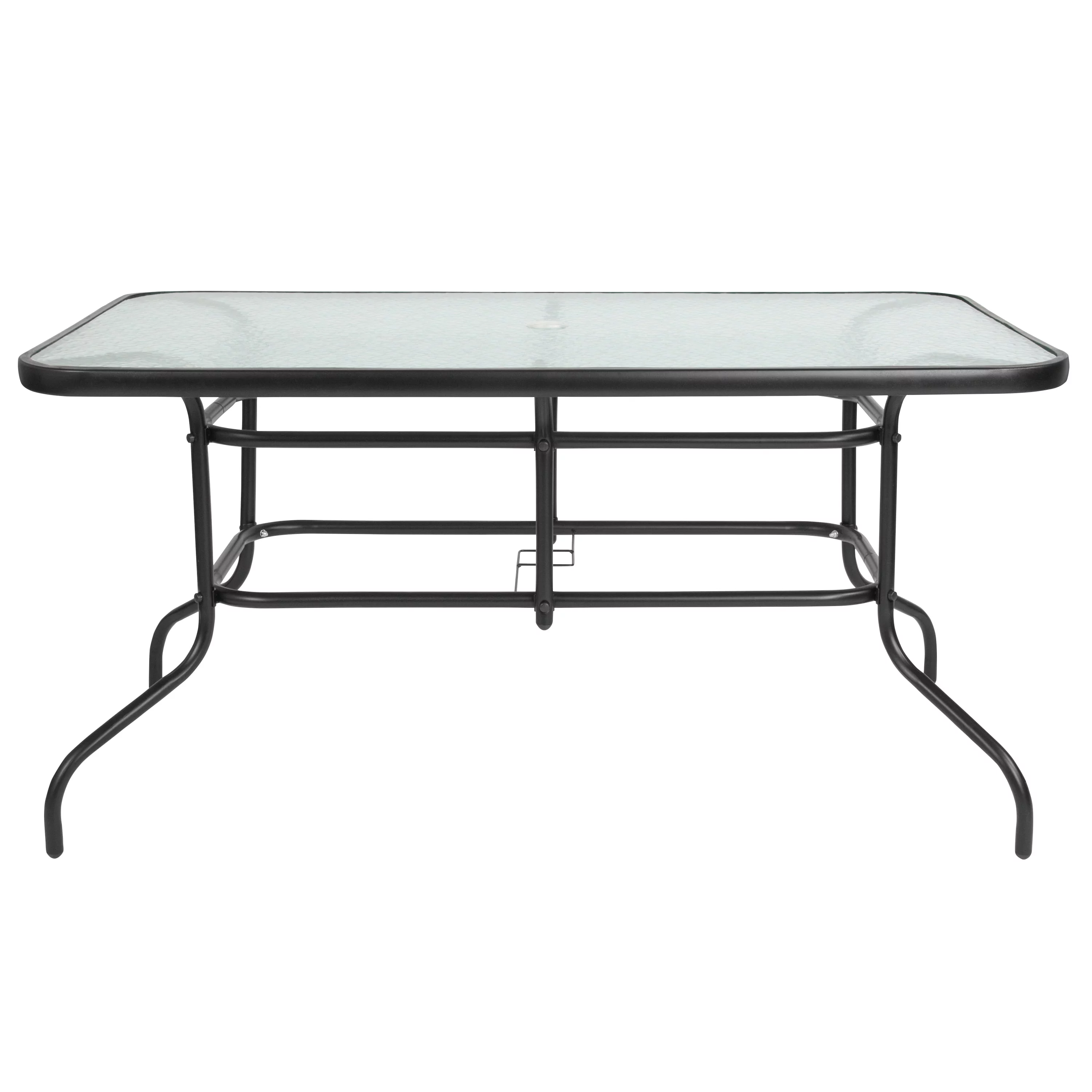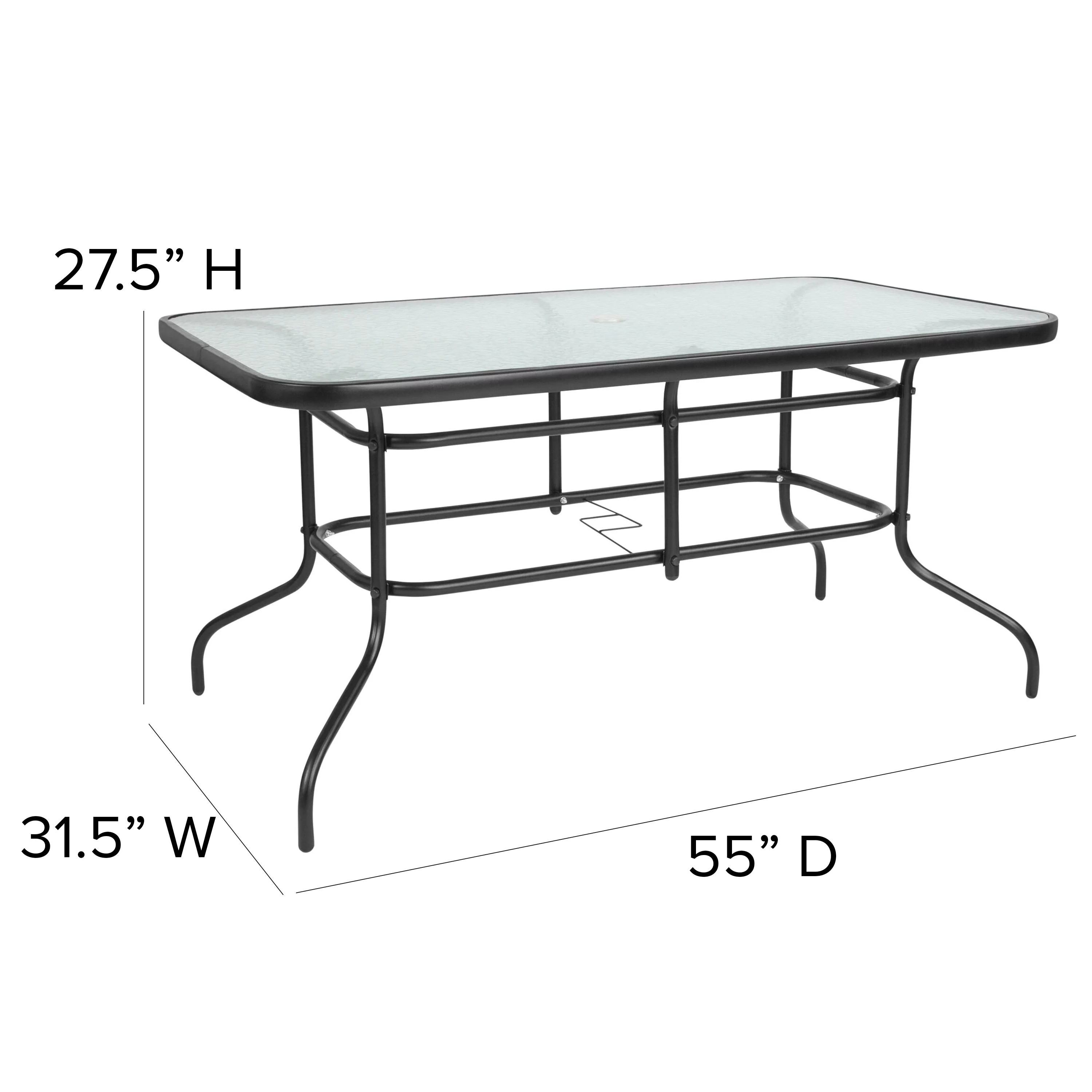 BizChair 31.5" x 55" Rectangular Tempered Glass Metal Table with Umbrella Hole