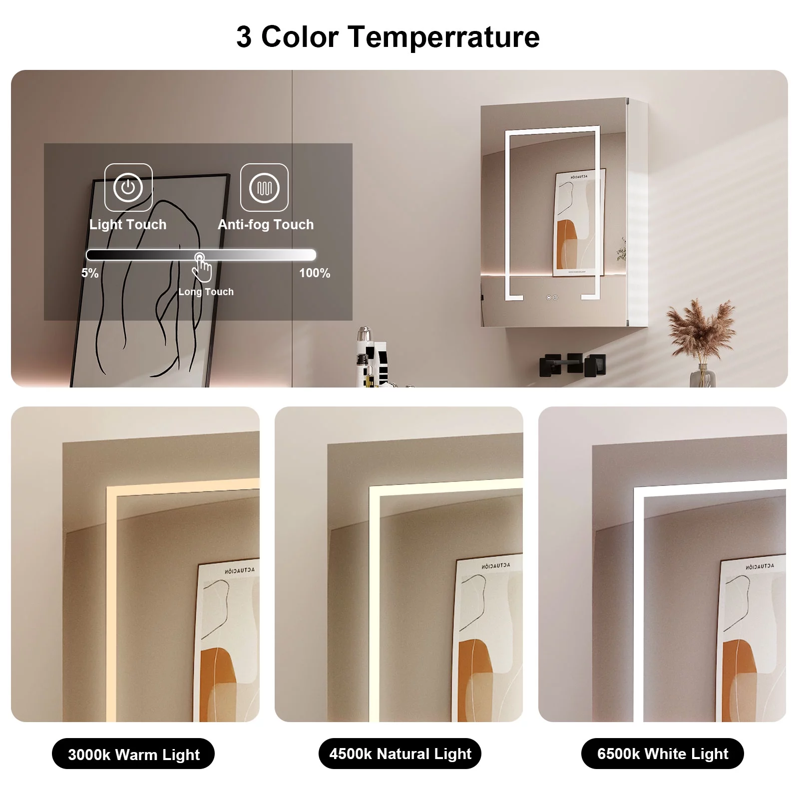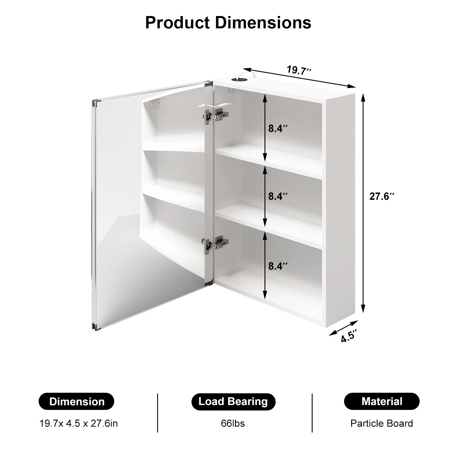 ExBrite Bathroom Light Narrow Medicine Cabinets with Vanity Mirror Recessed or Surface 20 x 32 Inch