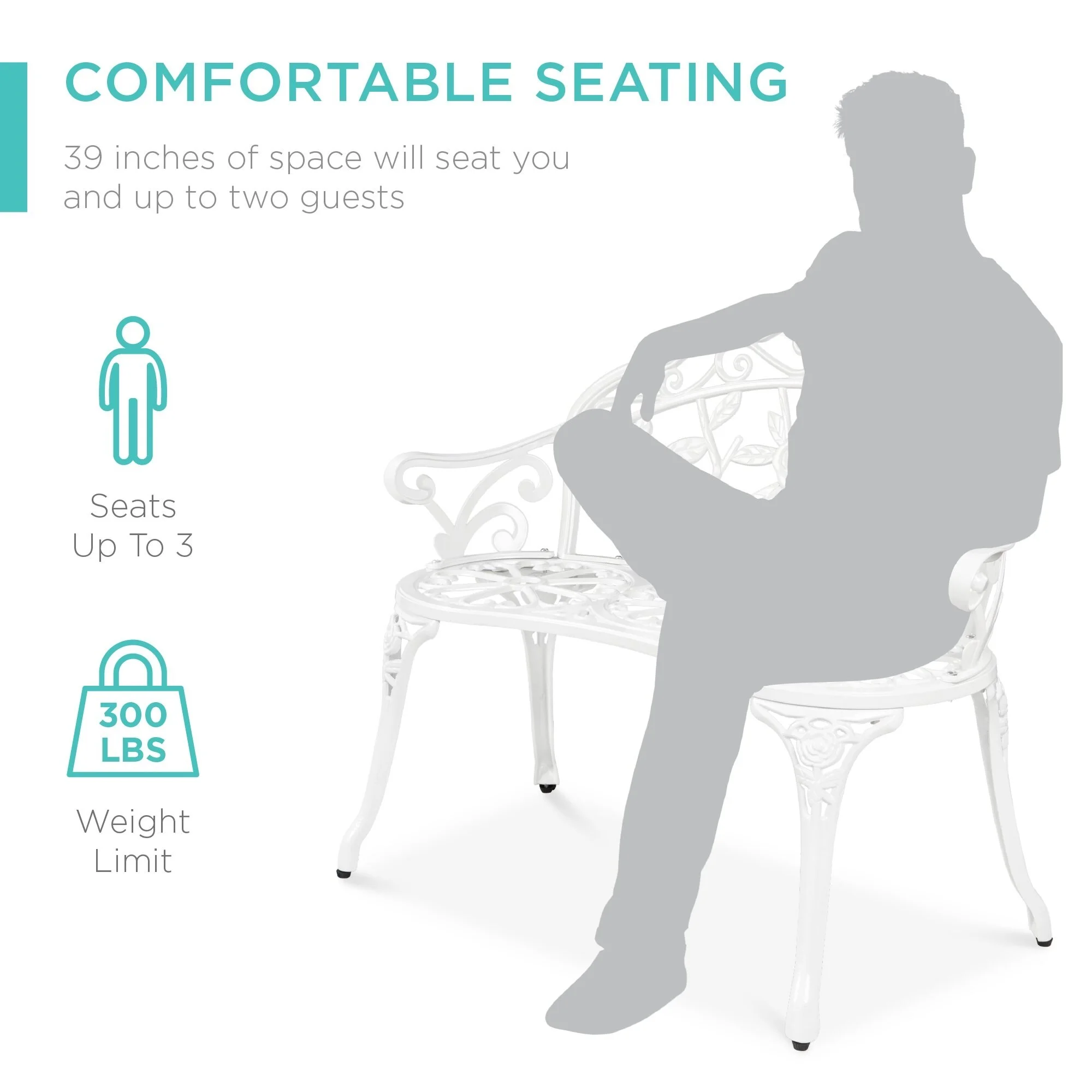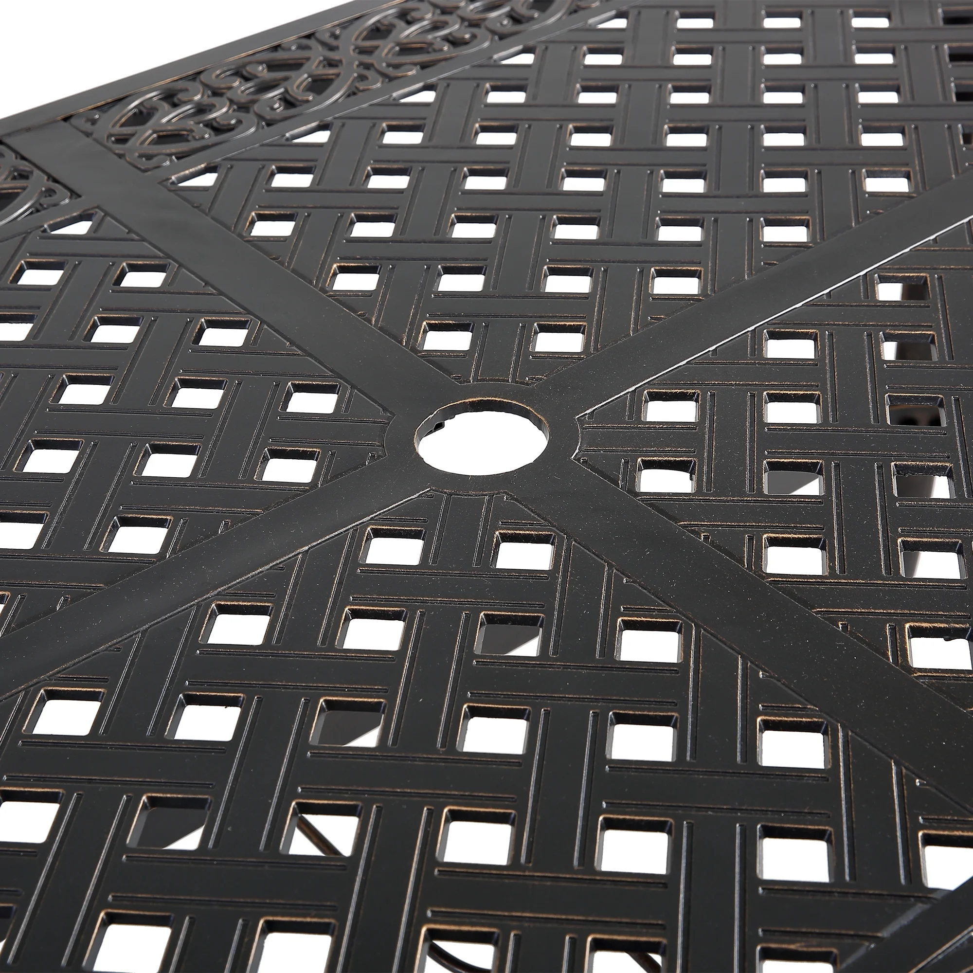Mondawe 6-Person Cast Aluminum 28" Height Outside Patio Rectangle Cast Aluminum Dining Table with Umbrella Hole, for Garden
