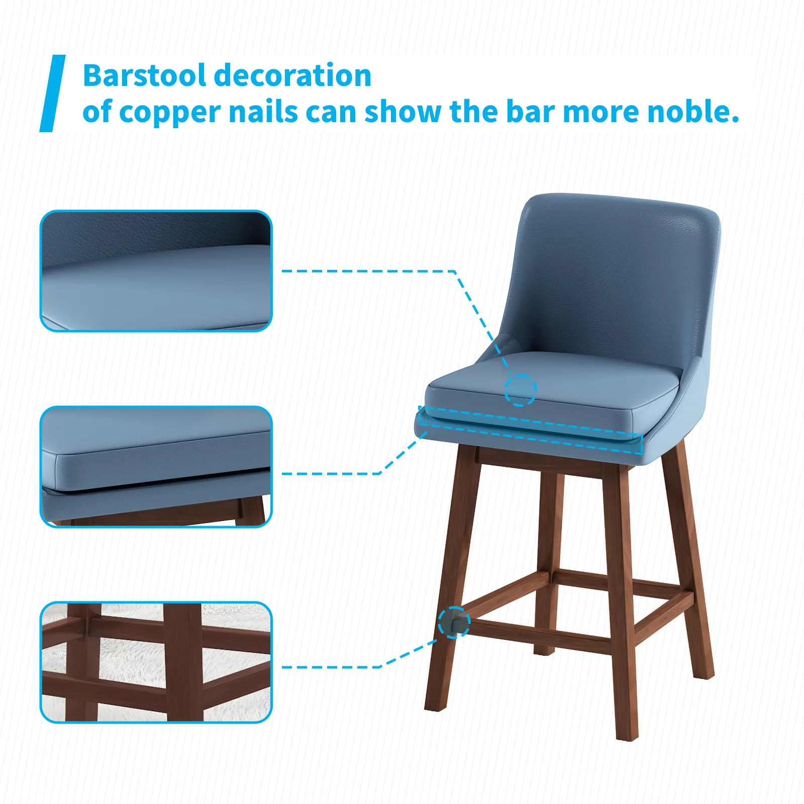 Home Square 3 Piece Upholstered Solid Wood Swivel Counter Stool Set in White