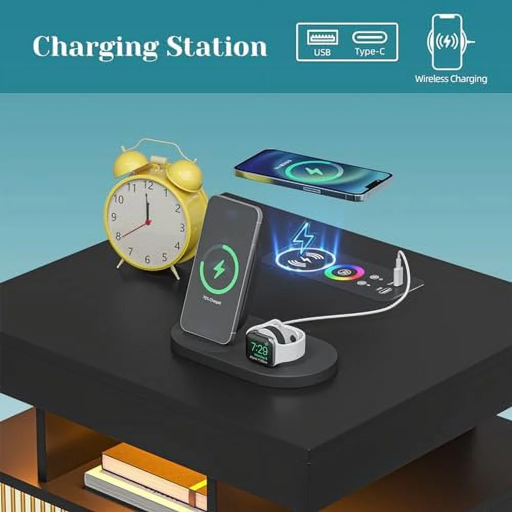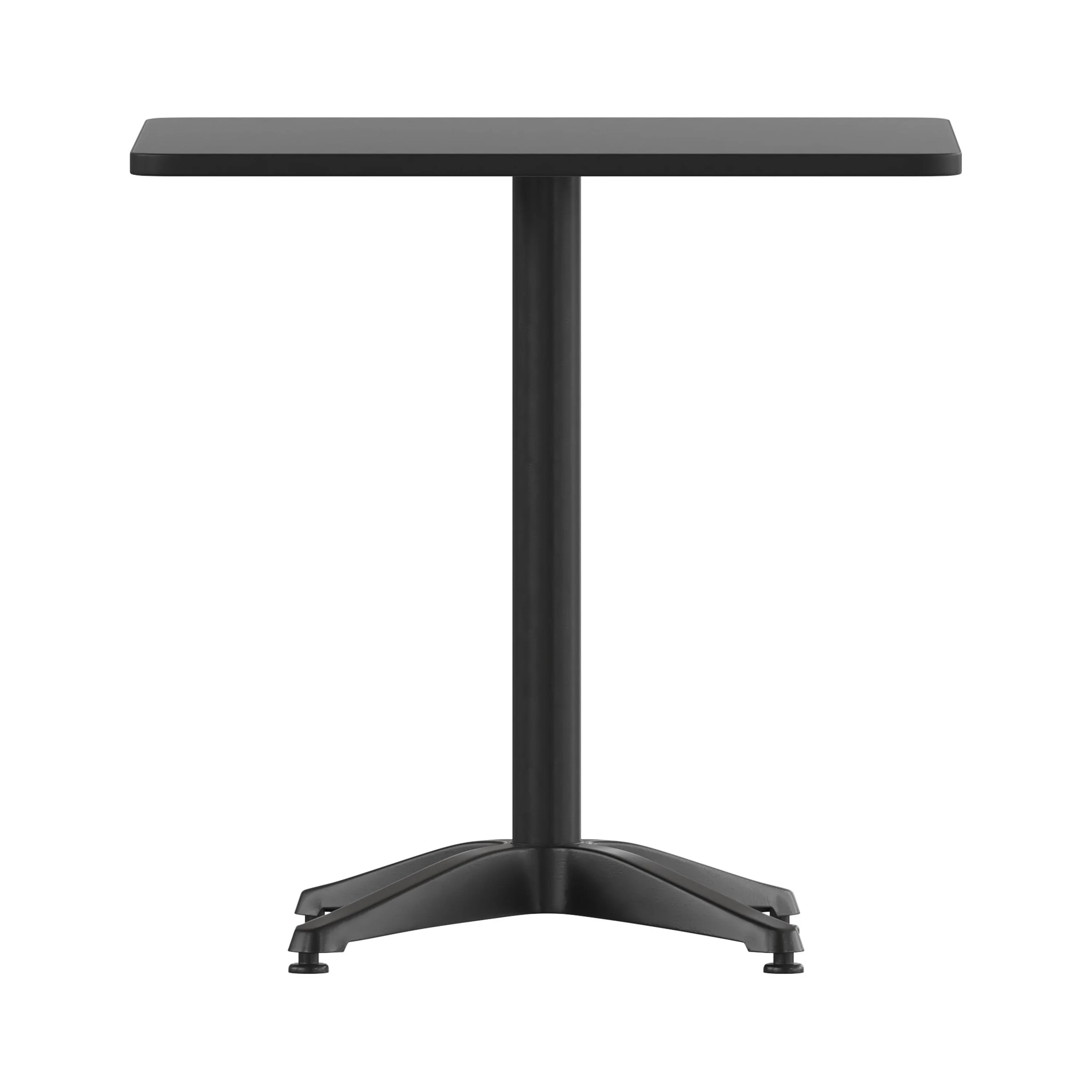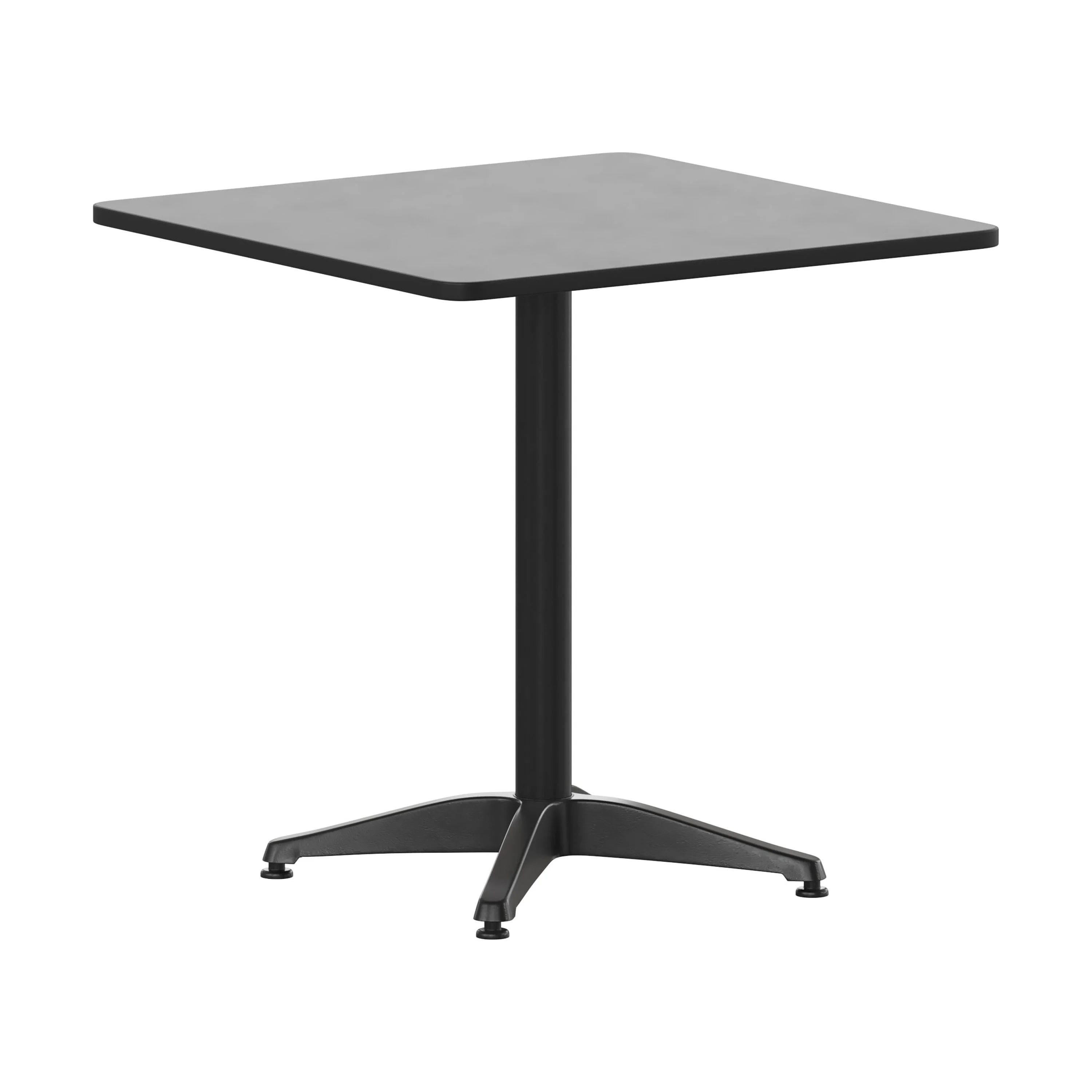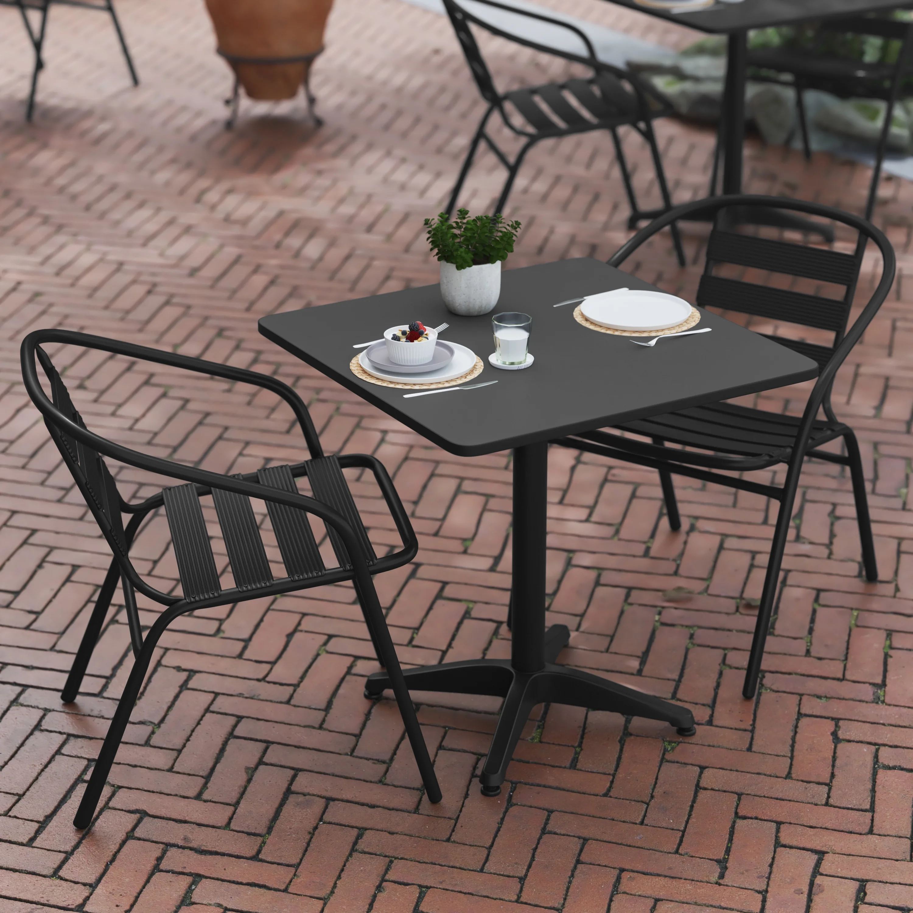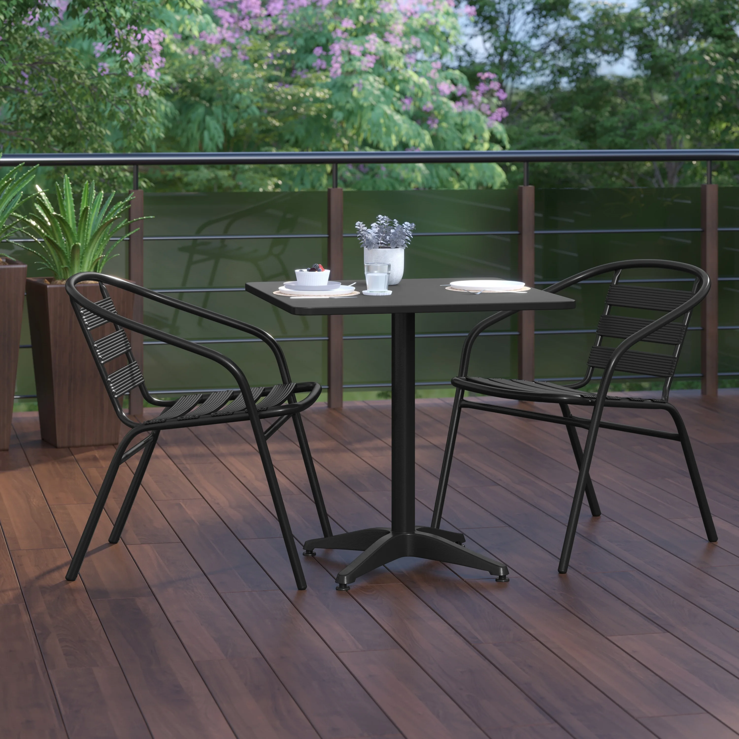 BizChair 27.5'' Black Square Aluminum Indoor-Outdoor Table Set with 2 Black Slat Back Chairs