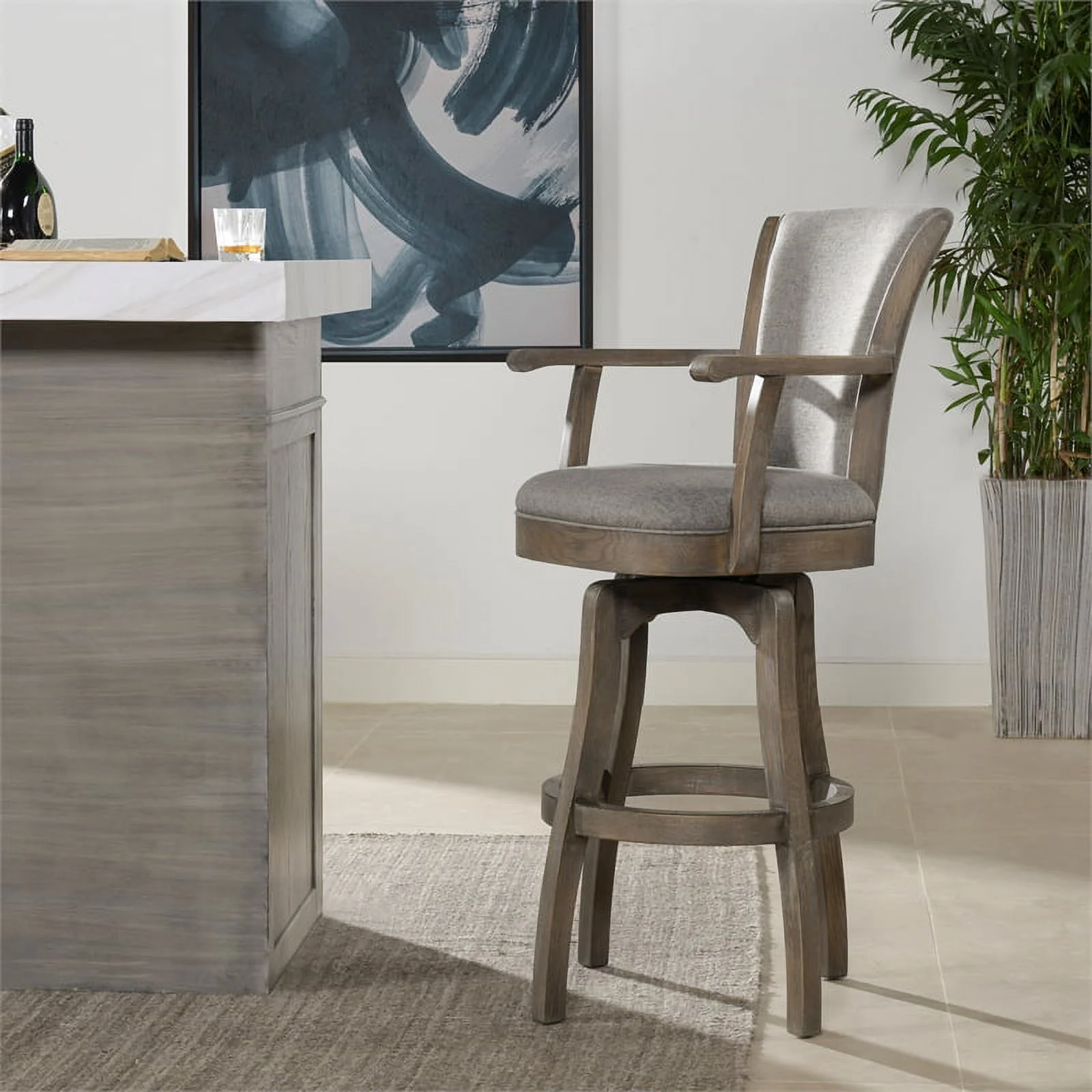 Home Square 3 Piece 30" Swivel Bar Stool with Armrests Set in Heathered Grey
