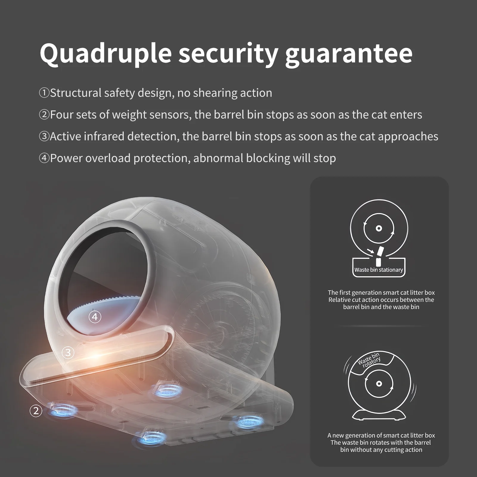 XCLOUD Smart Cat Litter Box, Self-Cleaning Cat litter Box, xSecure/Odor Removal/APP Control, 65L