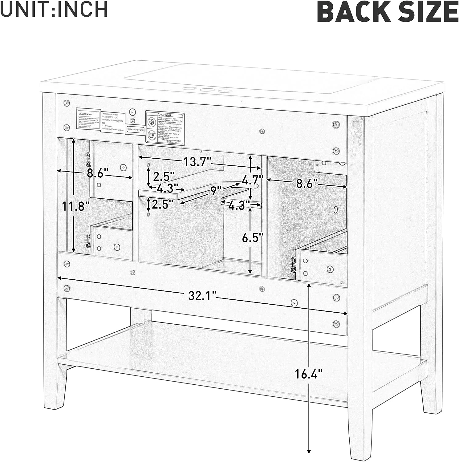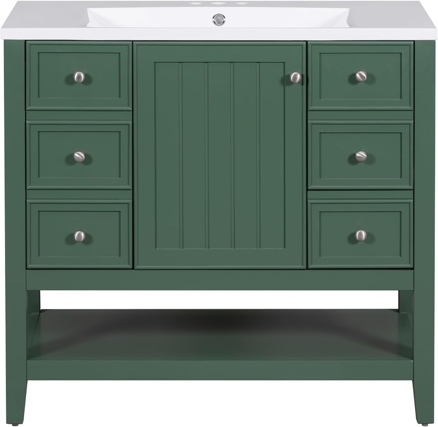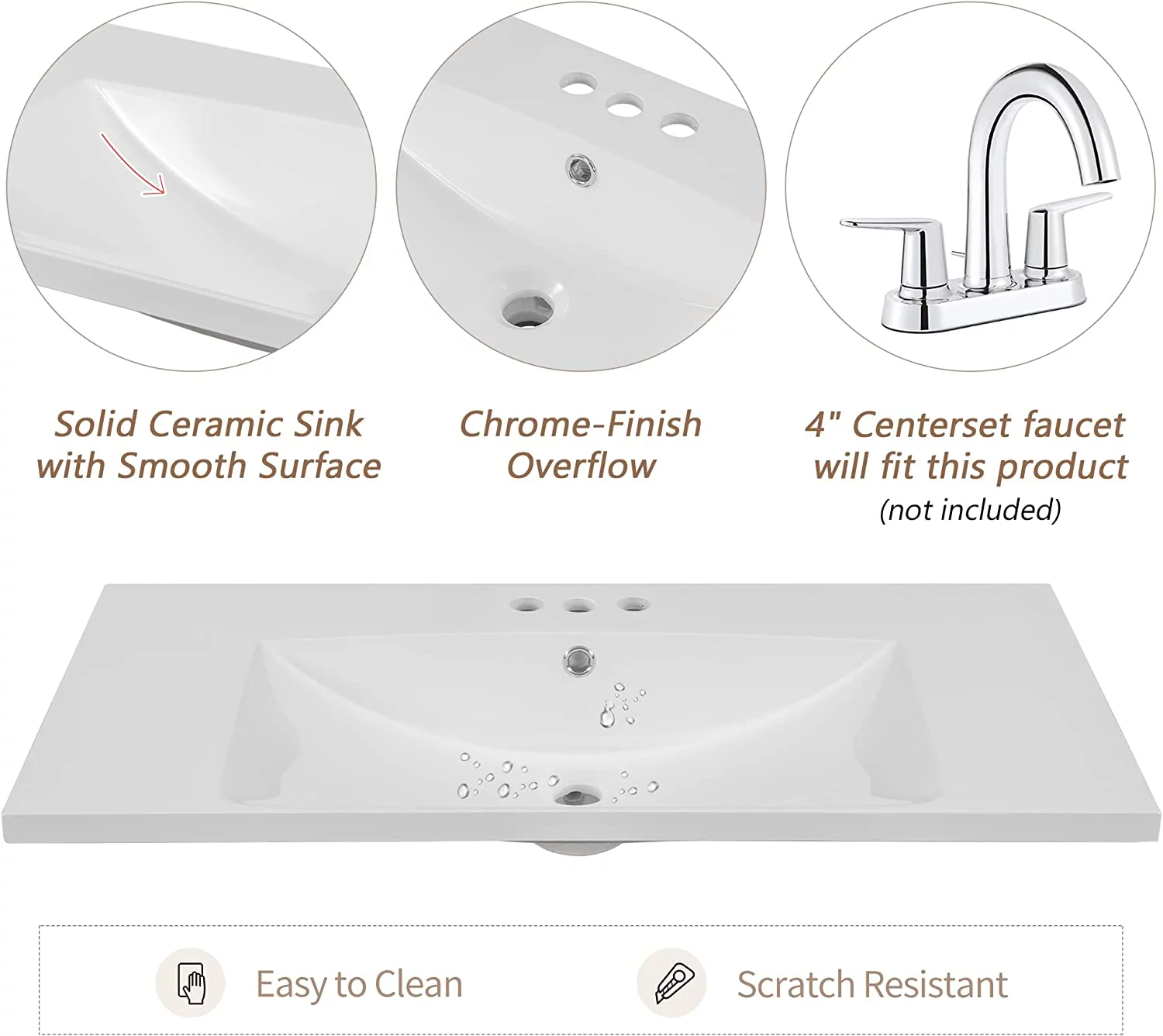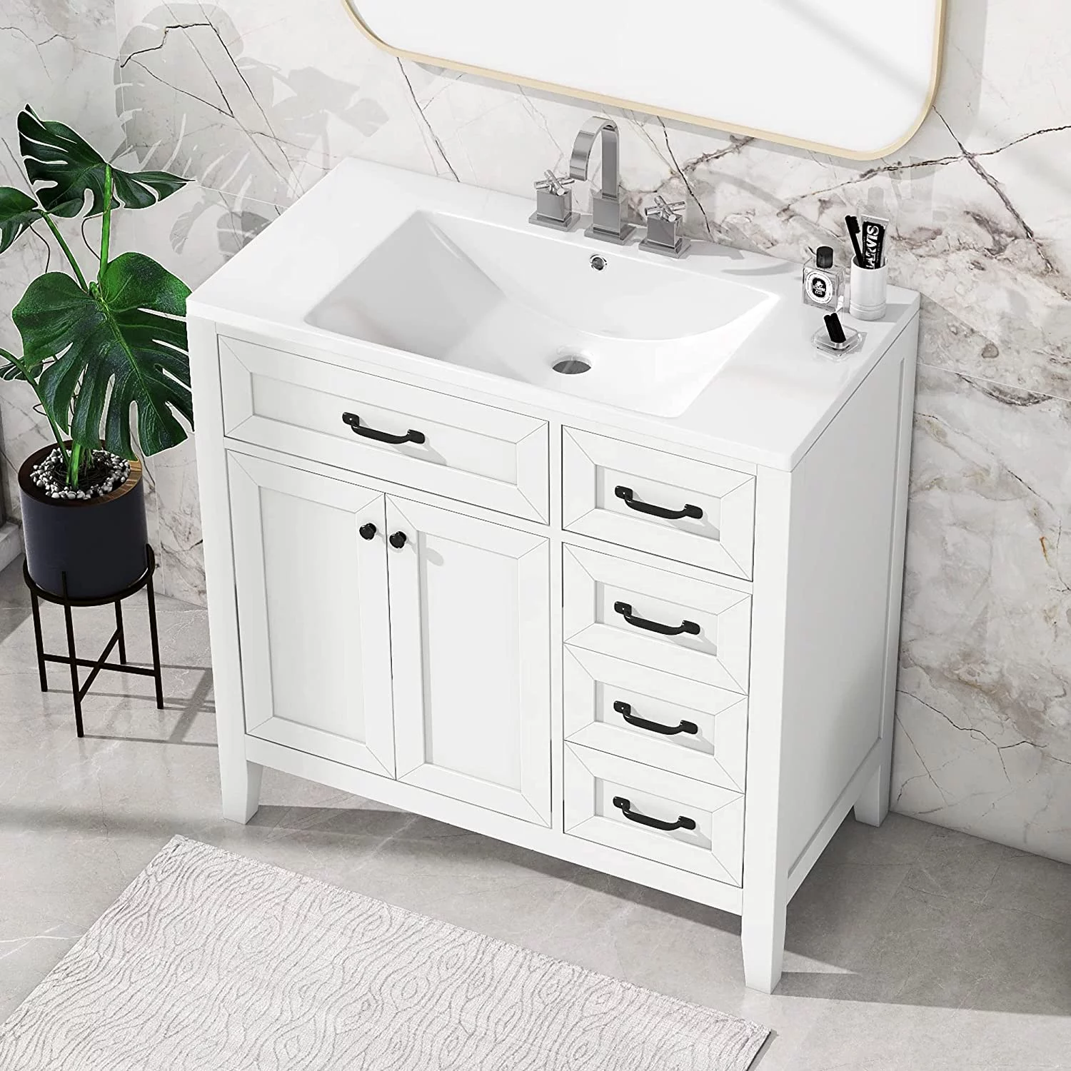36'' Bathroom Vanity with Top Sink Modern Bathroom Storage Cabinet with 2 Drawers
