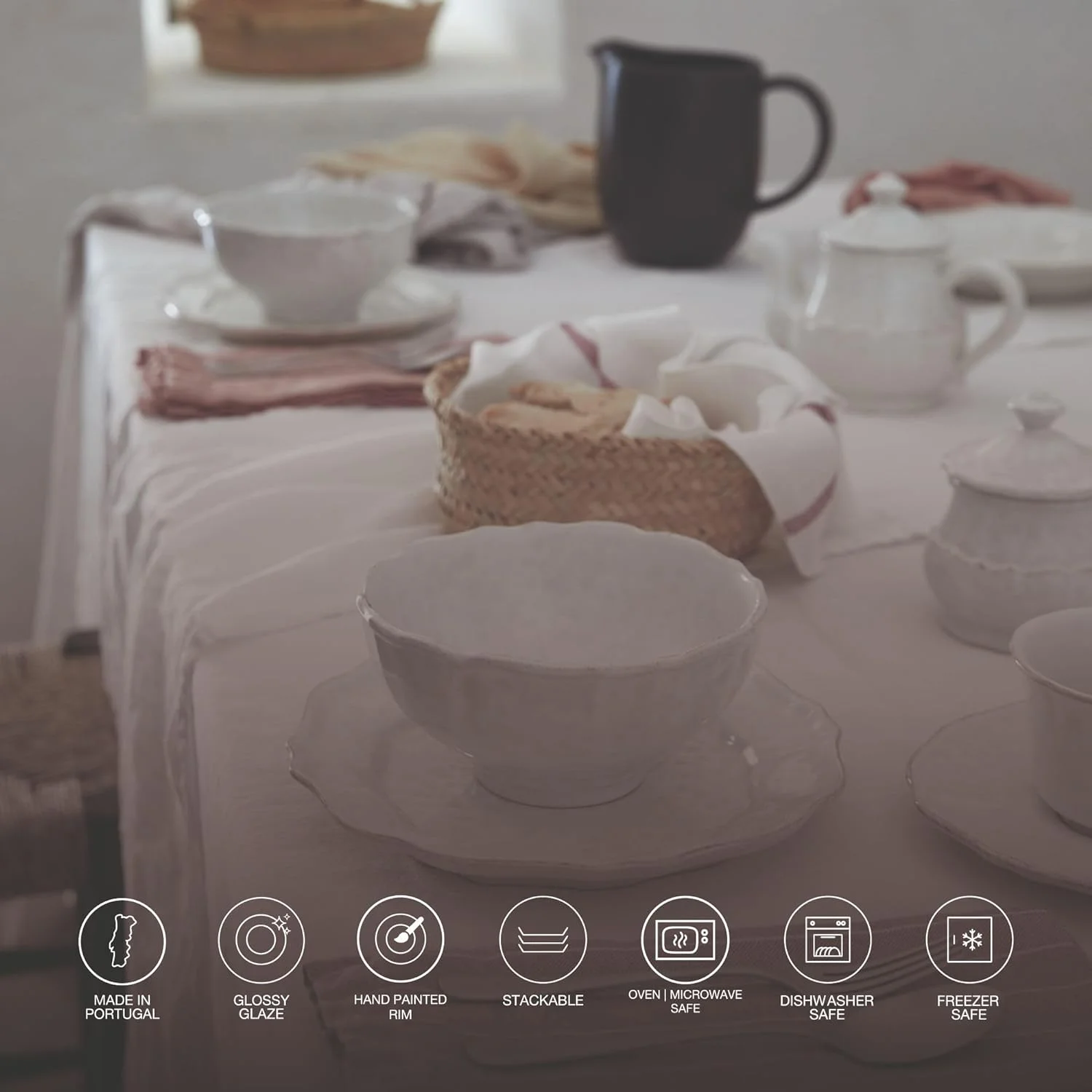 Ceramic Stoneware 10" X 5", 125 Oz Serving Bowl - Impressions Collection, White | Microwave & Dishwasher Safe Dinnerware | Food Safe Glazing | Restaurant Quality Serveware