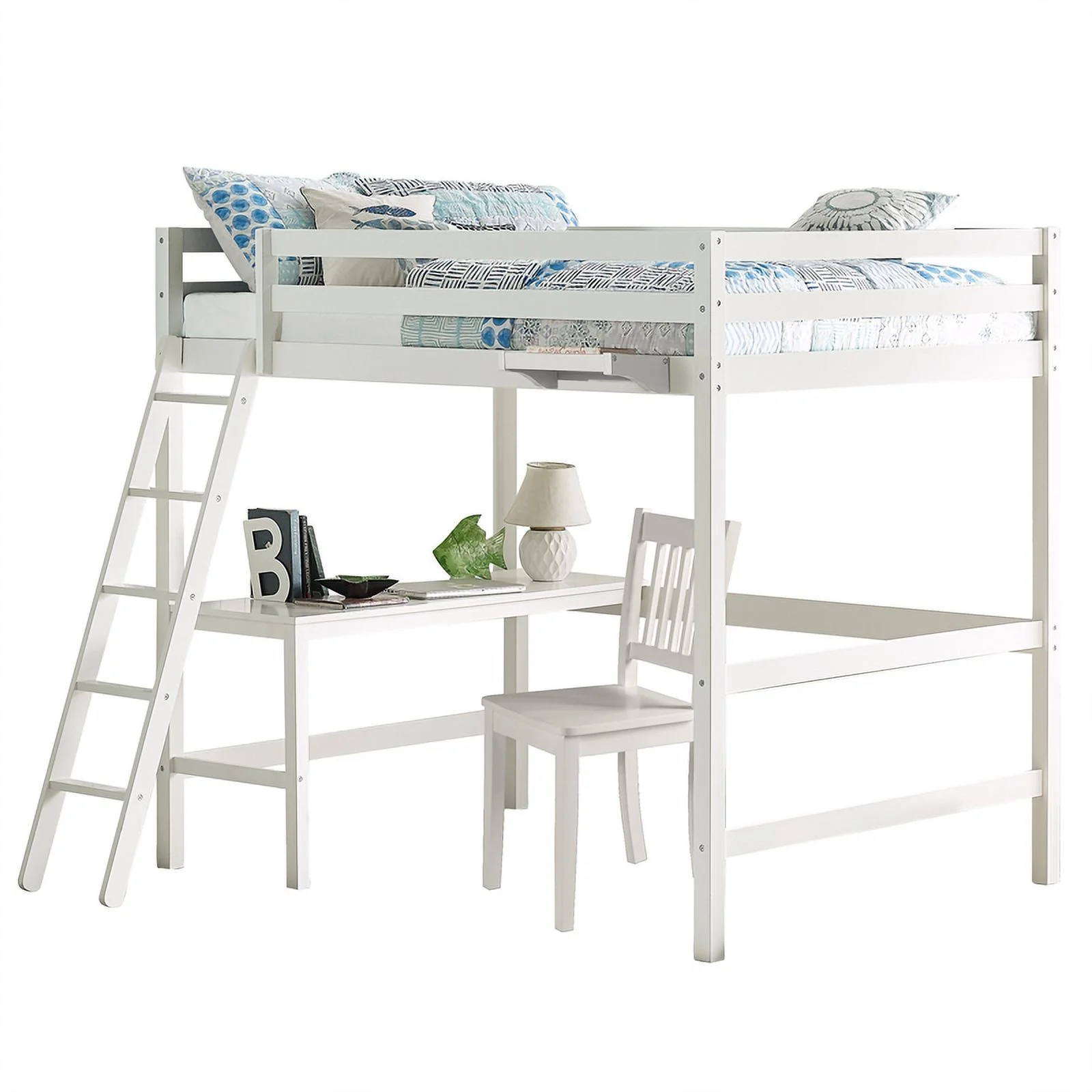 Rosebery Kids Caspian Wood Full Loft with Chair & Hanging Nightstand in White