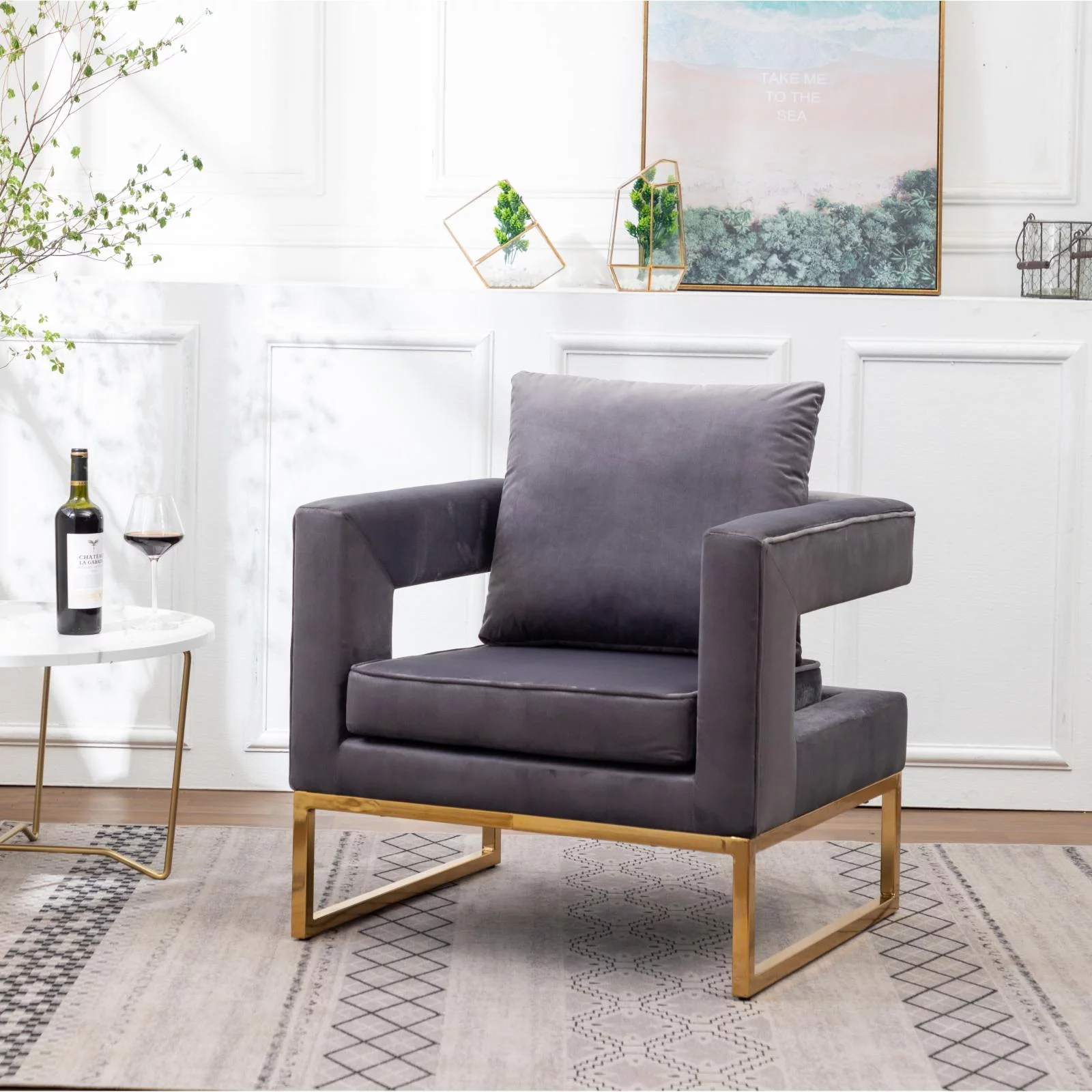 Roundhill Furniture Lenola Contemporary Upholstered Accent Arm Chair, Gray
