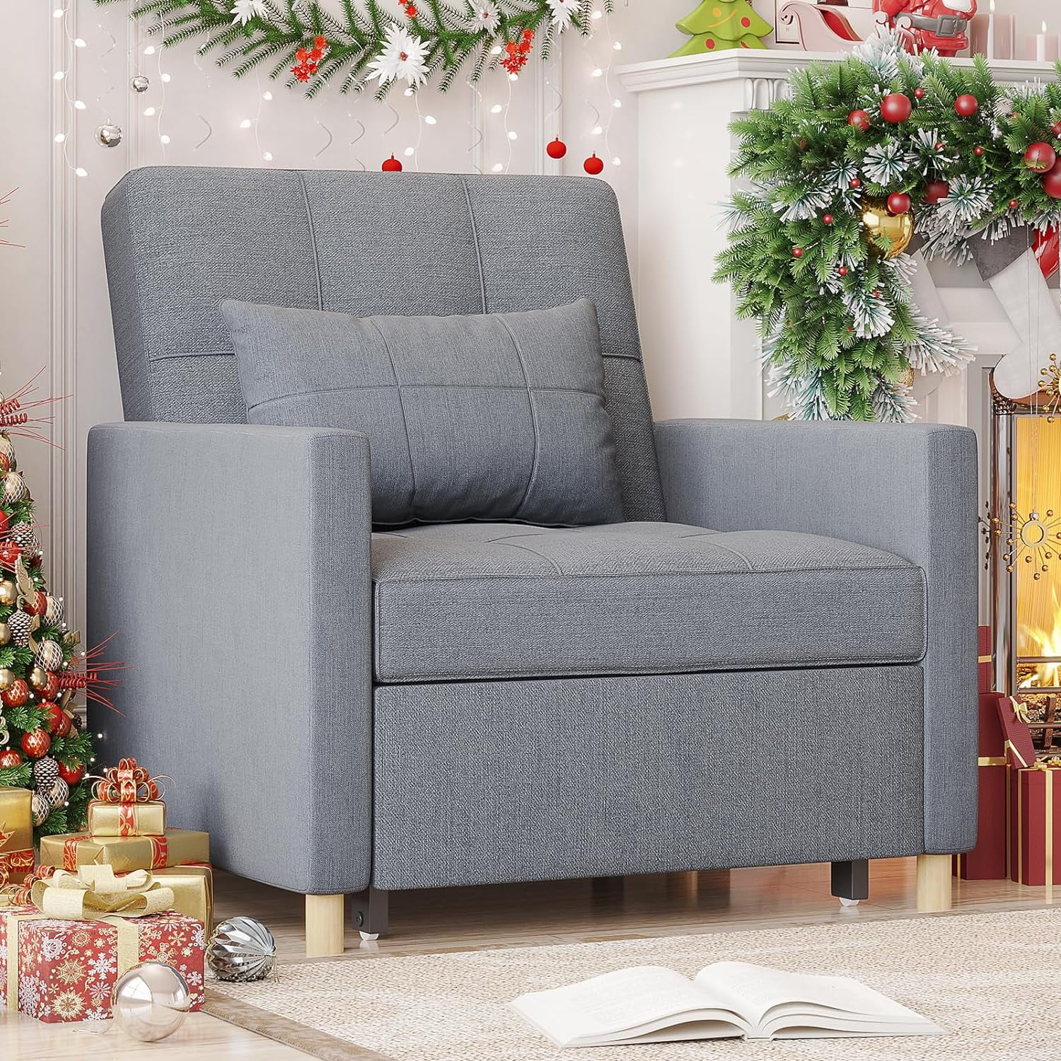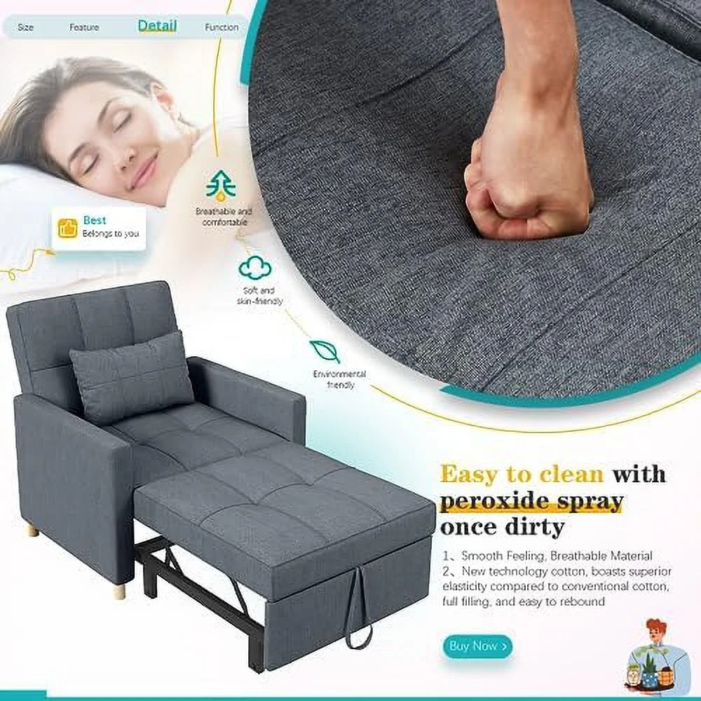 Contemporary Style Adjustable Convertible Chair Bed, Blue Grey Velvet, 39