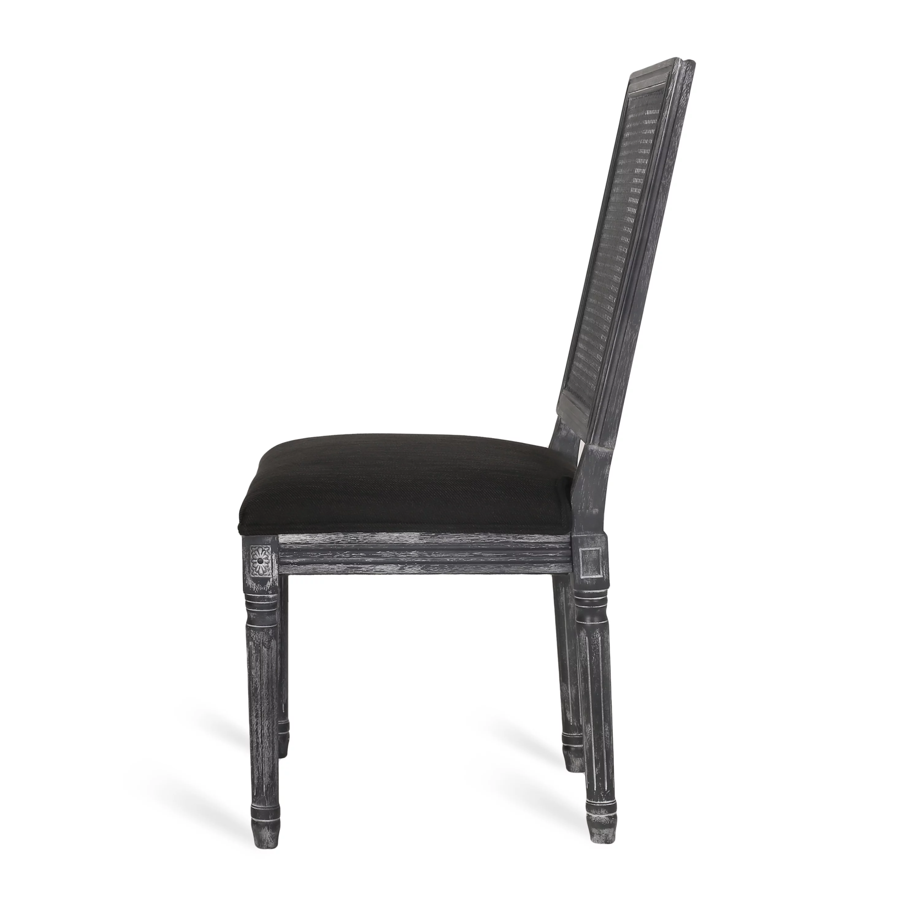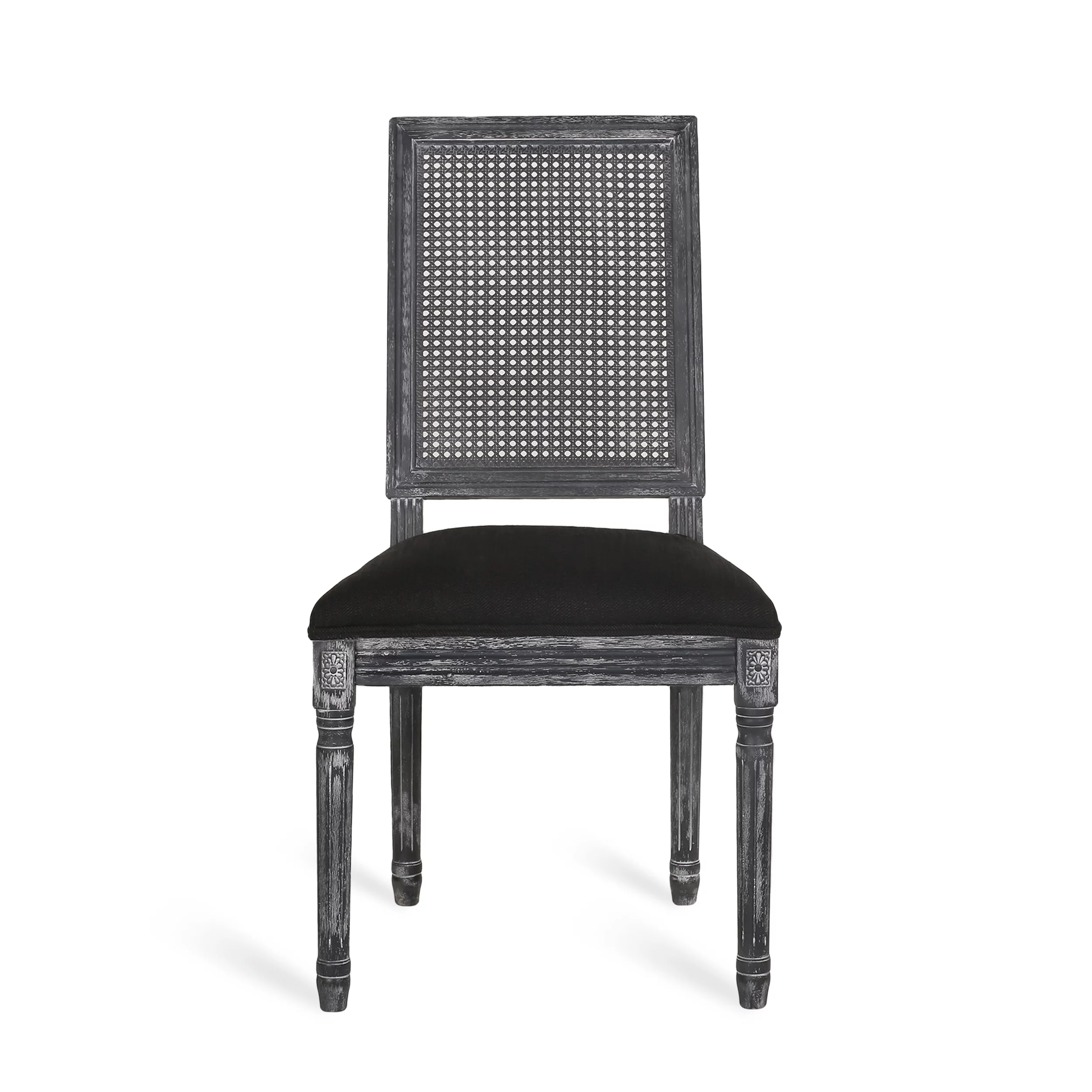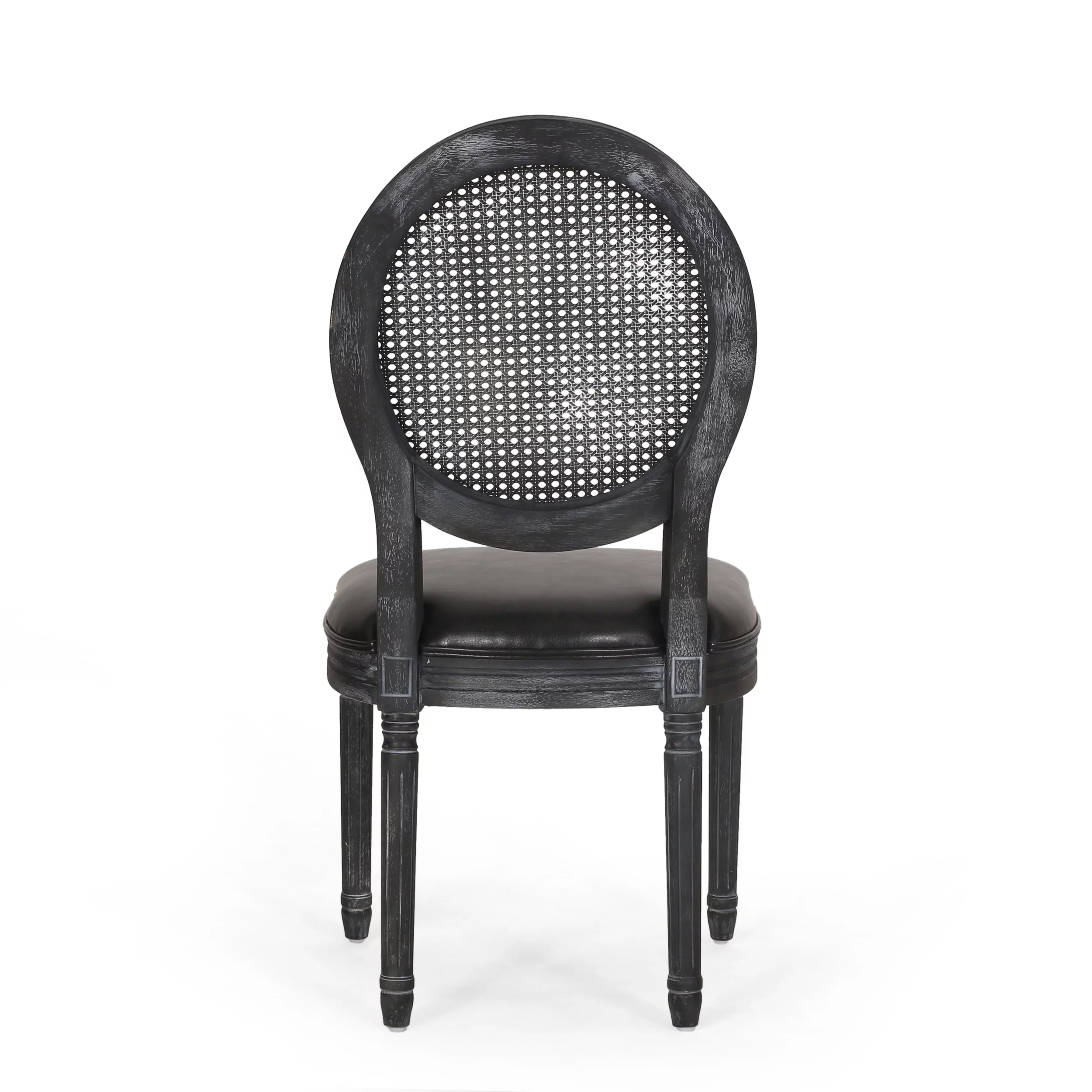 GDF Studio Brownell French Country Wood and Cane Upholstered Dining Chairs, Set of 4, Black and Gray