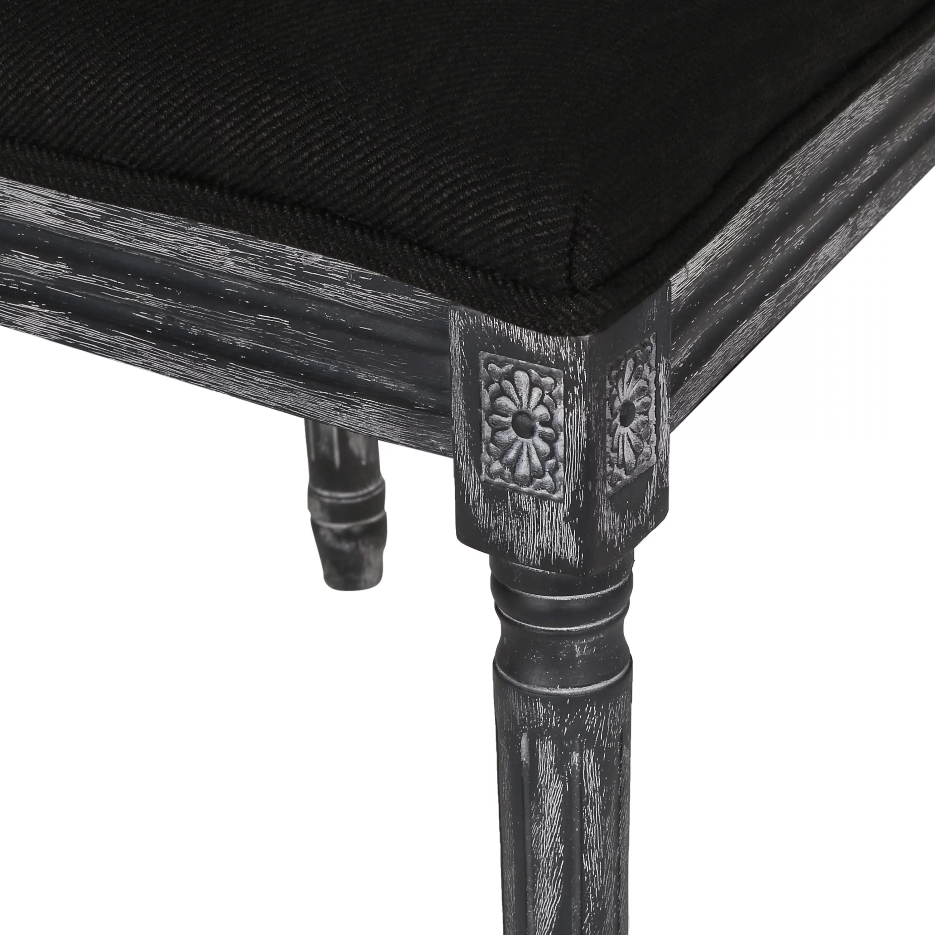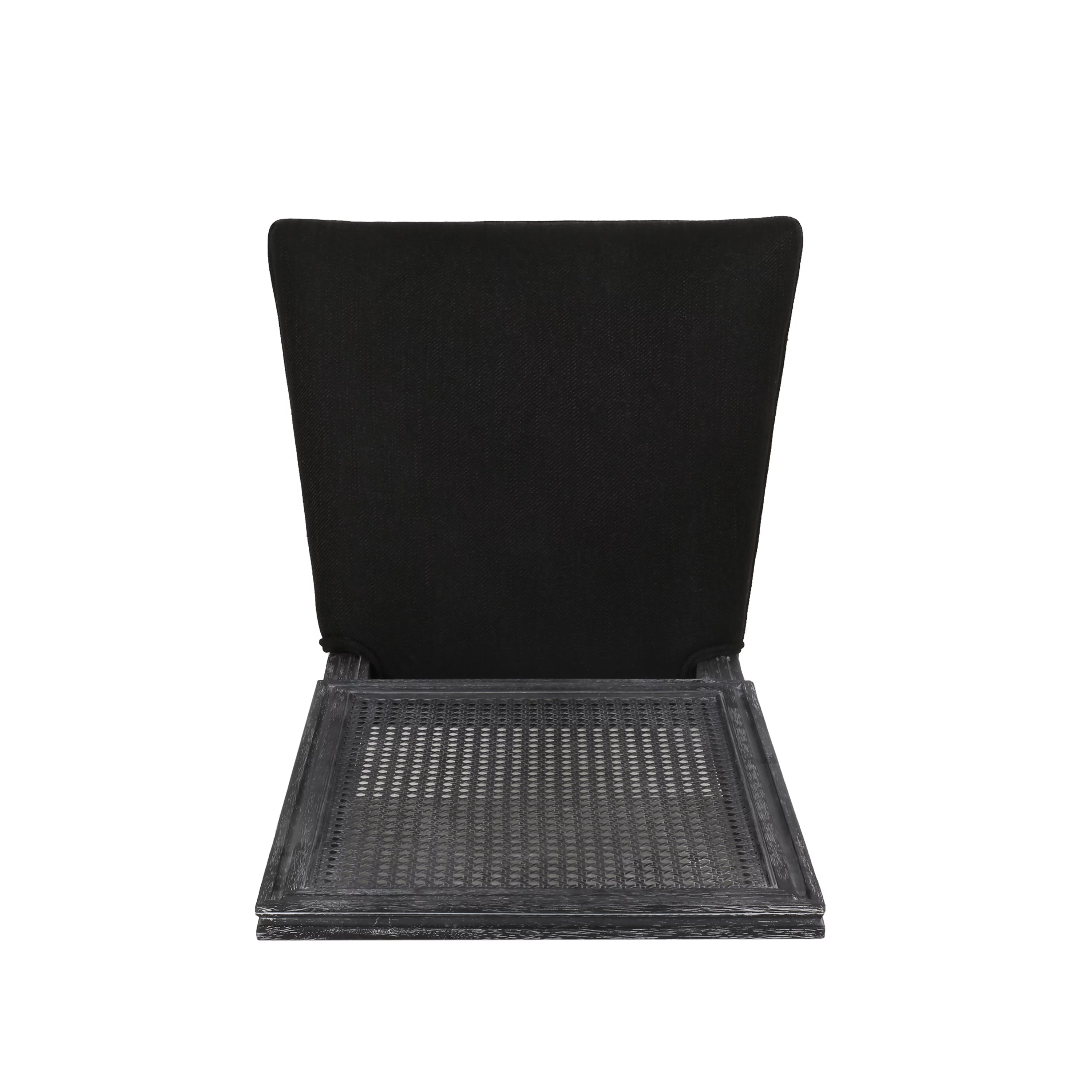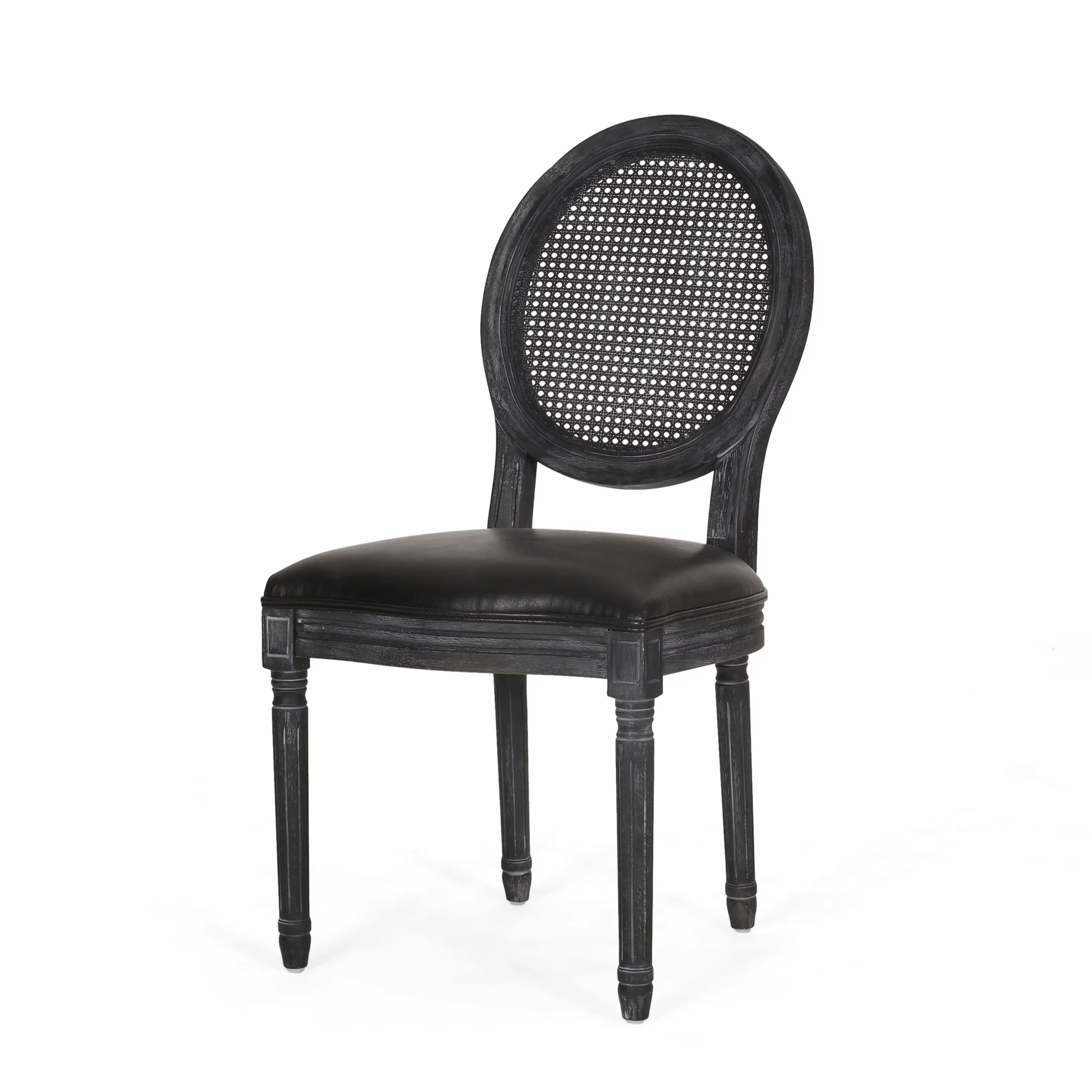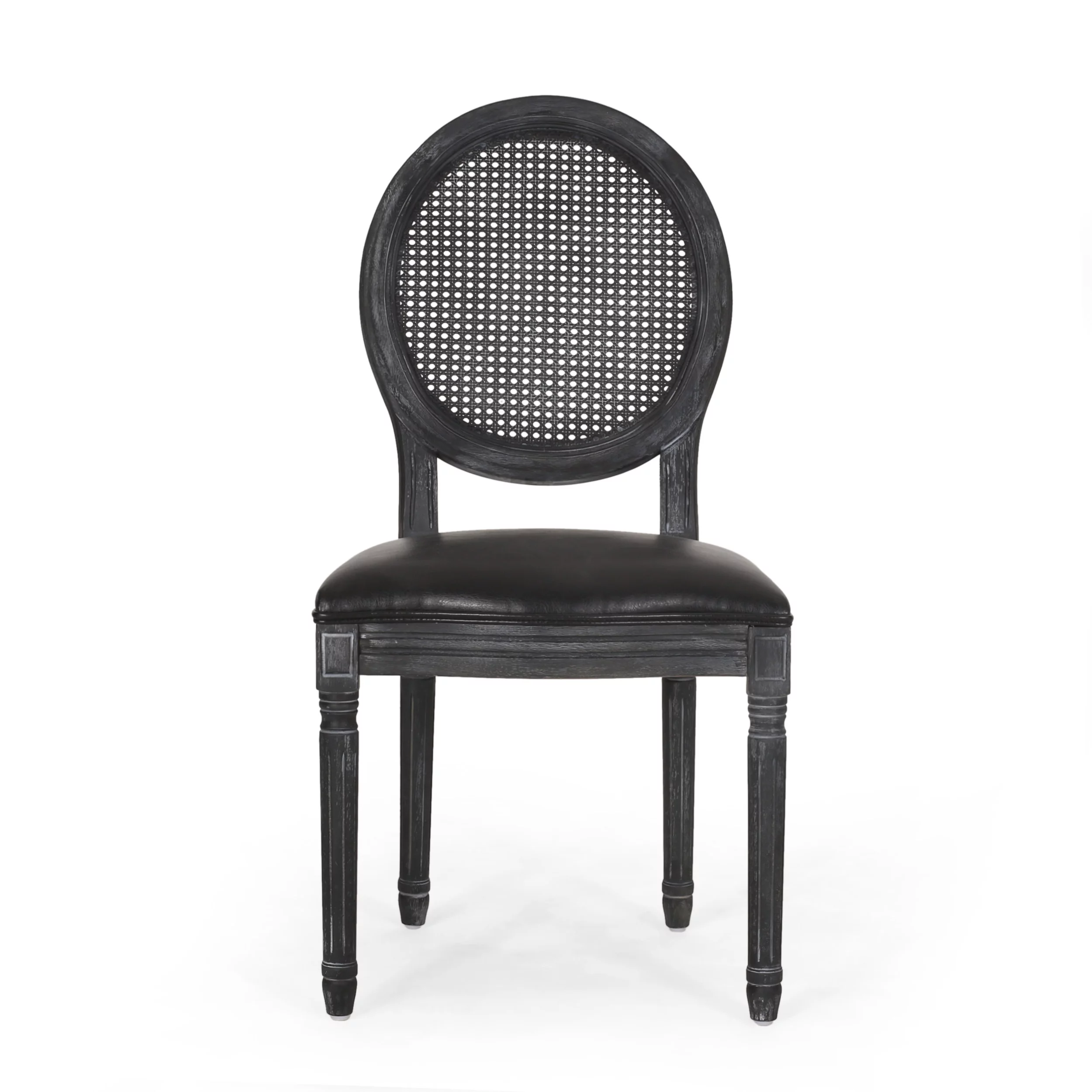 GDF Studio Brownell French Country Wood and Cane Upholstered Dining Chairs, Set of 4, Black and Gray