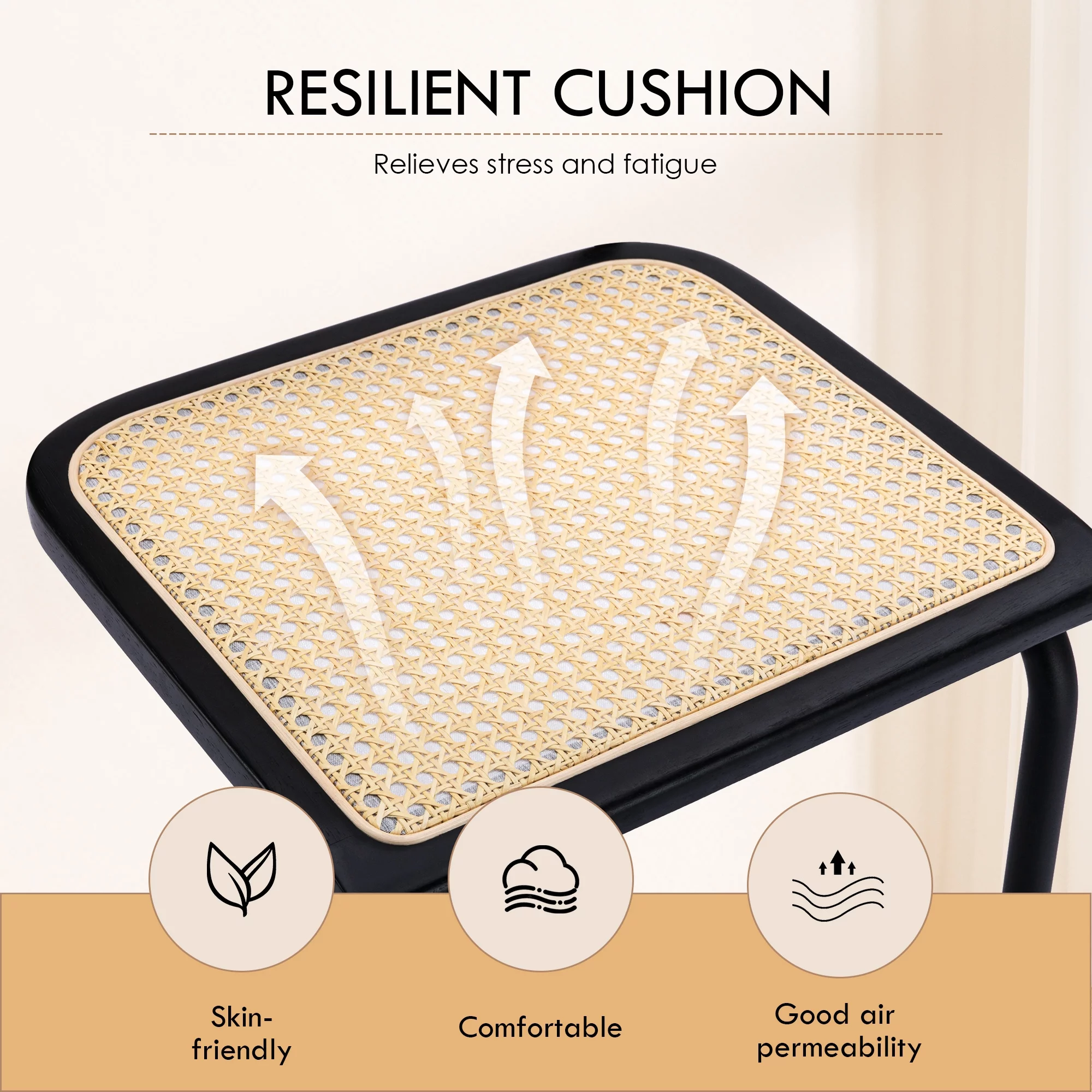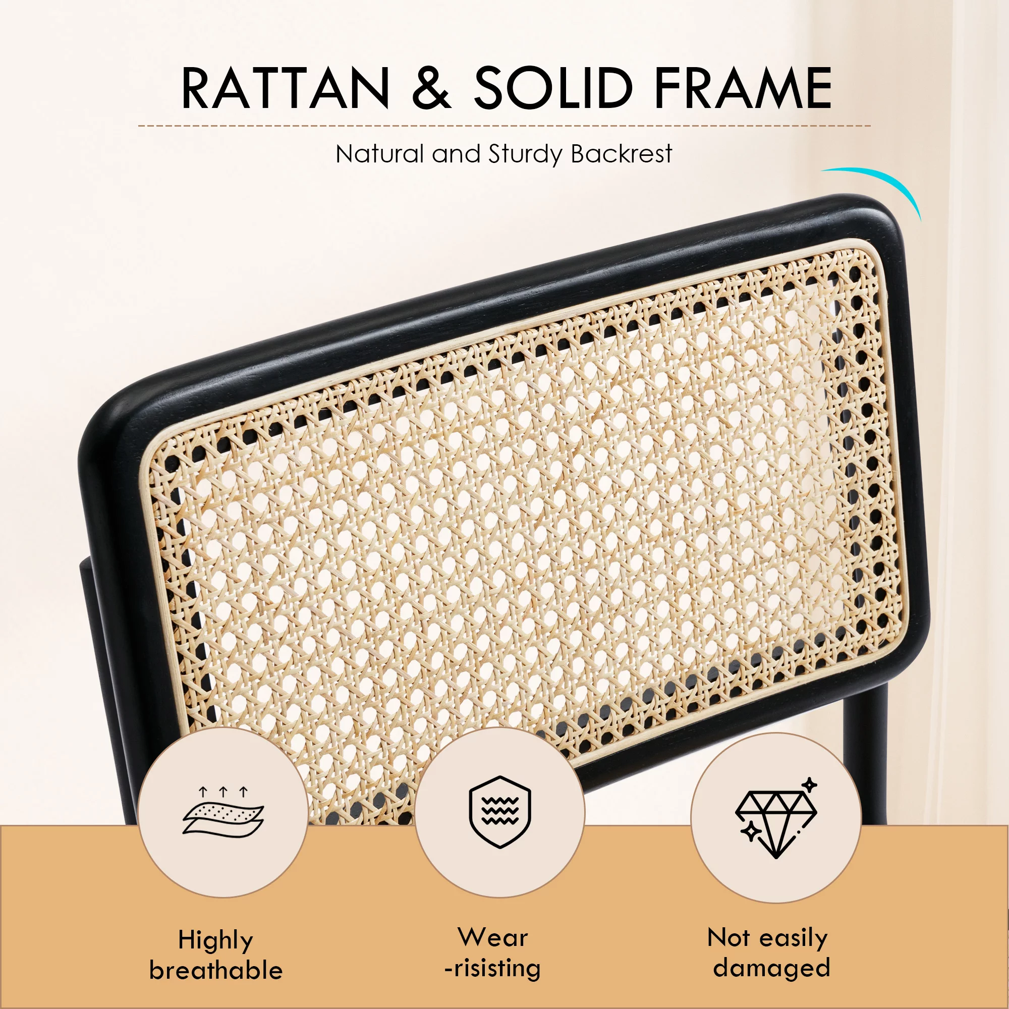 ONEVOG Rattan Dining Chairs Set of 2, Mid Century Modern Kitchen Chairs with Black Meal Legs, Armless Cane Chairs, Black