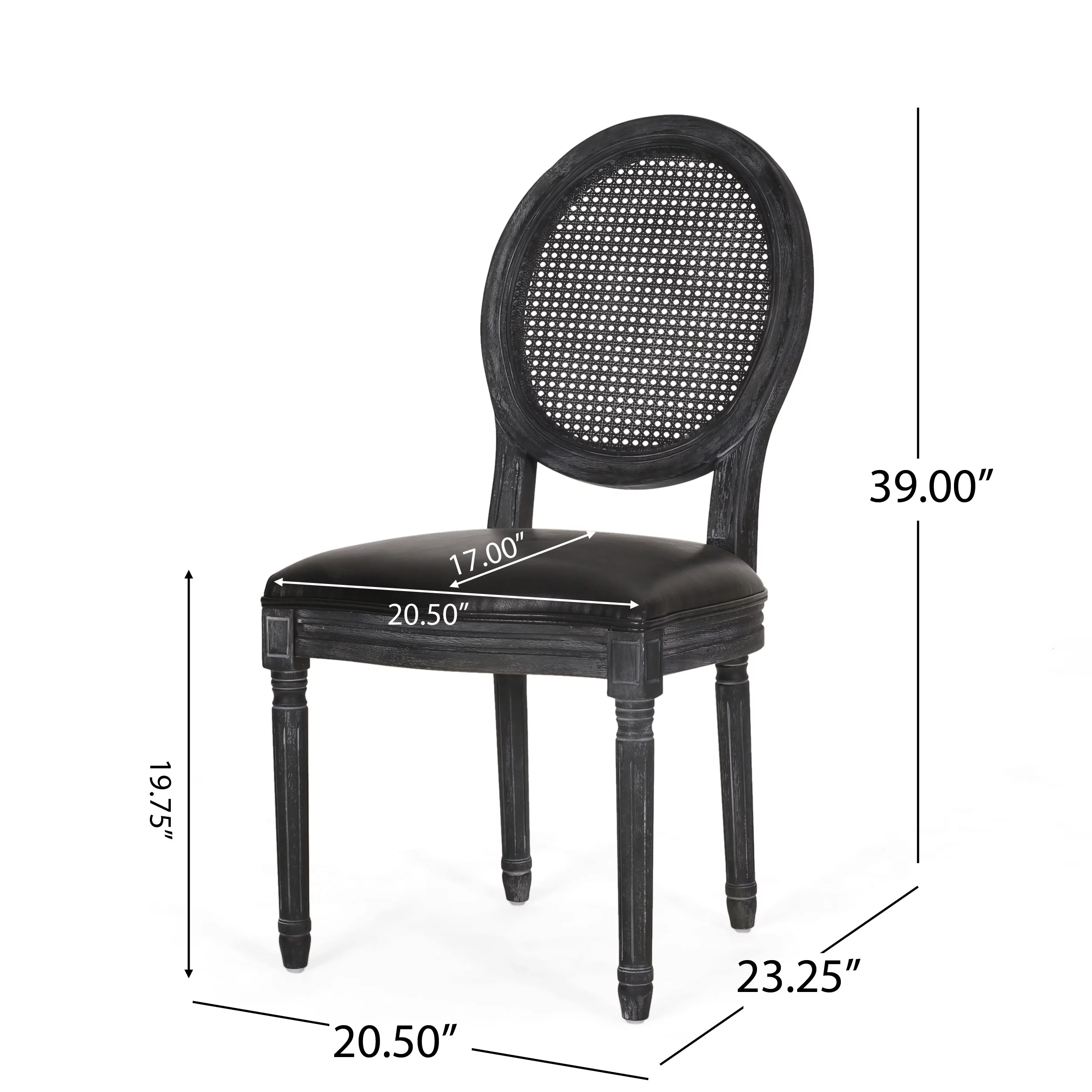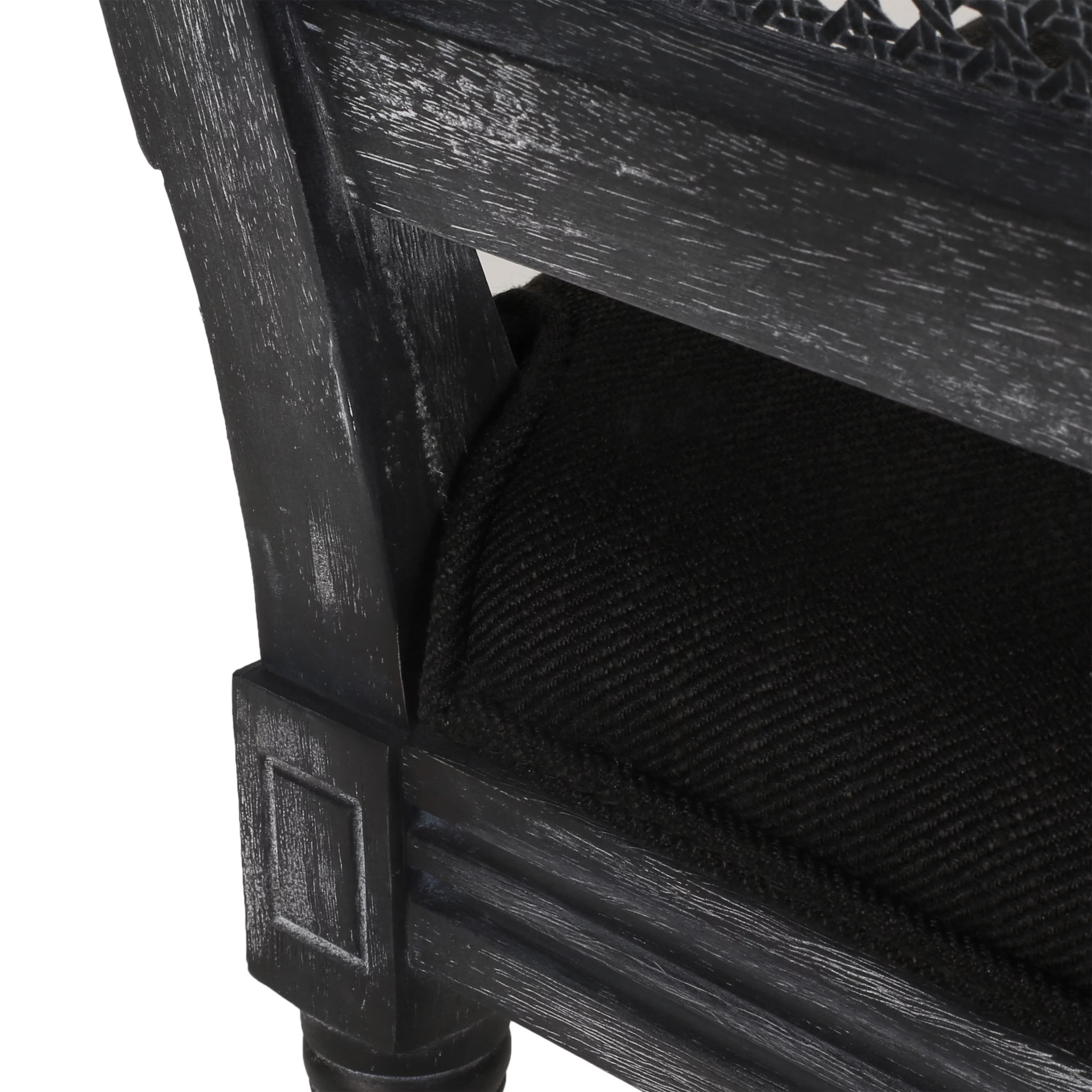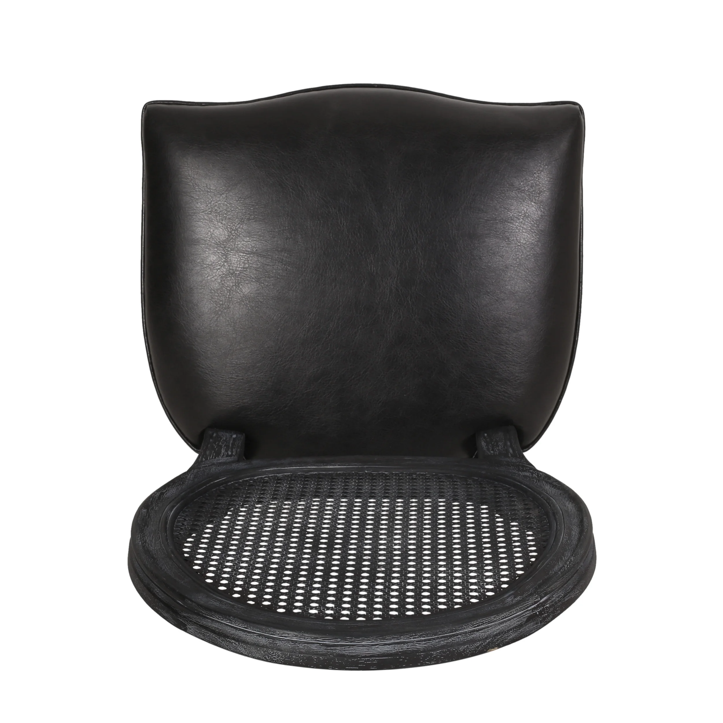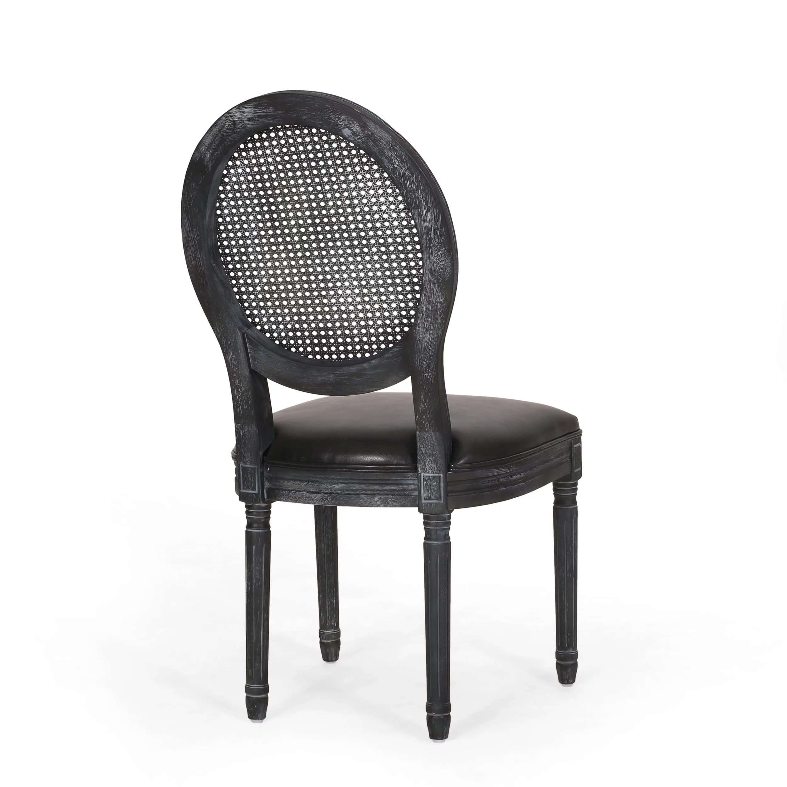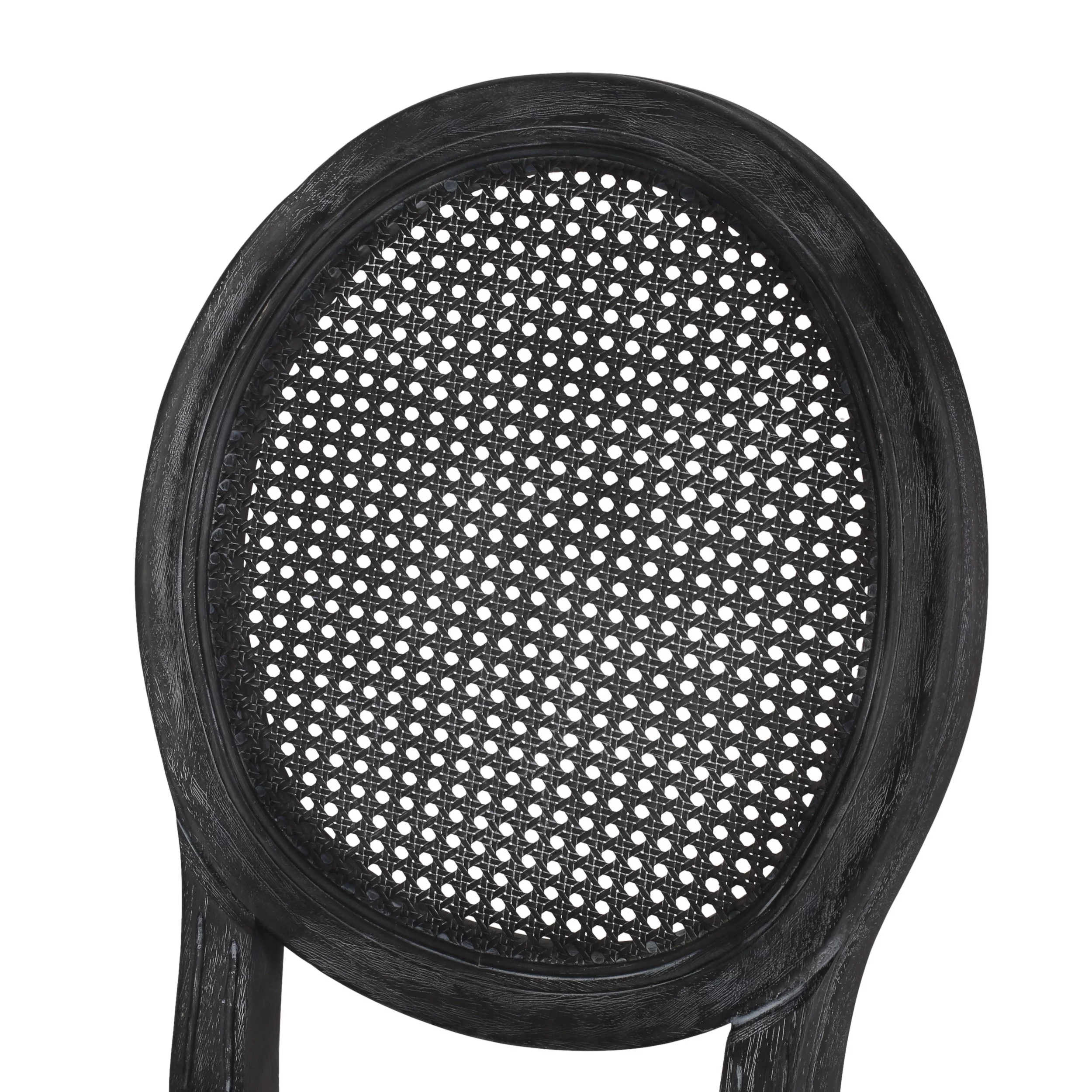 Lintz French Country Wood and Cane Upholstered Dining Chair, Set of 2, Midnight Black