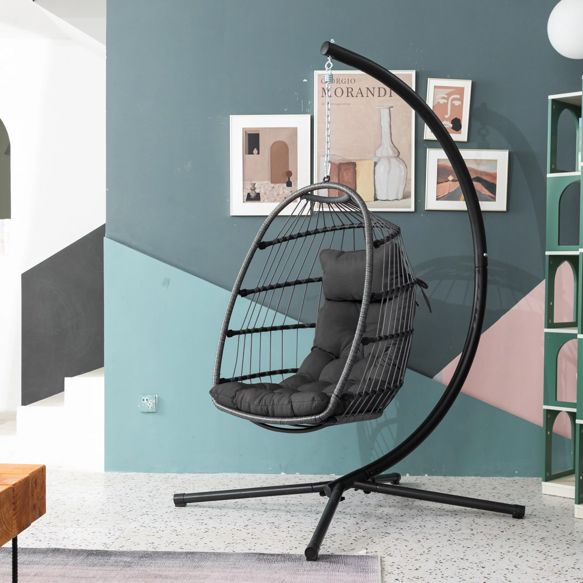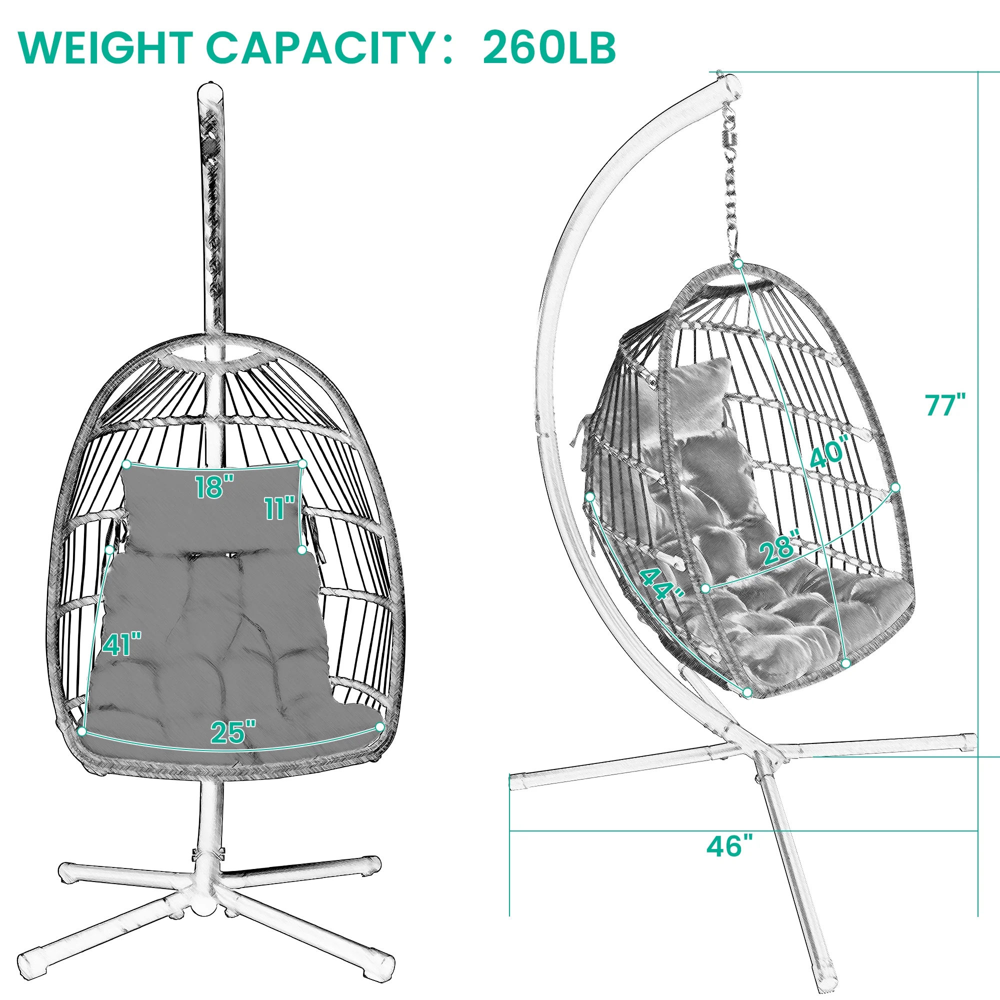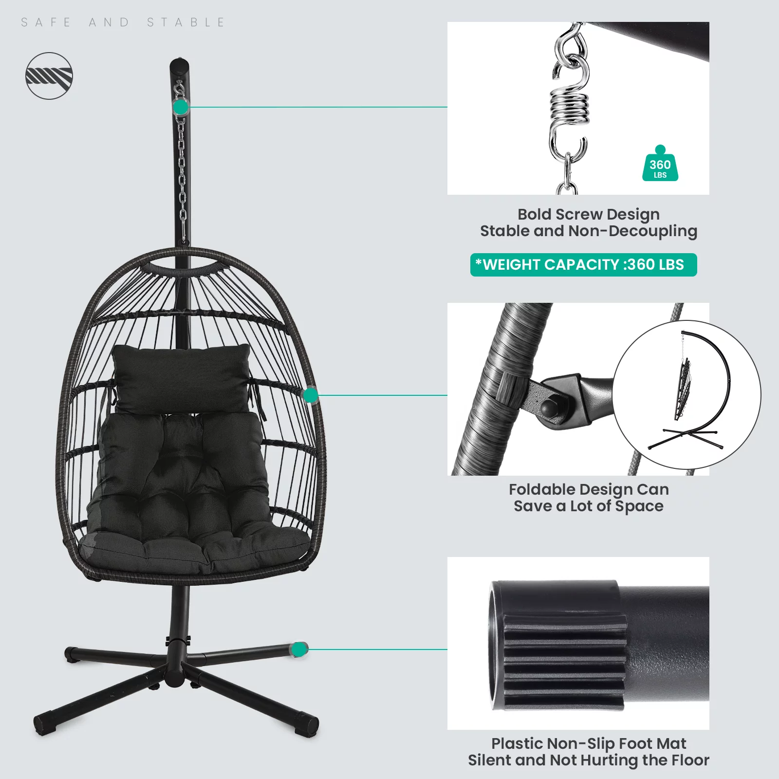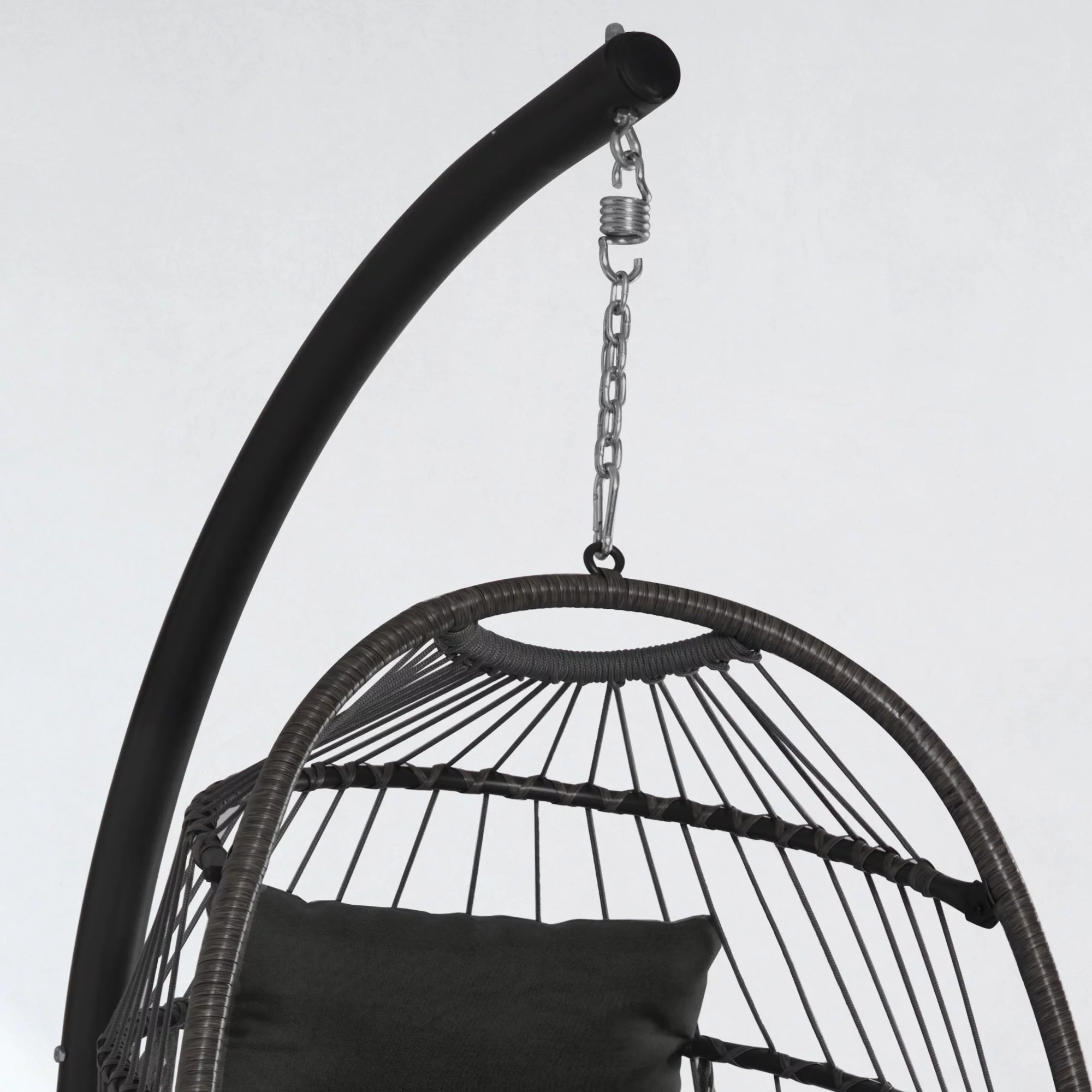 JUSTLET Outdoor Patio Wicker Hanging Egg Chair Swing w/ Stand and Cushion for Indoor Outdoor, Black