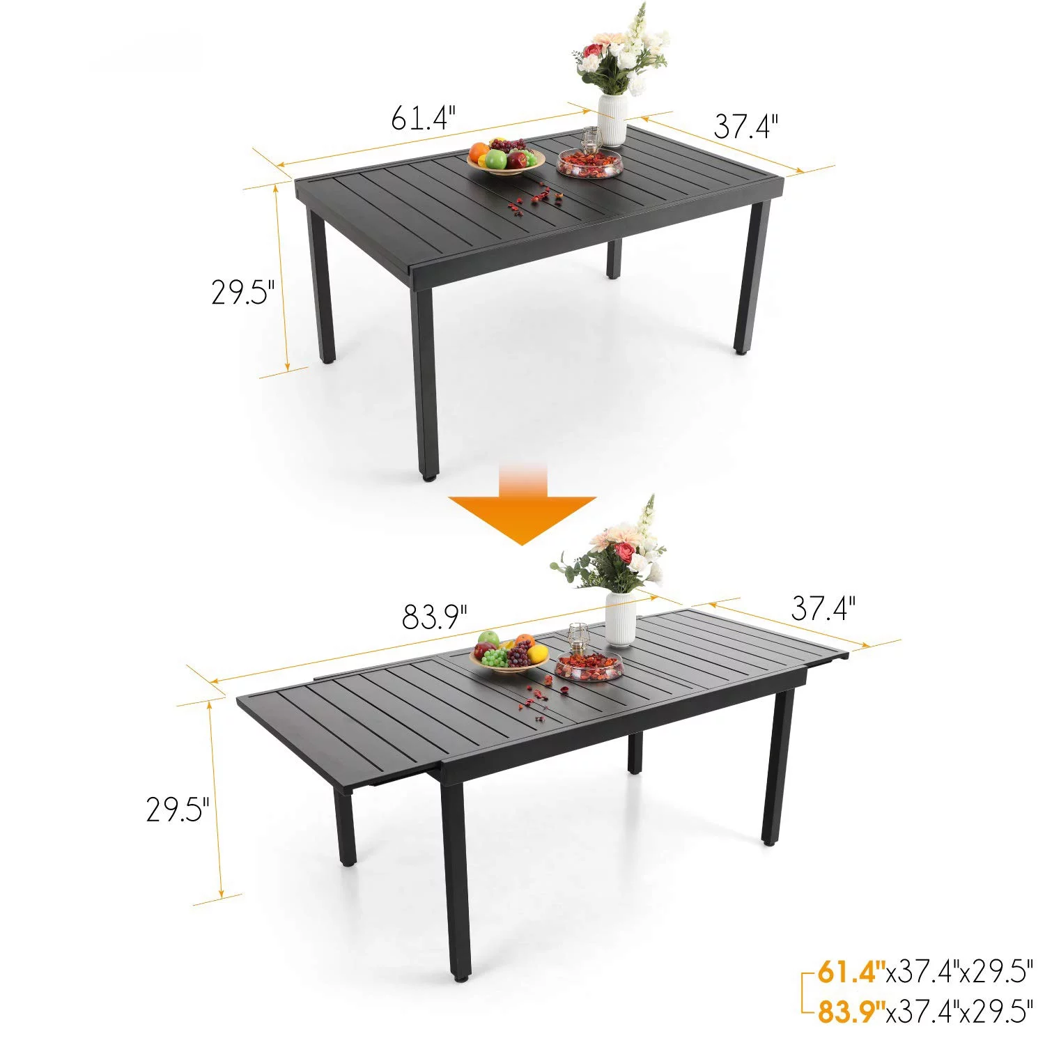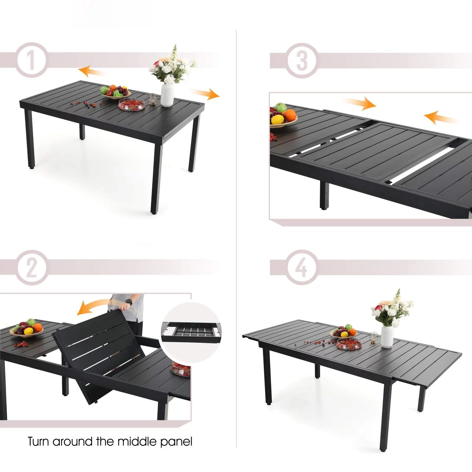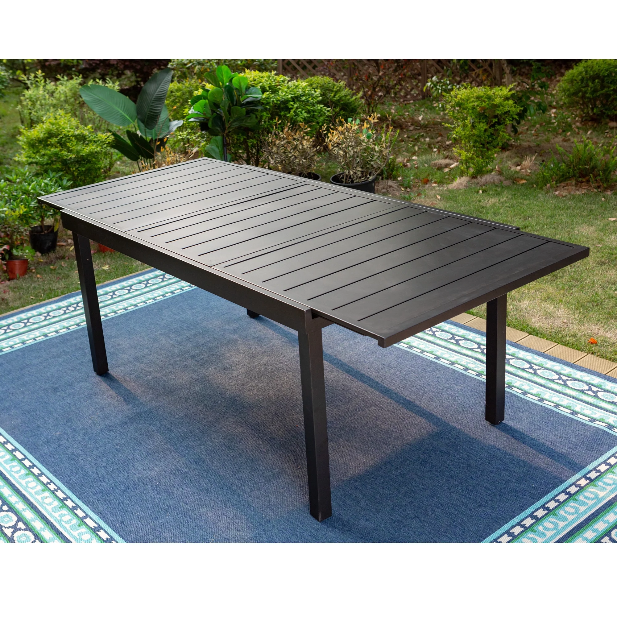 MF Studio 12-seater Patio Dining Set with 2 Extendable Tables and 12 Steel Armchairs for Thanksgiving, Family Dinner& Party, Black