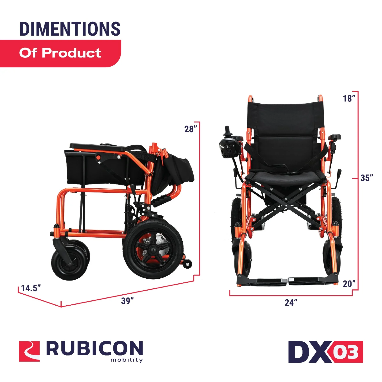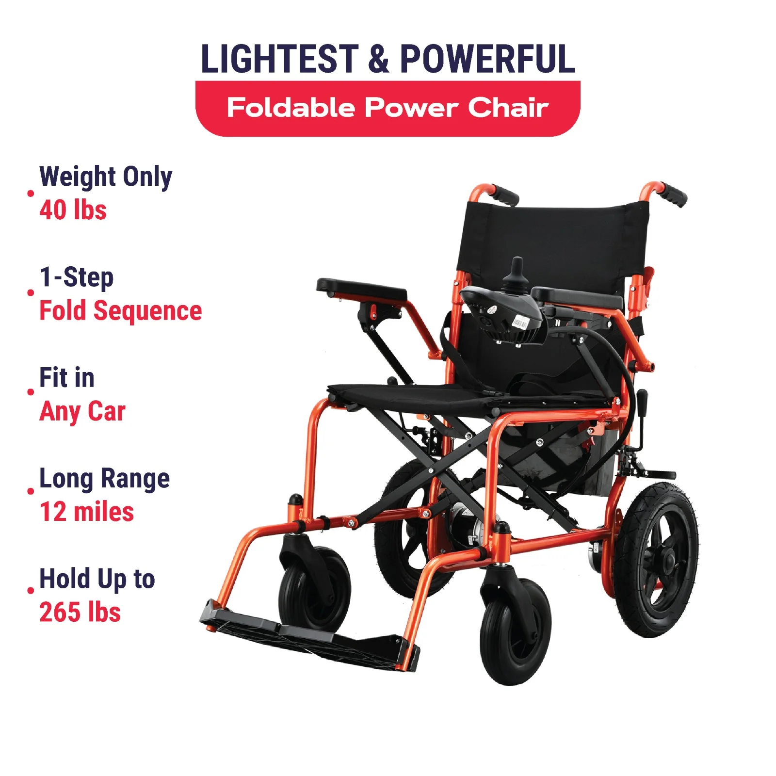 Lightweight Foldable Electric Wheelchair for Seniors, 500W Motor Power, 12 mi Cruise Range, Orange