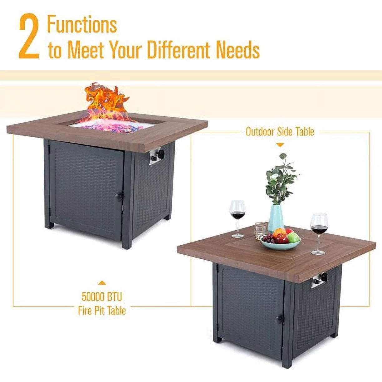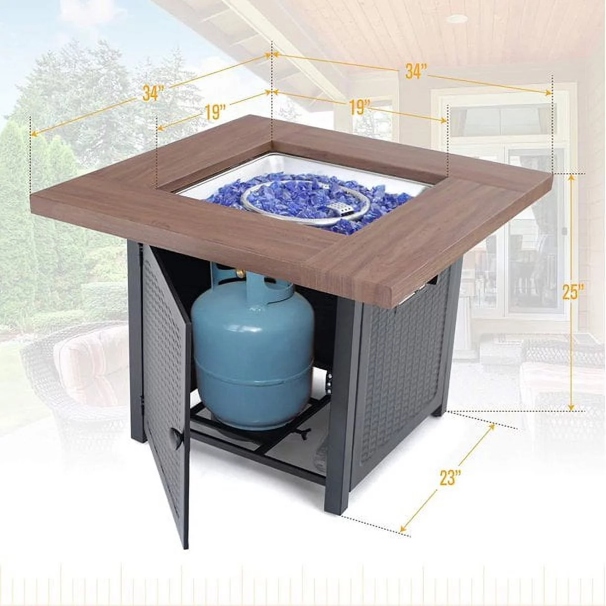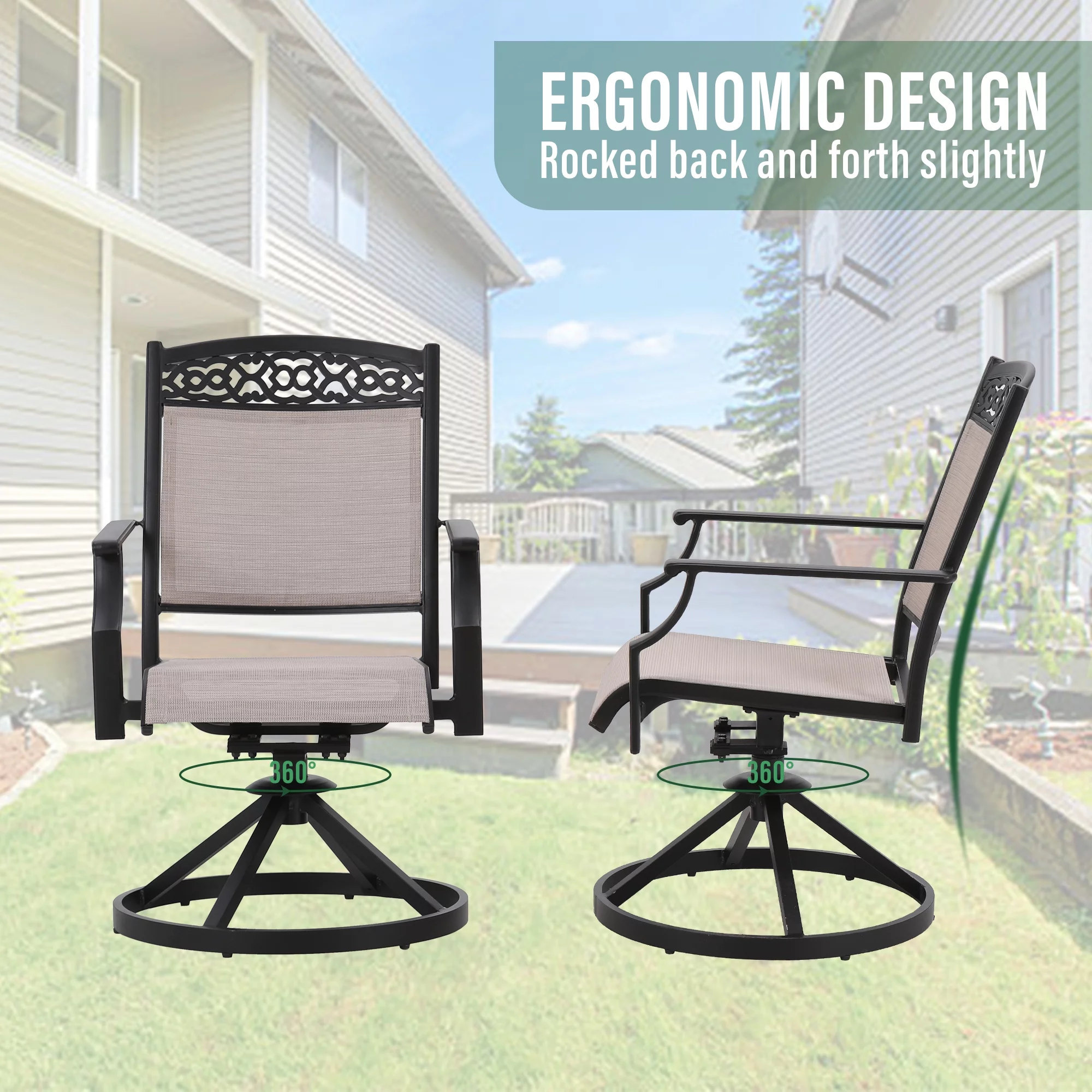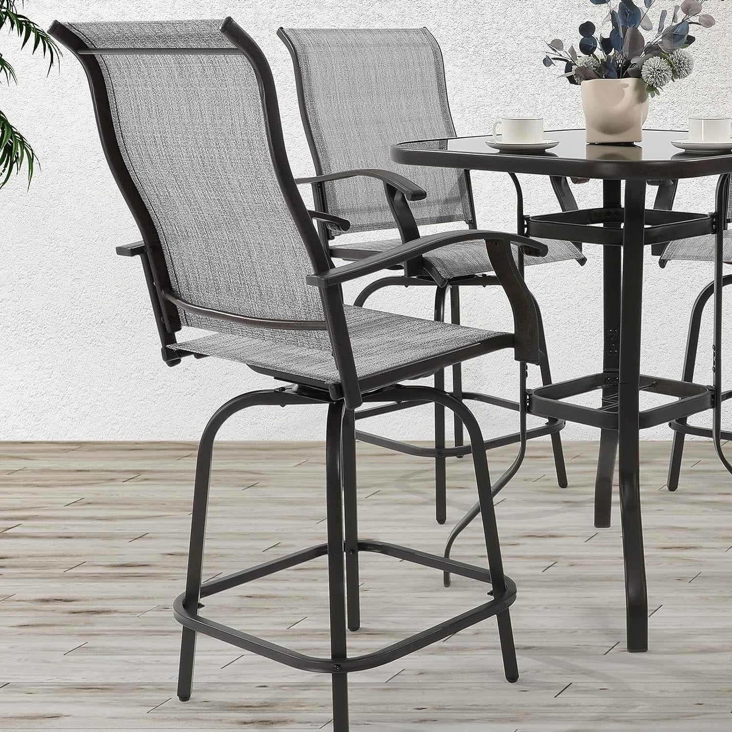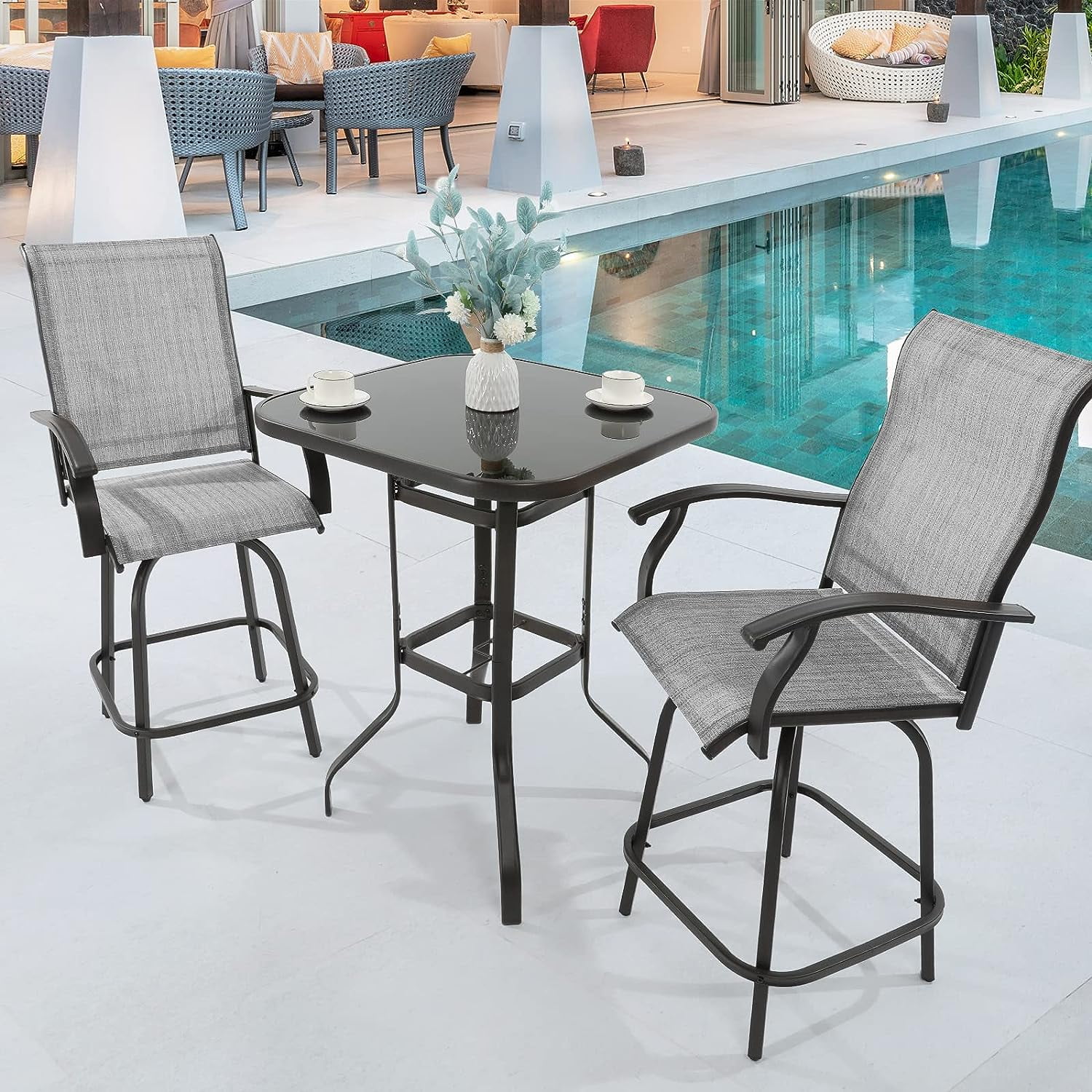 MF Studio 5 Pieces Patio Gas Fire Pit Set, a Fire Pit Table with LidPit & 4 Pieces Outdoor Swivel Chairs for Yard