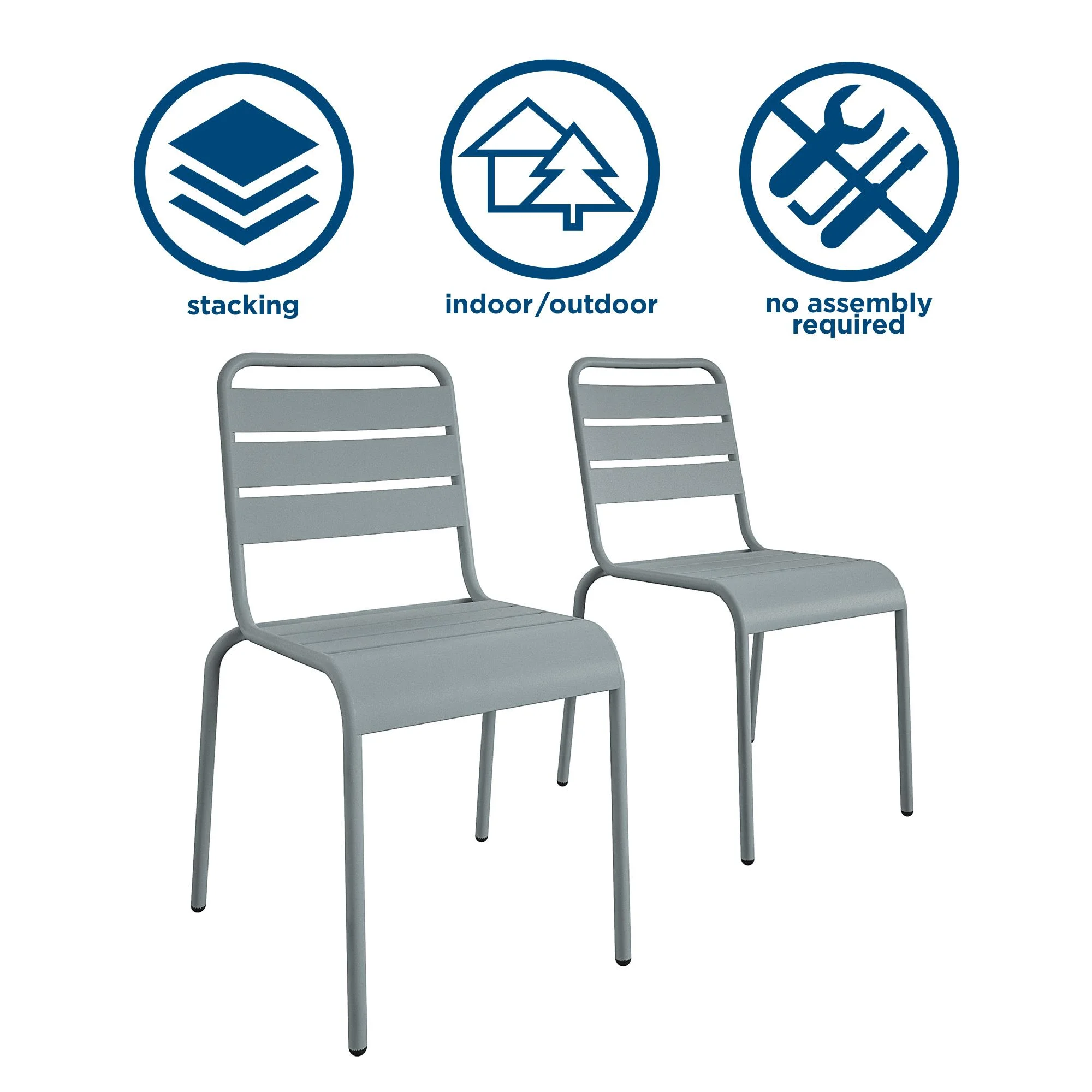 Novogratz Poolside Gossip, June Outdoor/Indoor Stacking Dining Chairs, 2-Pack, Light Gray