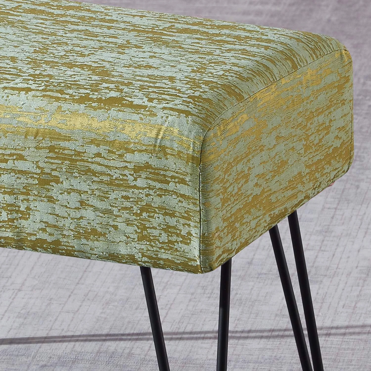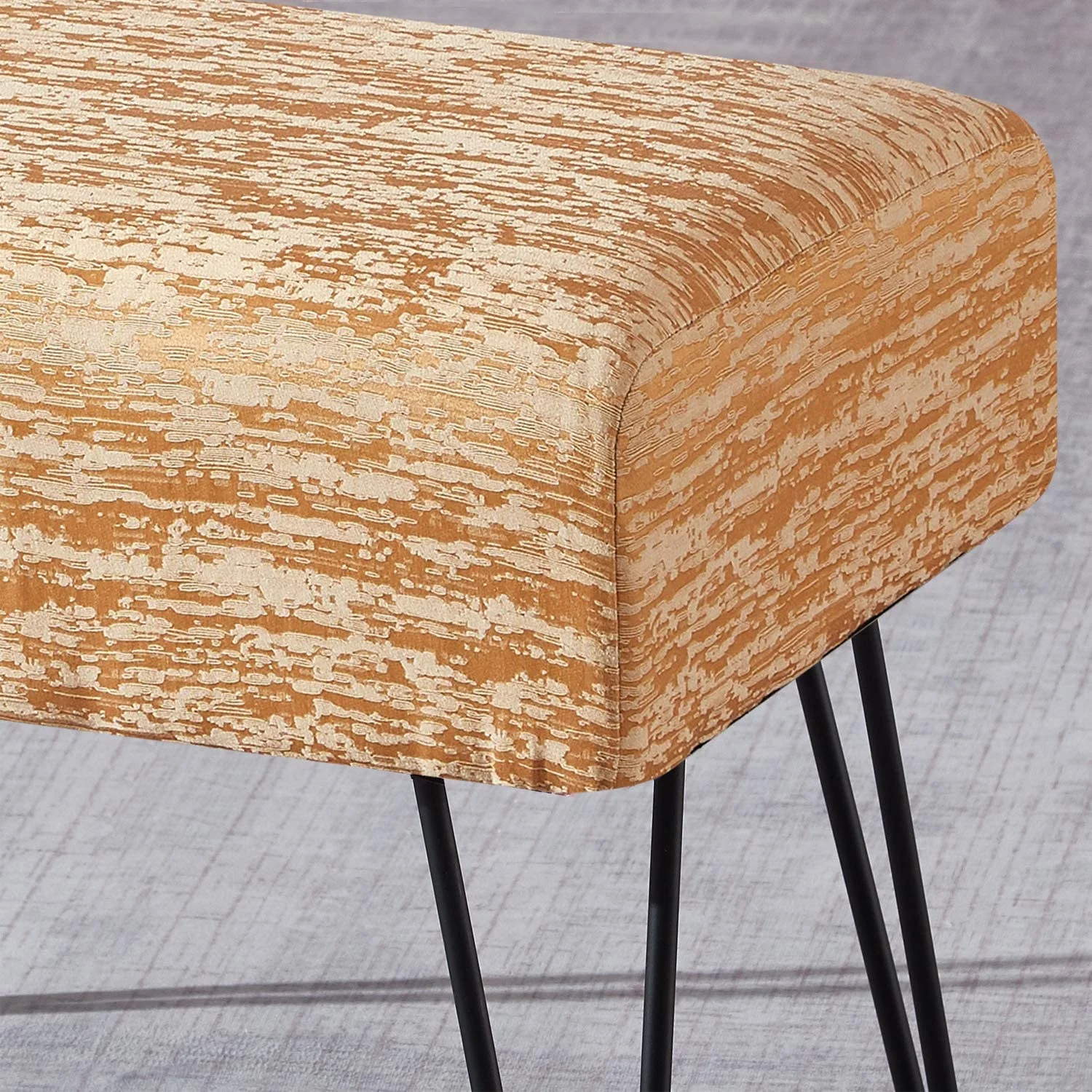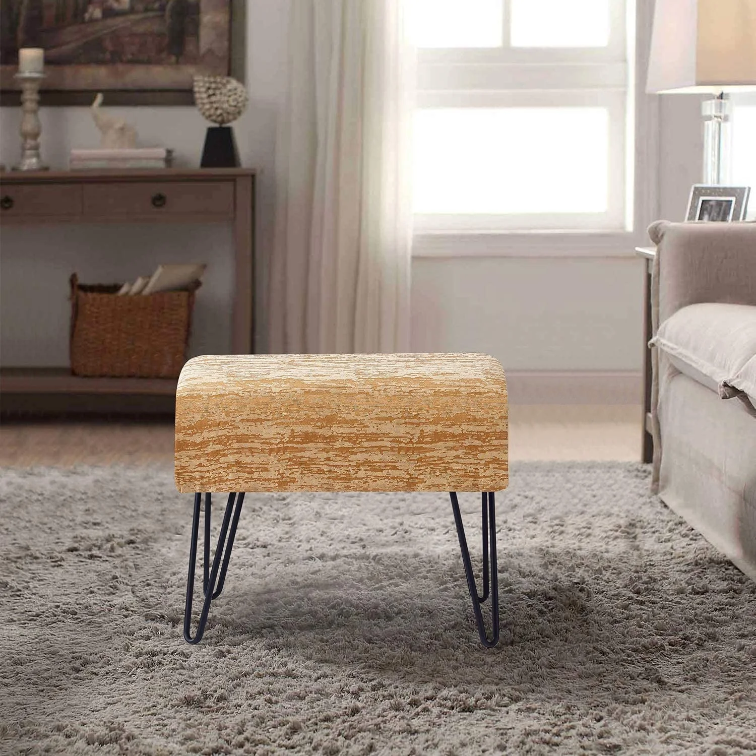 Jacquard Ottoman, 19" X 13" X 17" H, Benin - Gold, Entry Way Living Room Ottoman Entryway Bench Bedroom End Of Bed Decorative Makeup Stool Foot Rest Chair Home Décor