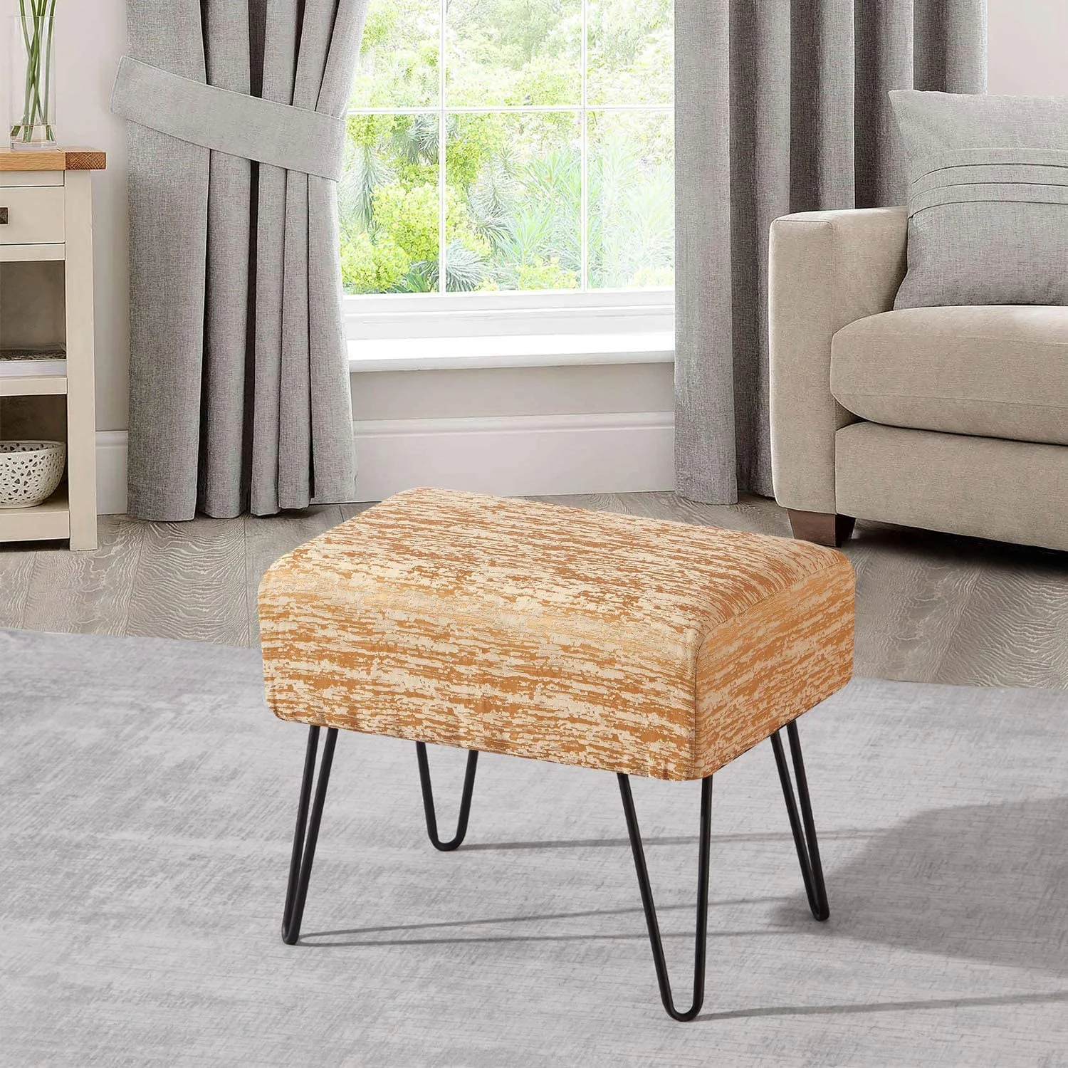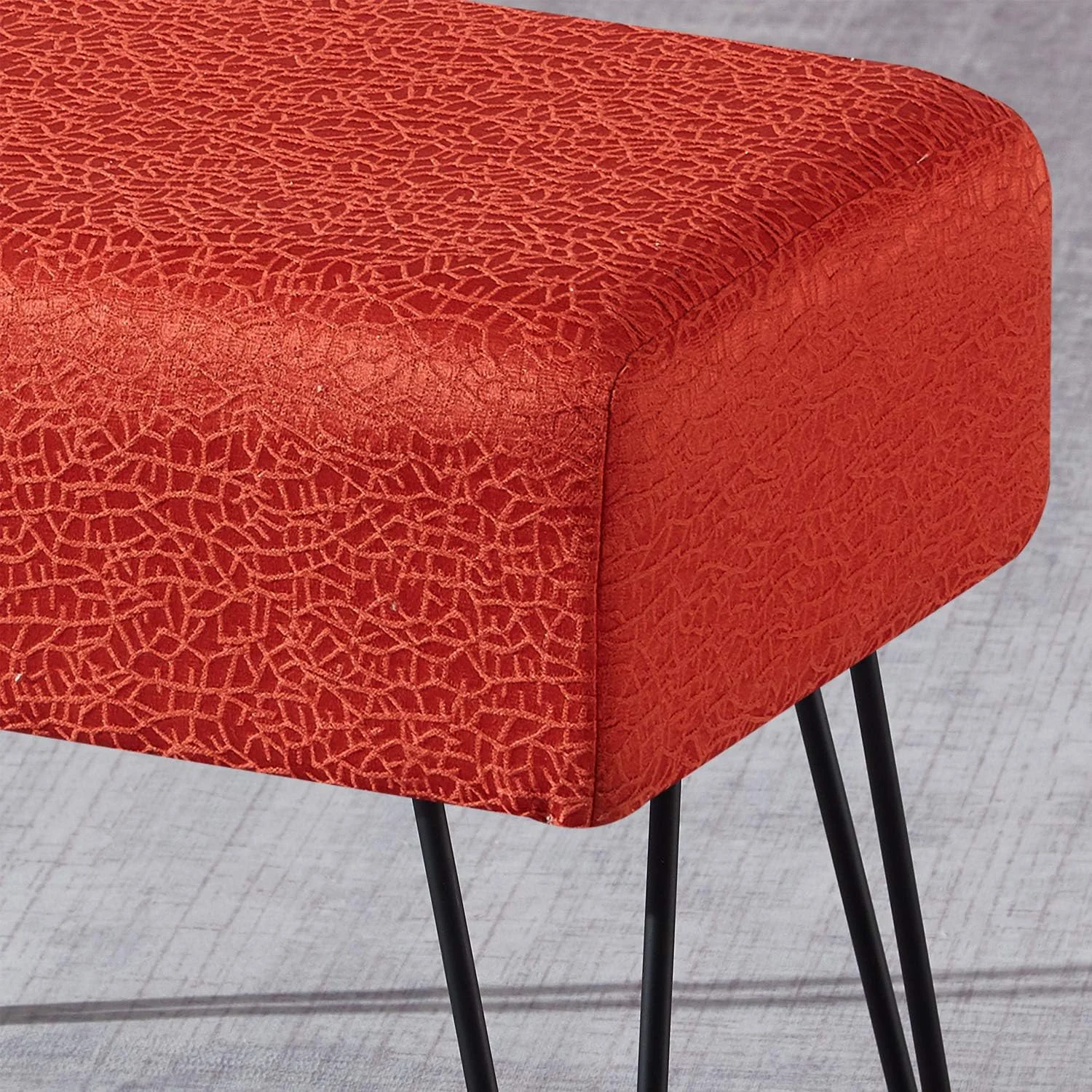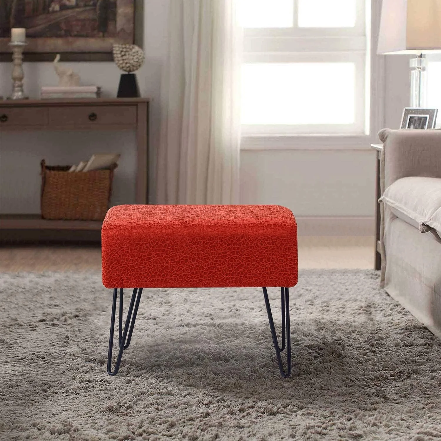 Jacquard Ottoman, 19" X 13" X 17" H, Angola - Tigerlily, Entry Way Living Room Ottoman Entryway Bench Bedroom End Of Bed Decorative Makeup Stool Foot Rest Chair Home Décor