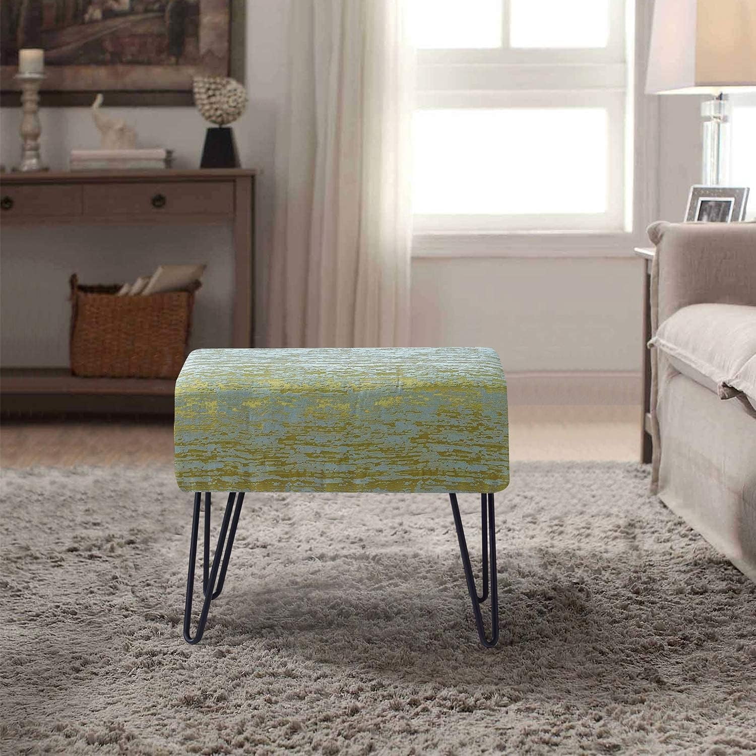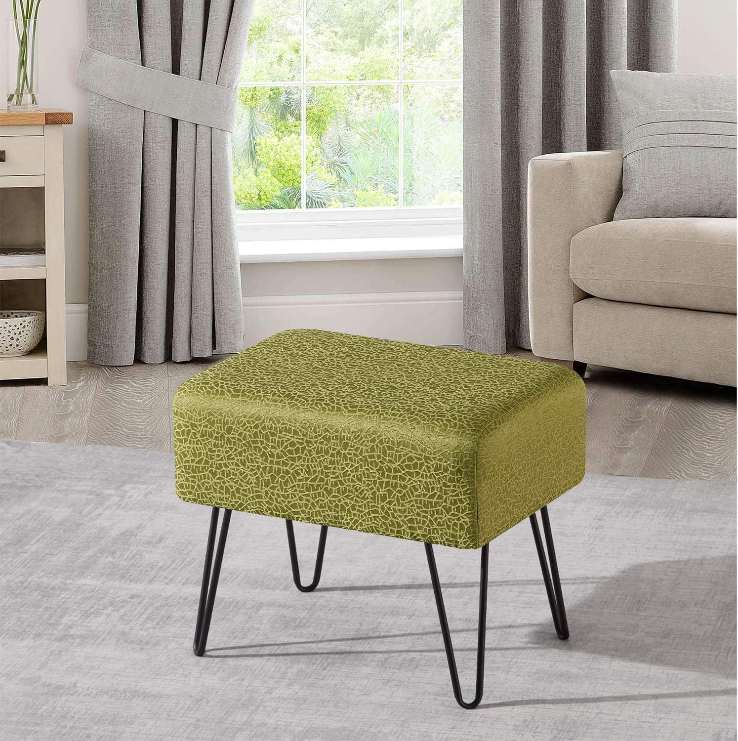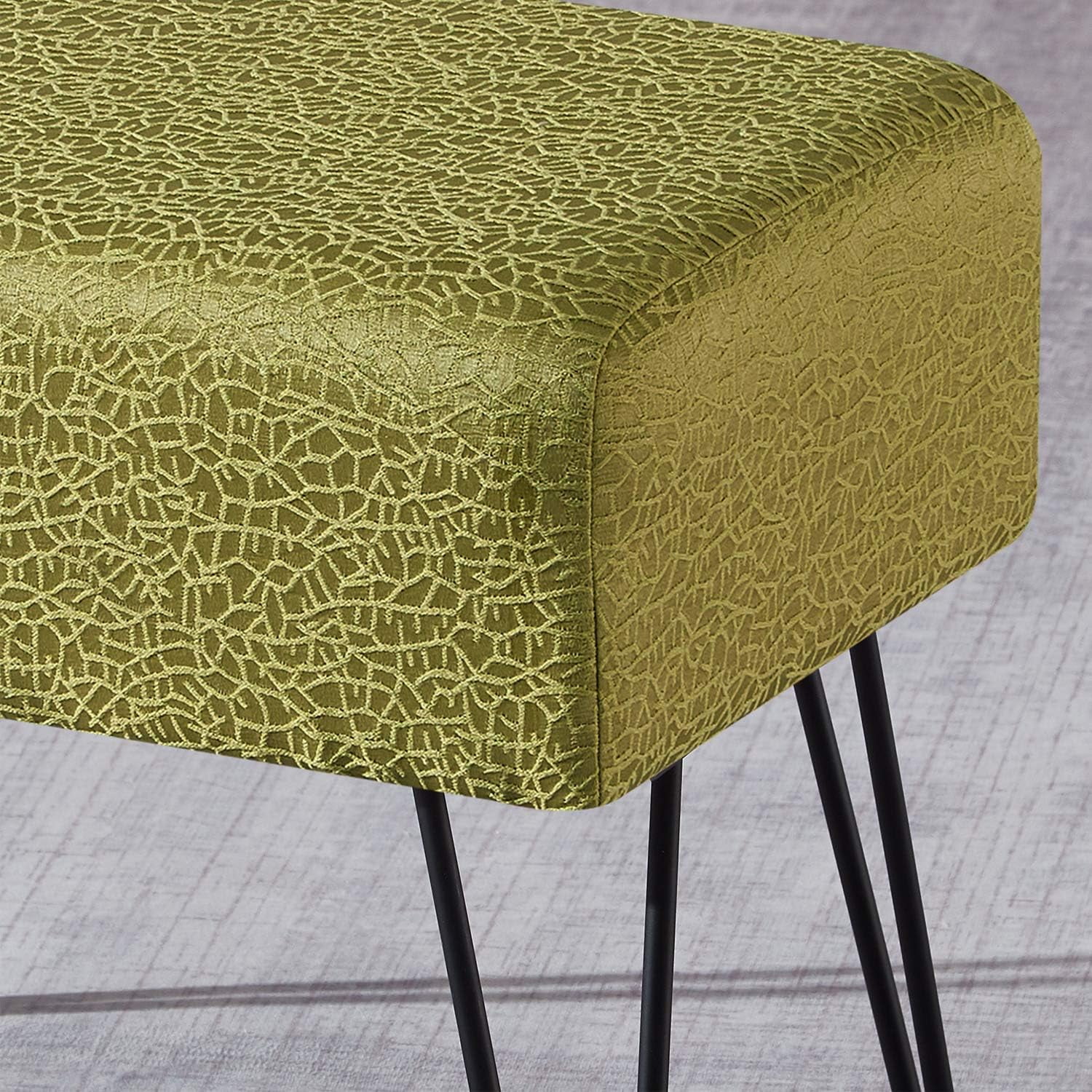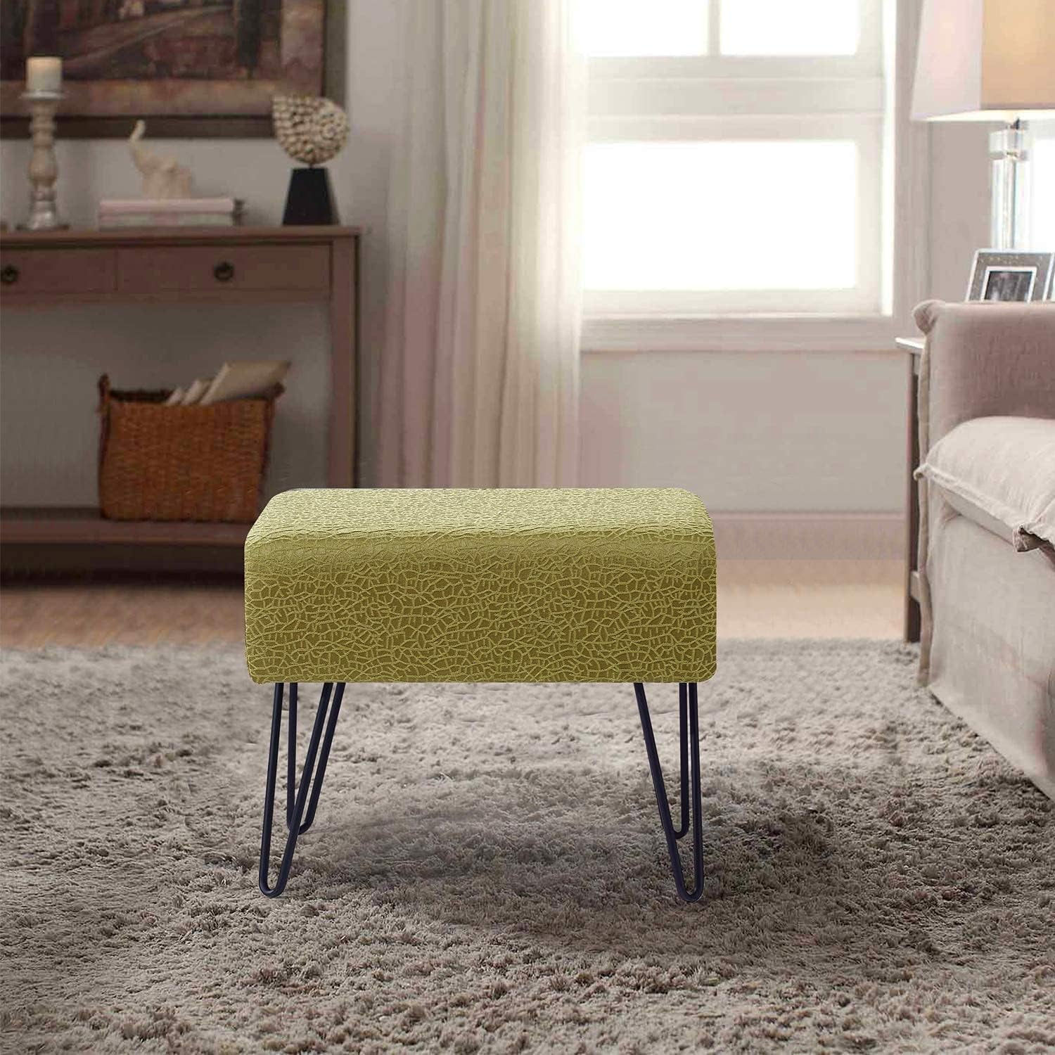 Green Jacquard Ottoman, 19" X 13" X 17" H, Angola - Sweet Pea, Entry Way Living Room Ottoman Entryway Bench Bedroom End Of Bed Decorative Makeup Stool Foot Rest Chair Home Décor