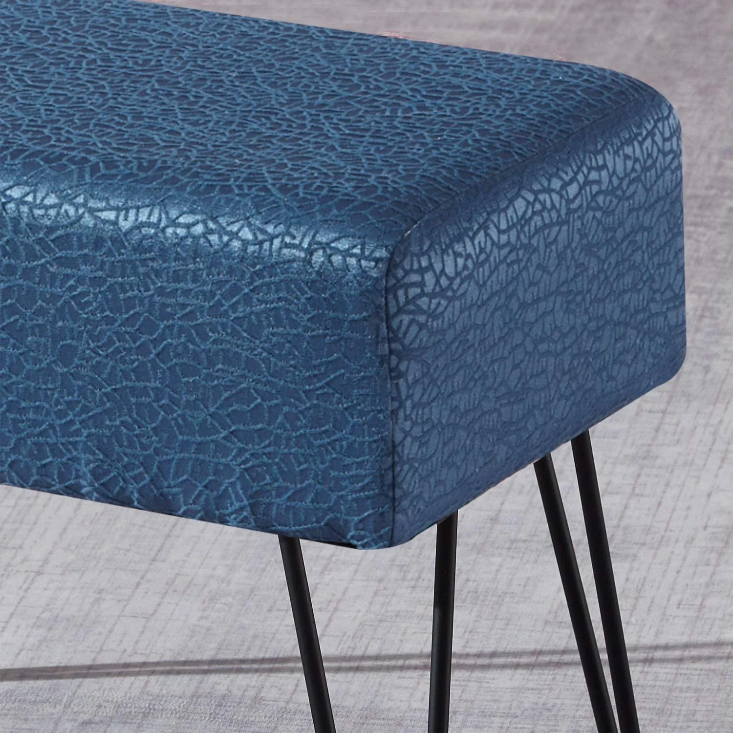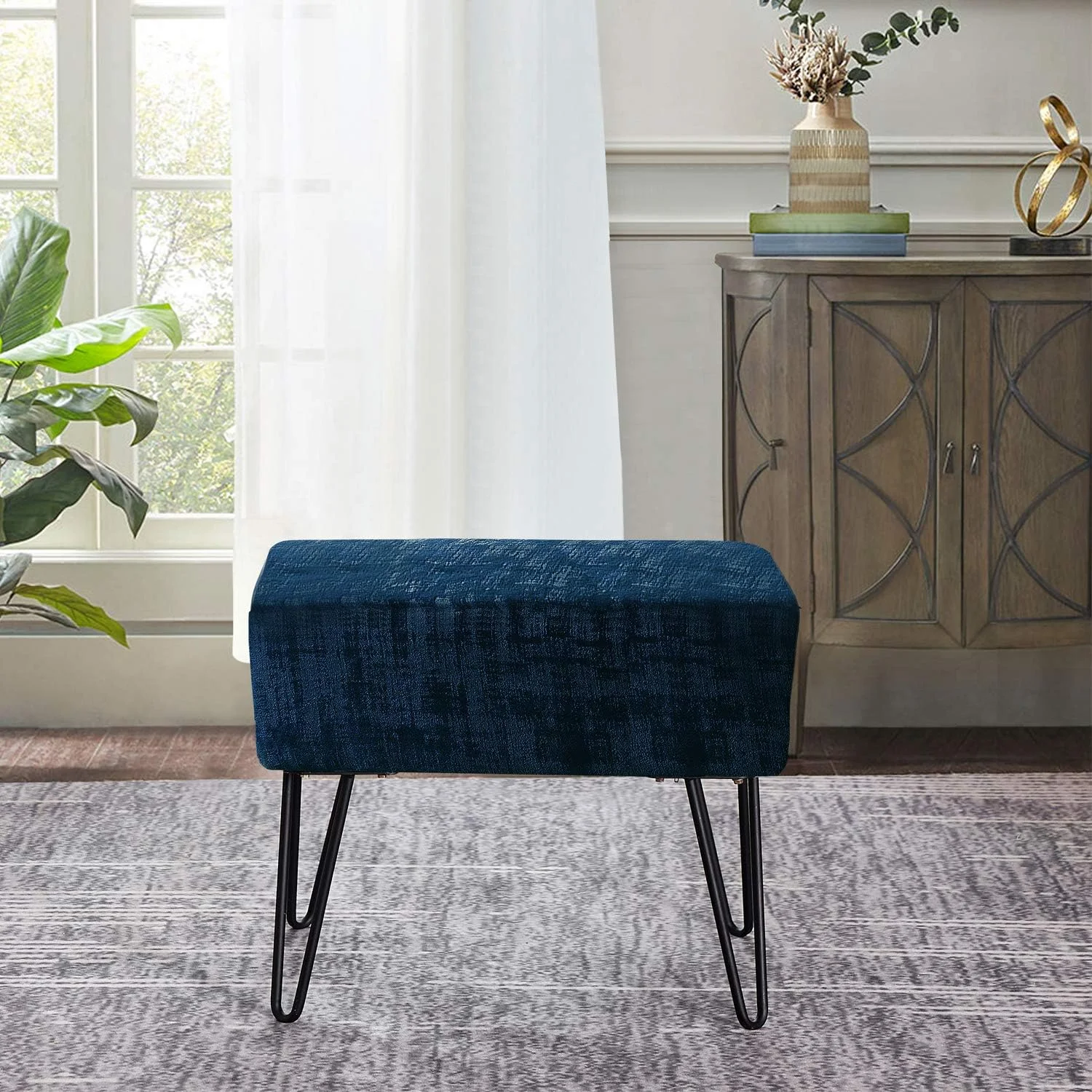 Blue Textured Velvet Ottoman, North Sea, 19'' X 13'' X 17'' H, Fuzzy Entry Way Ottoman Bench For Living Room Bedroom End Of Bed Decorative Makeup Stool Foot Rest Chair Home Décor