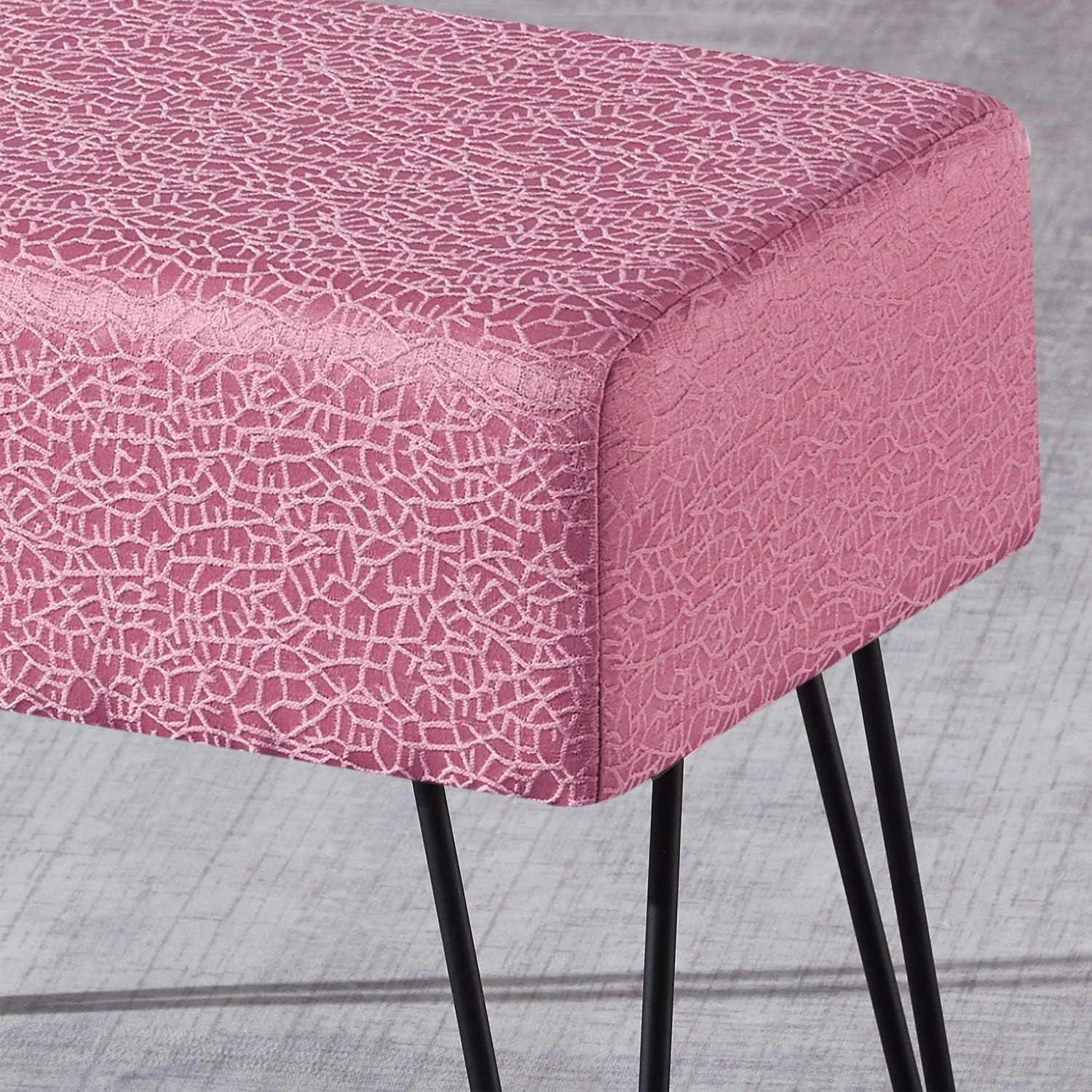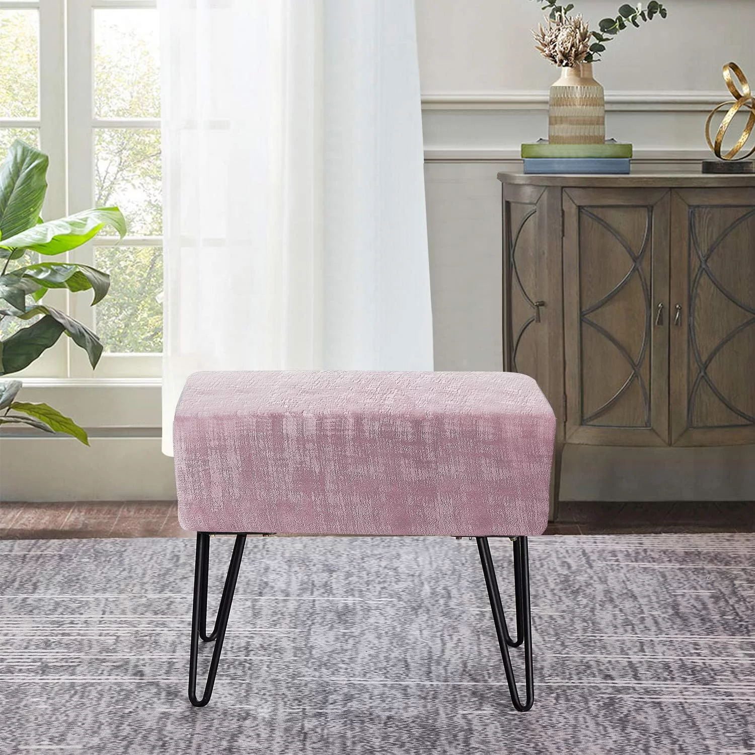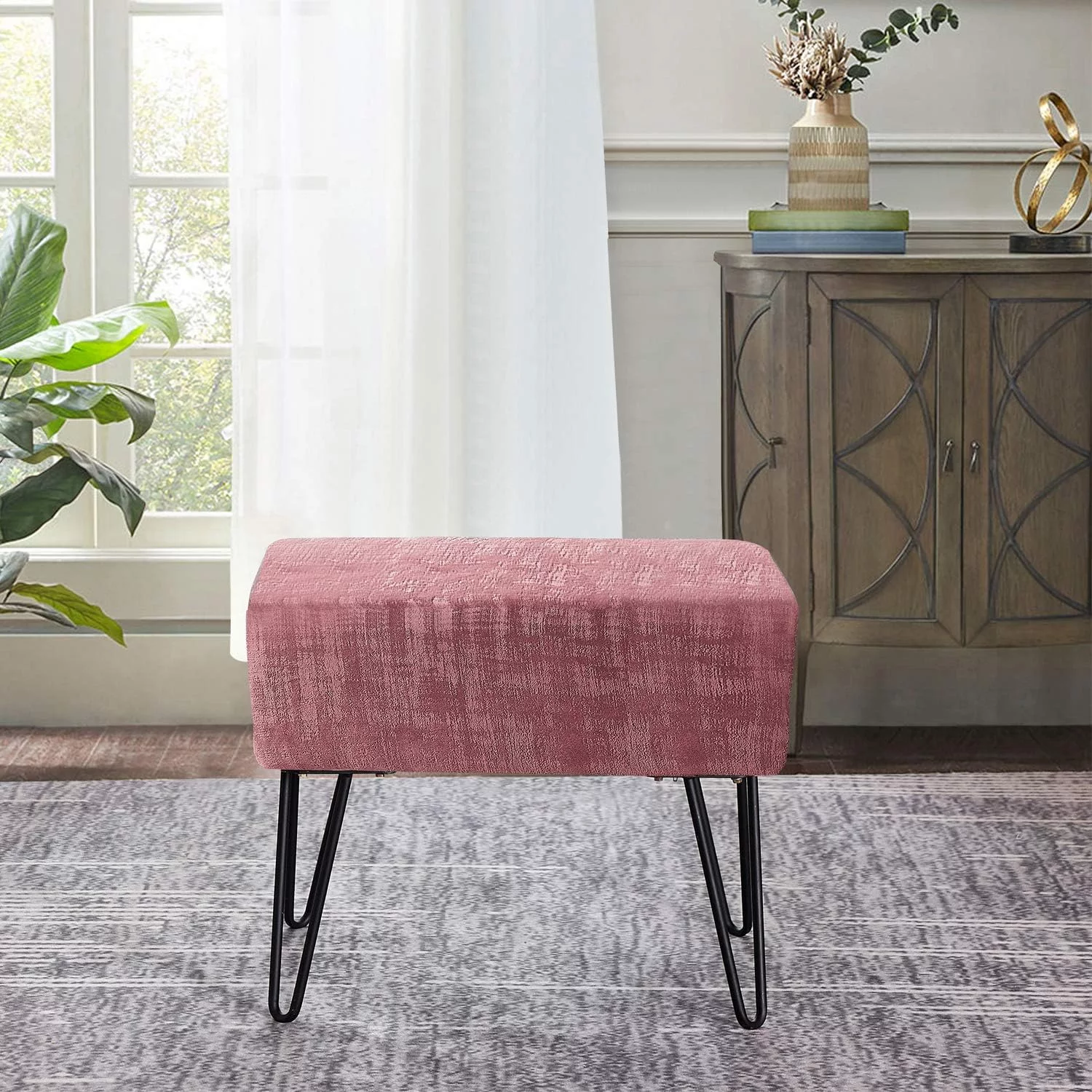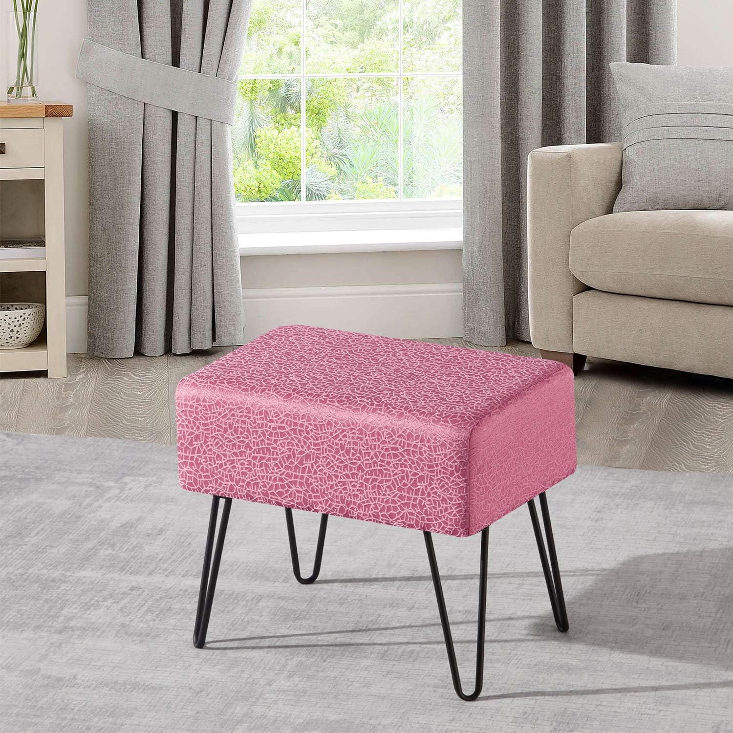 Textured Velvet Ottoman, Withered Rose, 19'' X 13'' X 17'' H, Fuzzy Entry Way Ottoman Bench For Living Room Bedroom End Of Bed Decorative Makeup Stool Foot Rest Chair Home Décor