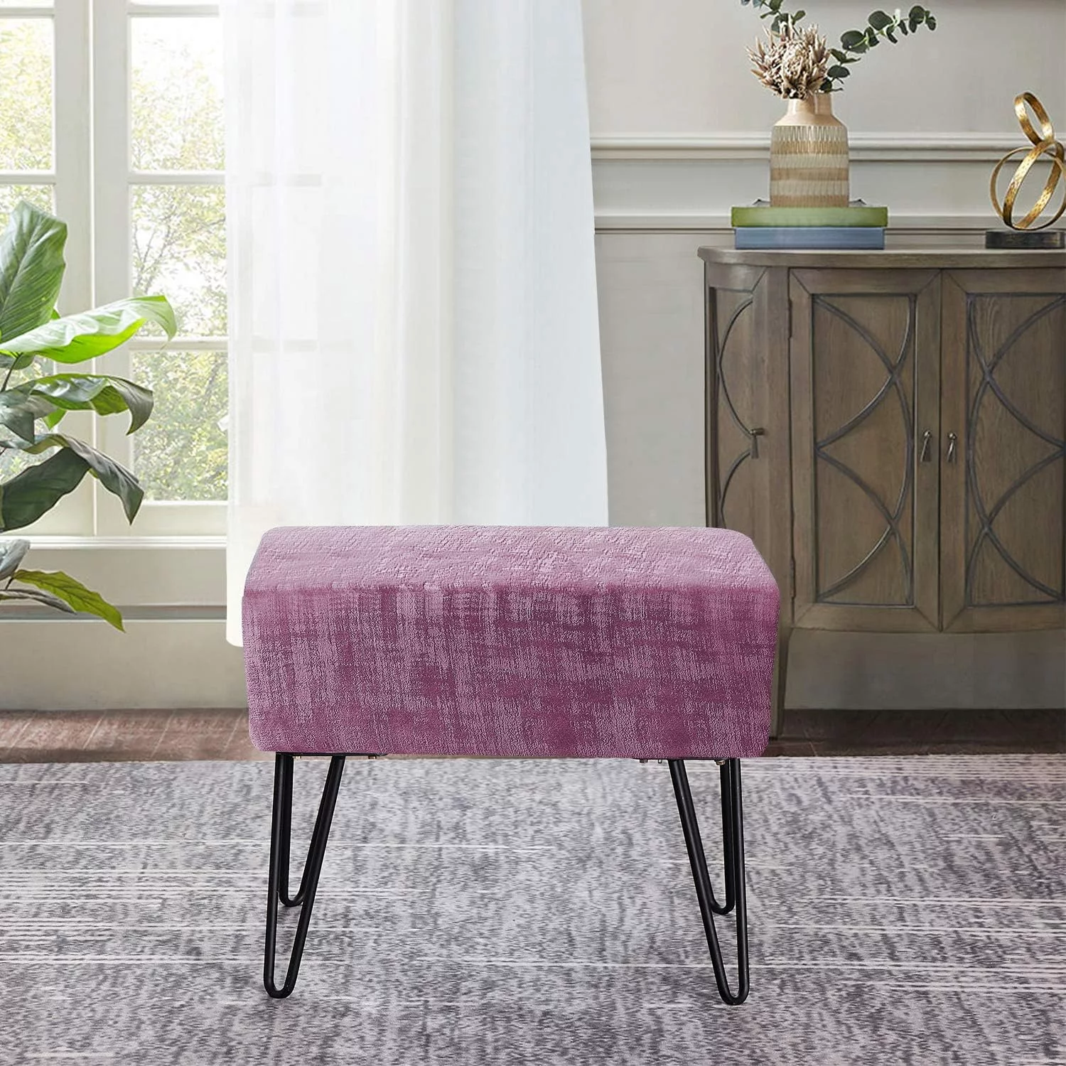 Purple Textured Velvet Ottoman, Mauve s, 19'' X 13'' X 17'' H, Fuzzy Entry Way Ottoman Bench Living Room Bedroom End Of Bed Decorative Makeup Stool Foot Rest Chair Home Décor