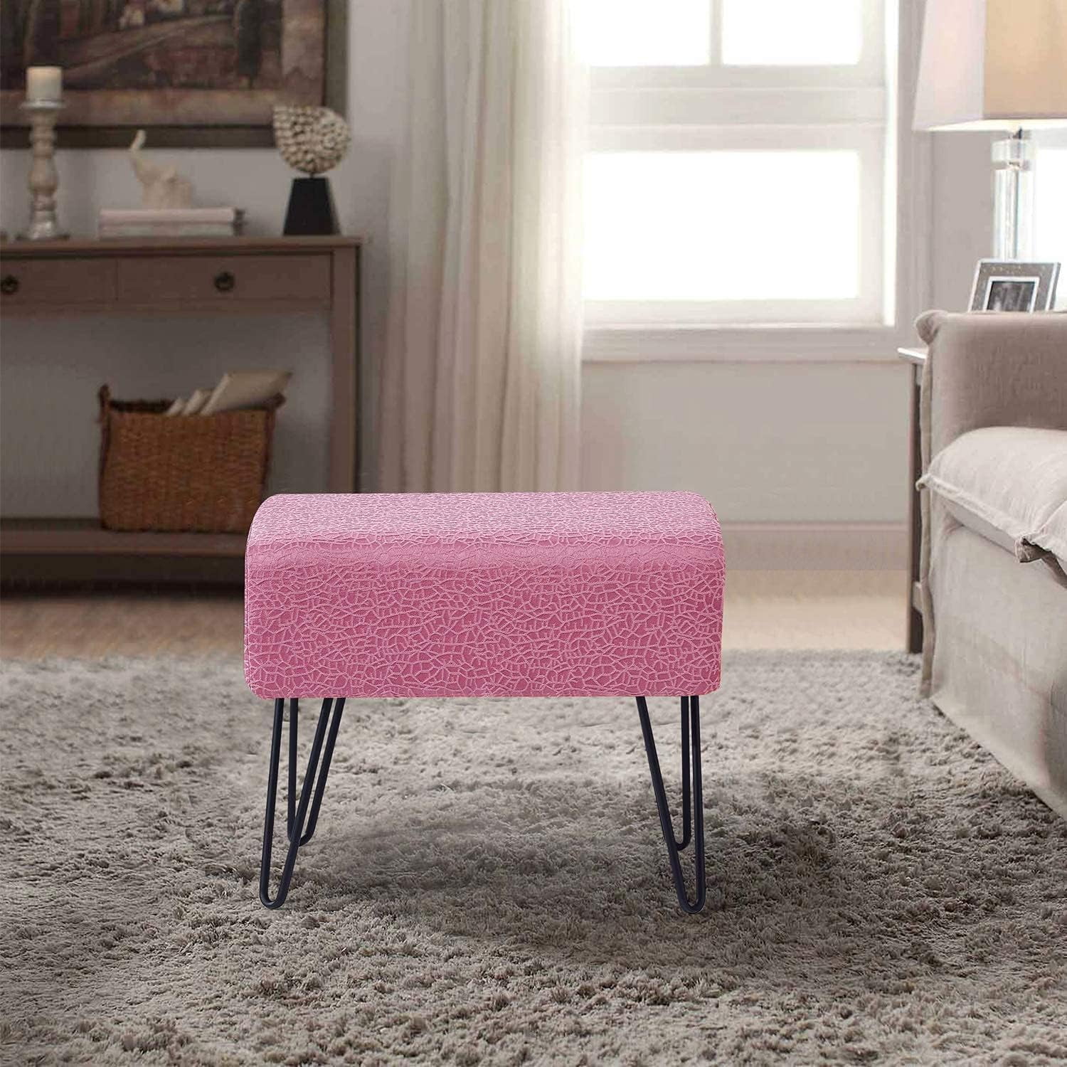 Jacquard Ottoman, 19" X 13" X 17" H, Angola - Candy , Entry Way Living Room Ottoman Entryway Bench Bedroom End Of Bed Decorative Makeup Stool Foot Rest Chair Home Décor
