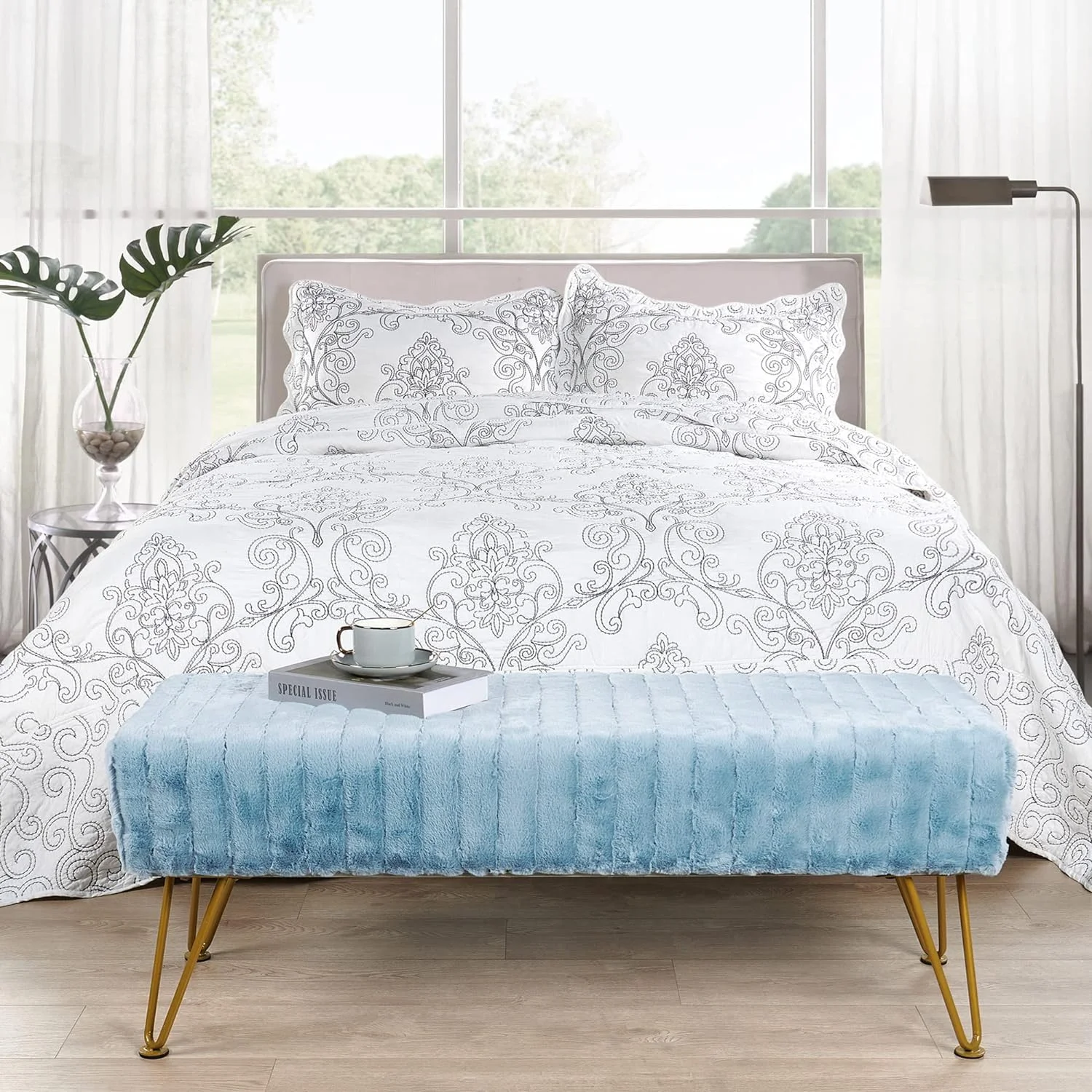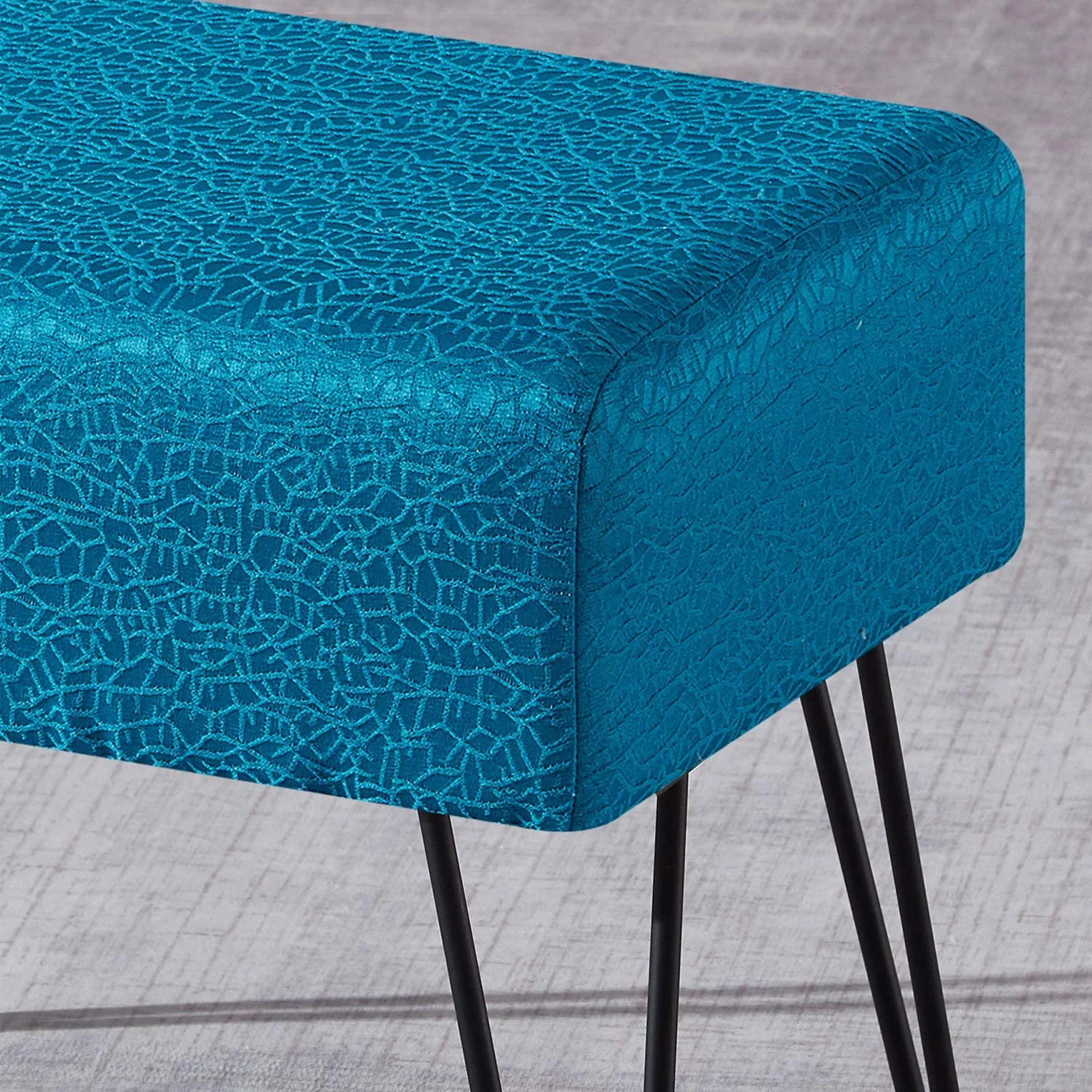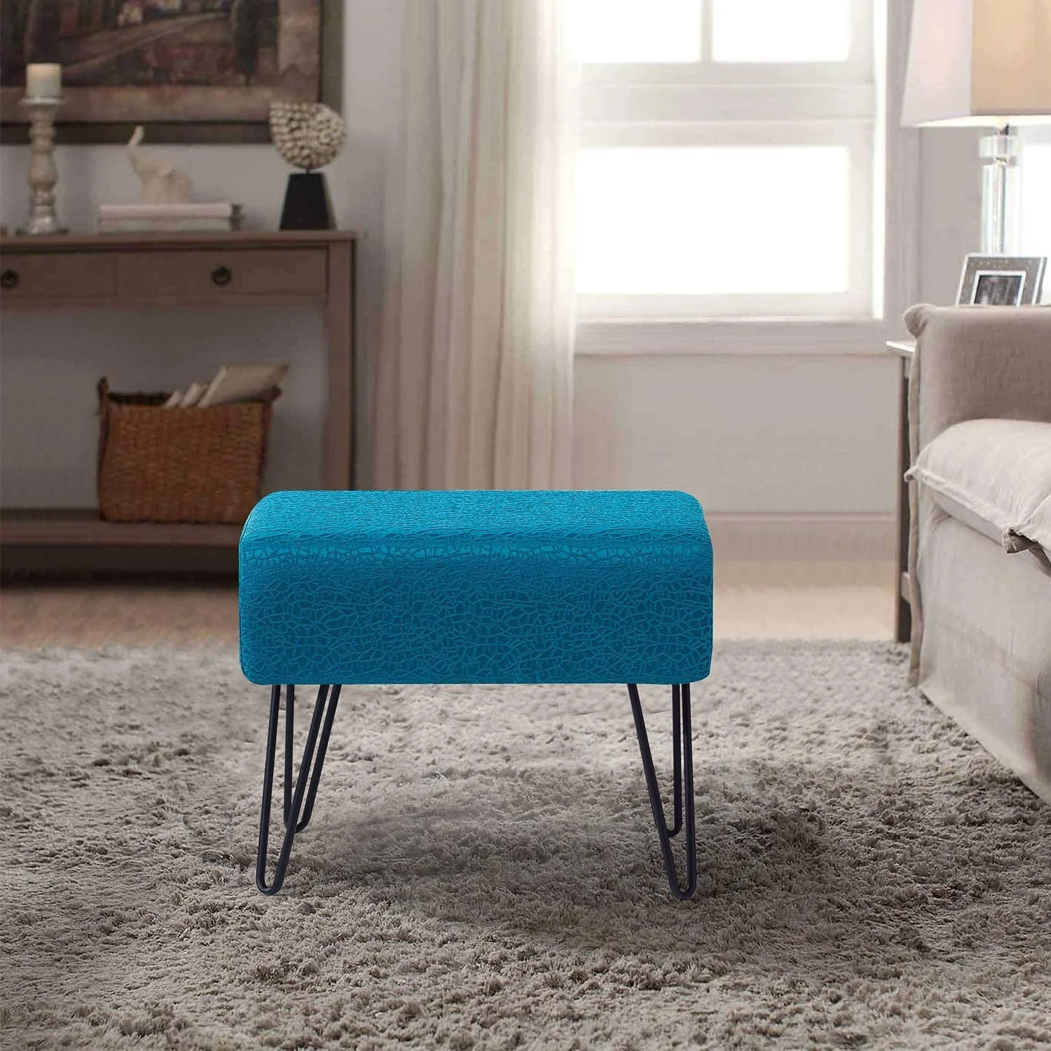 Blue Jacquard Ottoman, 19" X 13" X 17" H, Angola - Real Teal, Entry Way Living Room Ottoman Entryway Bench Bedroom End Of Bed Decorative Makeup Stool Foot Rest Chair Home Décor