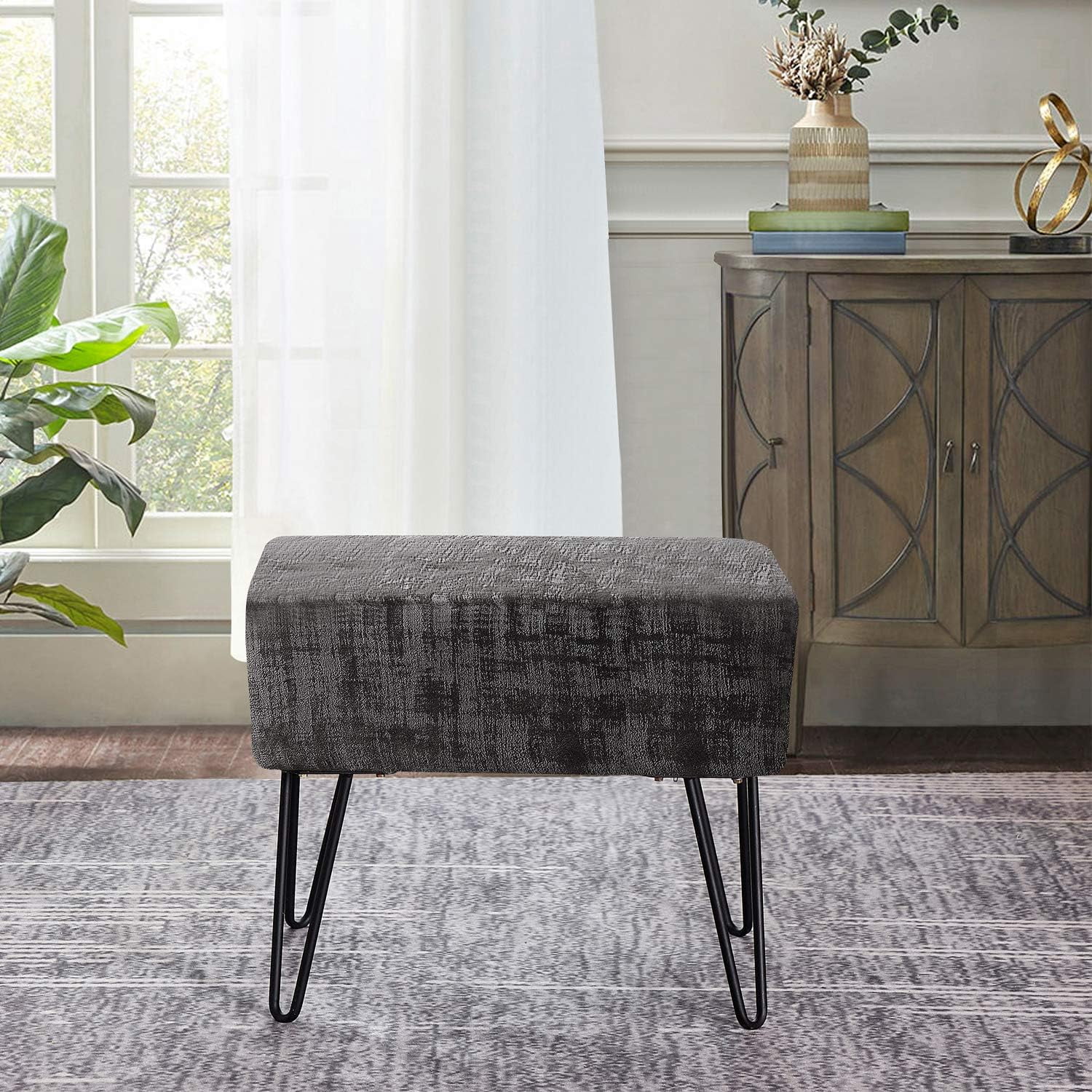 Textured Velvet Ottoman 19'' X 13'' X 17'' H, Fuzzy Entry Way Ottoman Bench For Living Room Bedroom End Of Bed Decorative Makeup Stool Foot Rest Chair Decor