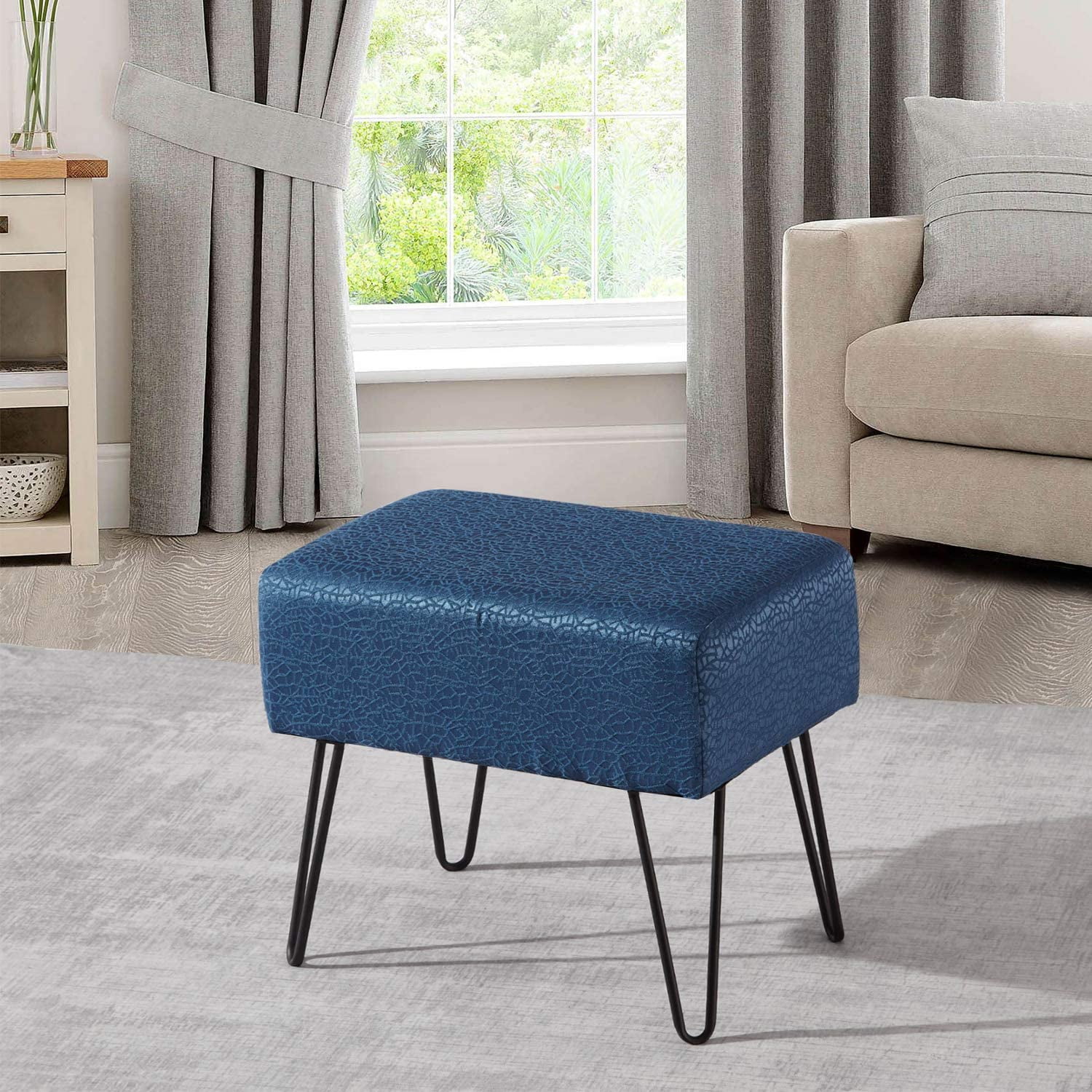 Soft Foot Stool,Dressing Makeup Chair,Upholstered Ottoman Blue