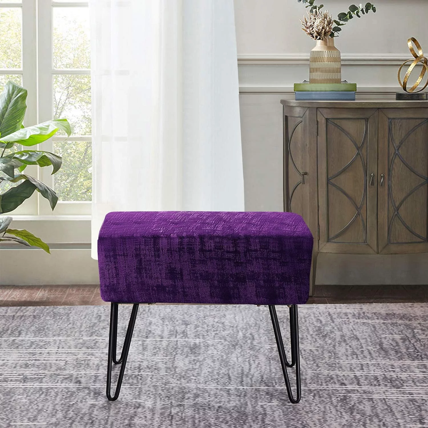 Textured Velvet Ottoman, 19" X 13" X 17" H, Purple, Fuzzy Entry Way Ottoman Bench For Living Room Bedroom End Of Bed Decorative Makeup Stool Foot Rest Chair Home Décor