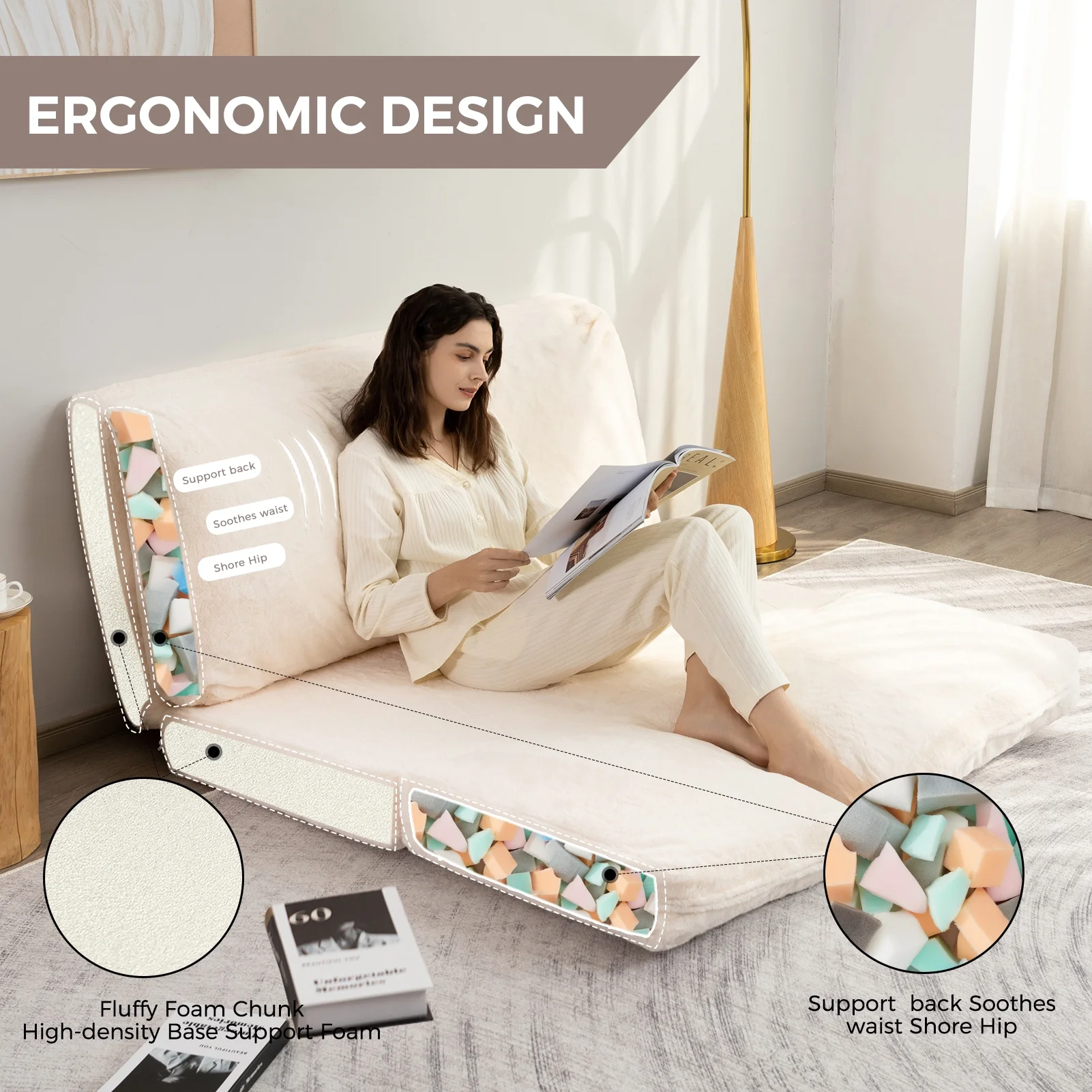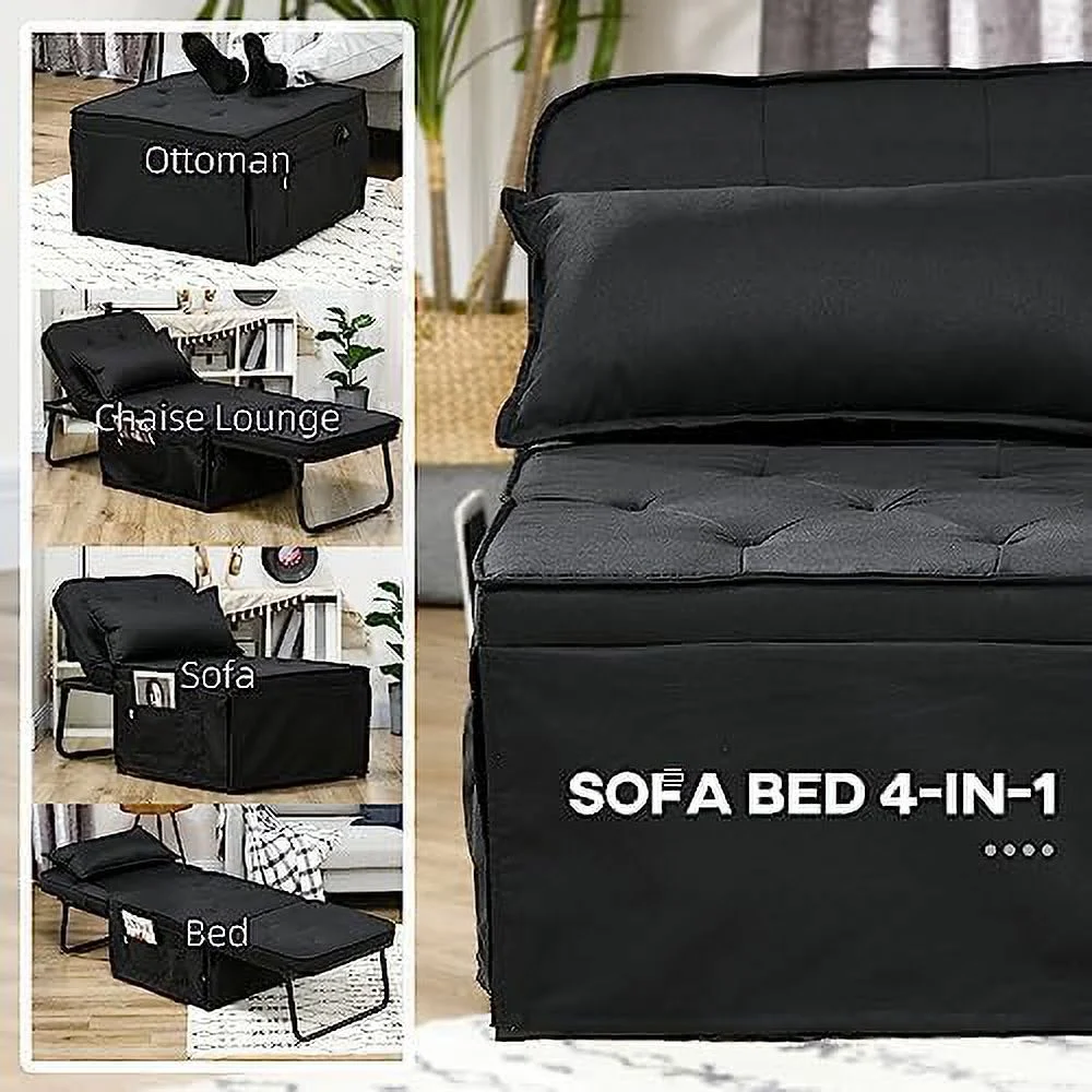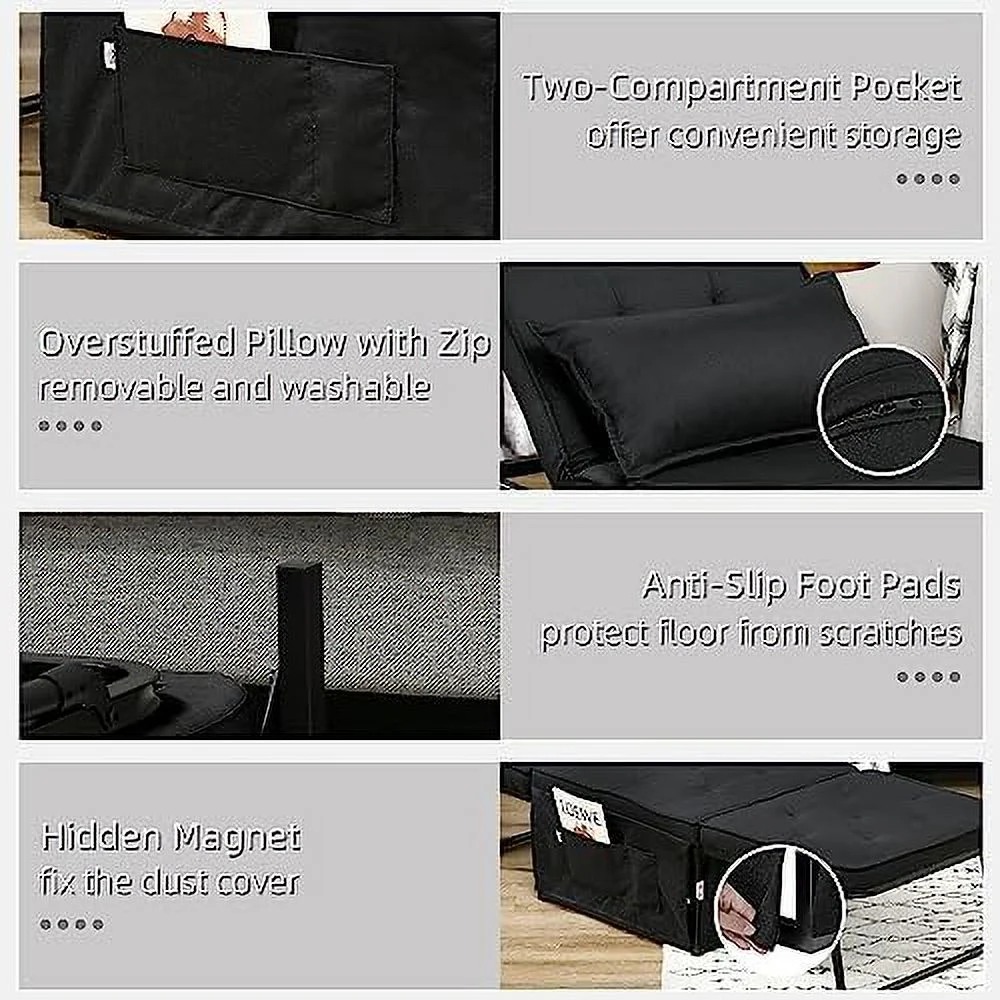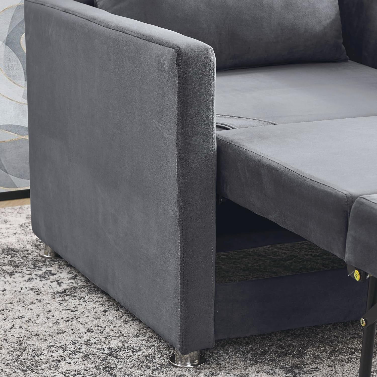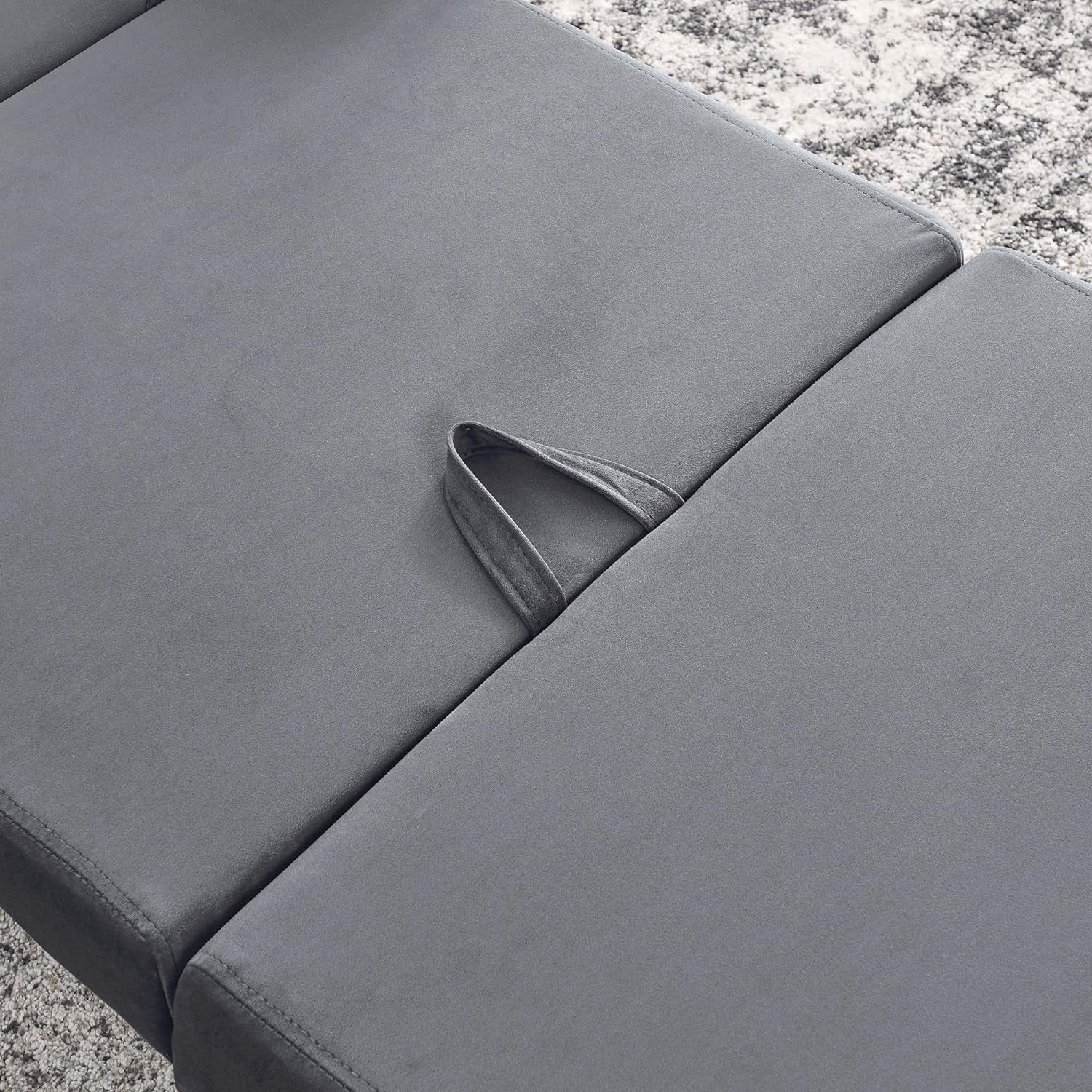 Covertible Sofa Bed With Pillow, Velvet Upholstered Sigle Sofa Chair For Livig Room, Office, Bedroom, Grey