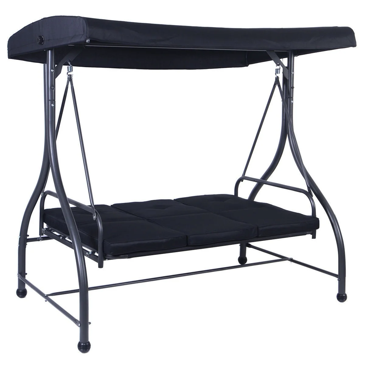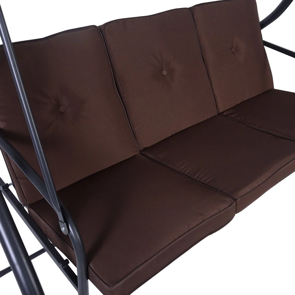 Barton Outdoor 3 Person Seating Swing Chair Adjustable Canopy Shade Bench Cushion Included, Brown