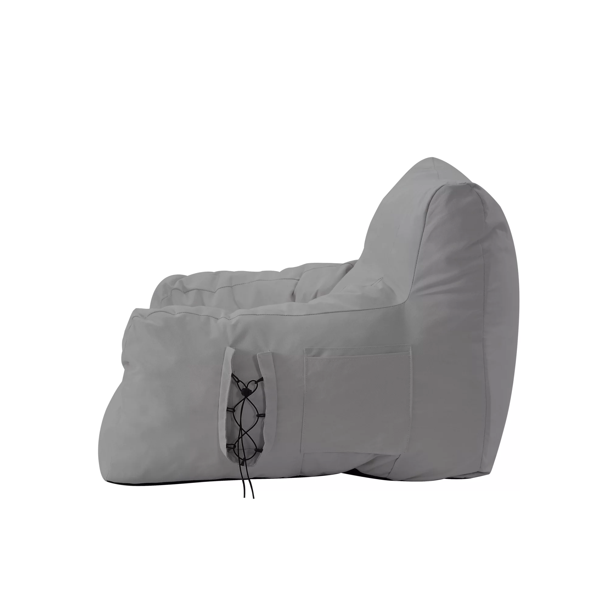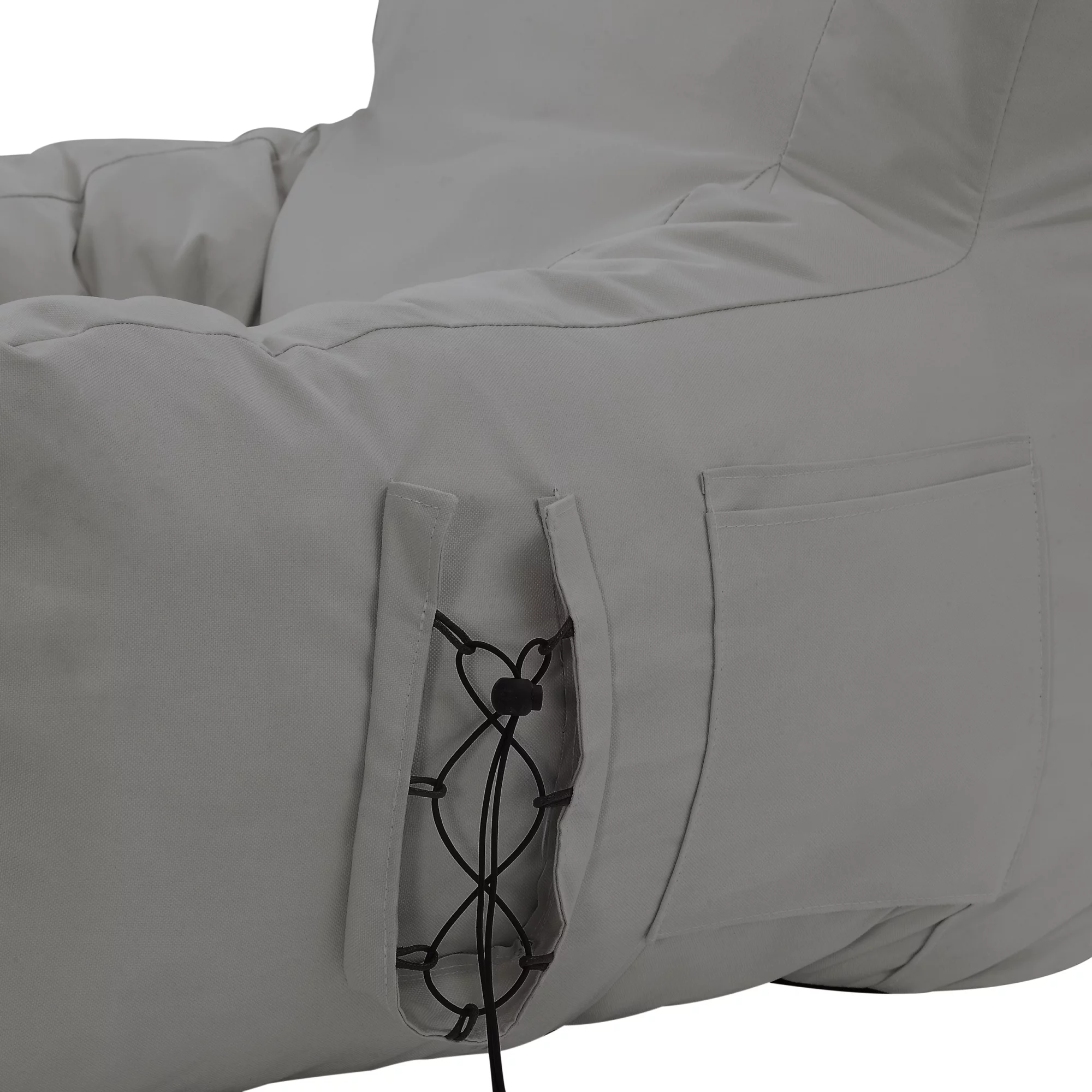Loungie Comfy Foam Bean Bag Chair Nylon Indoor/ Outdoor Self Expanding Water Resistant Light Gray