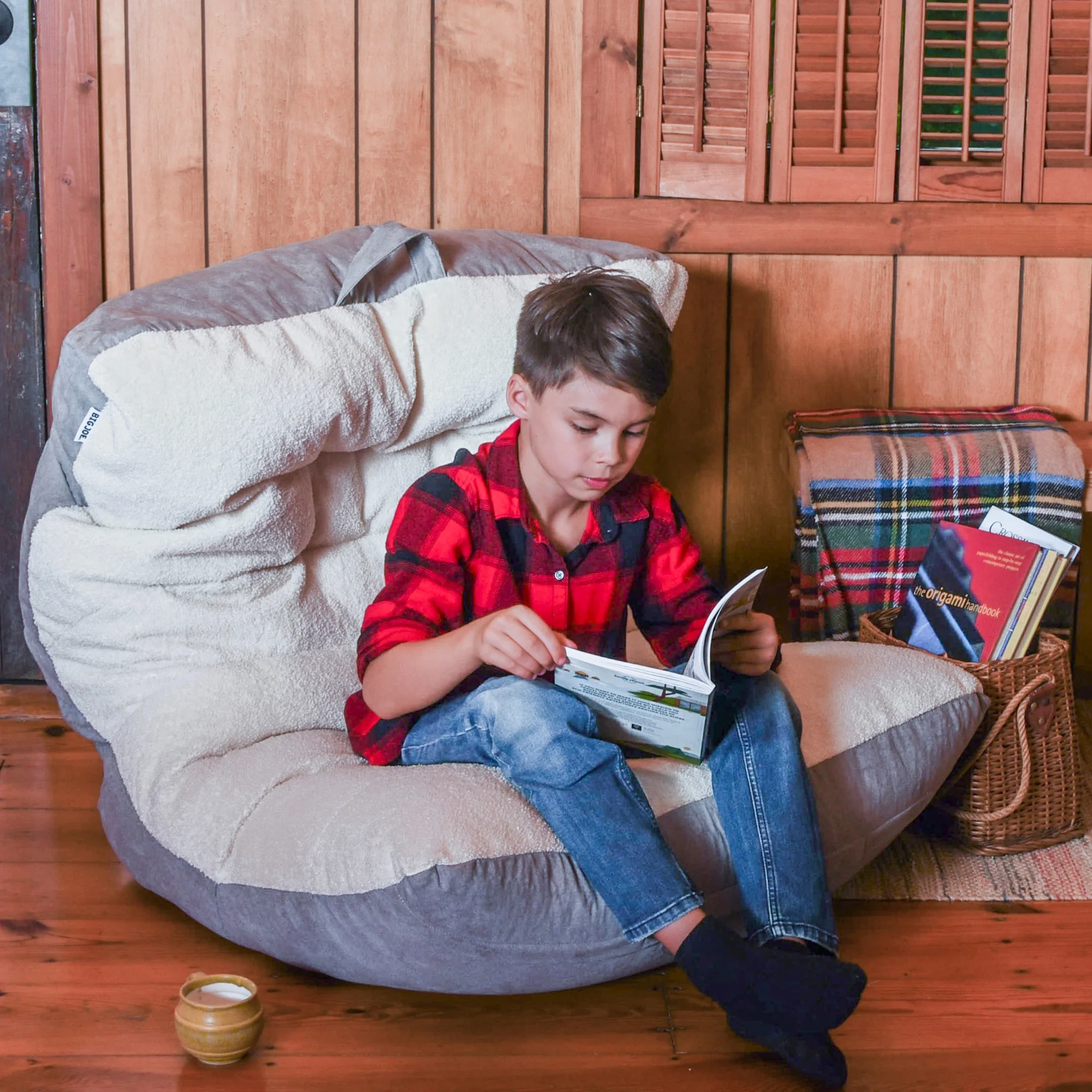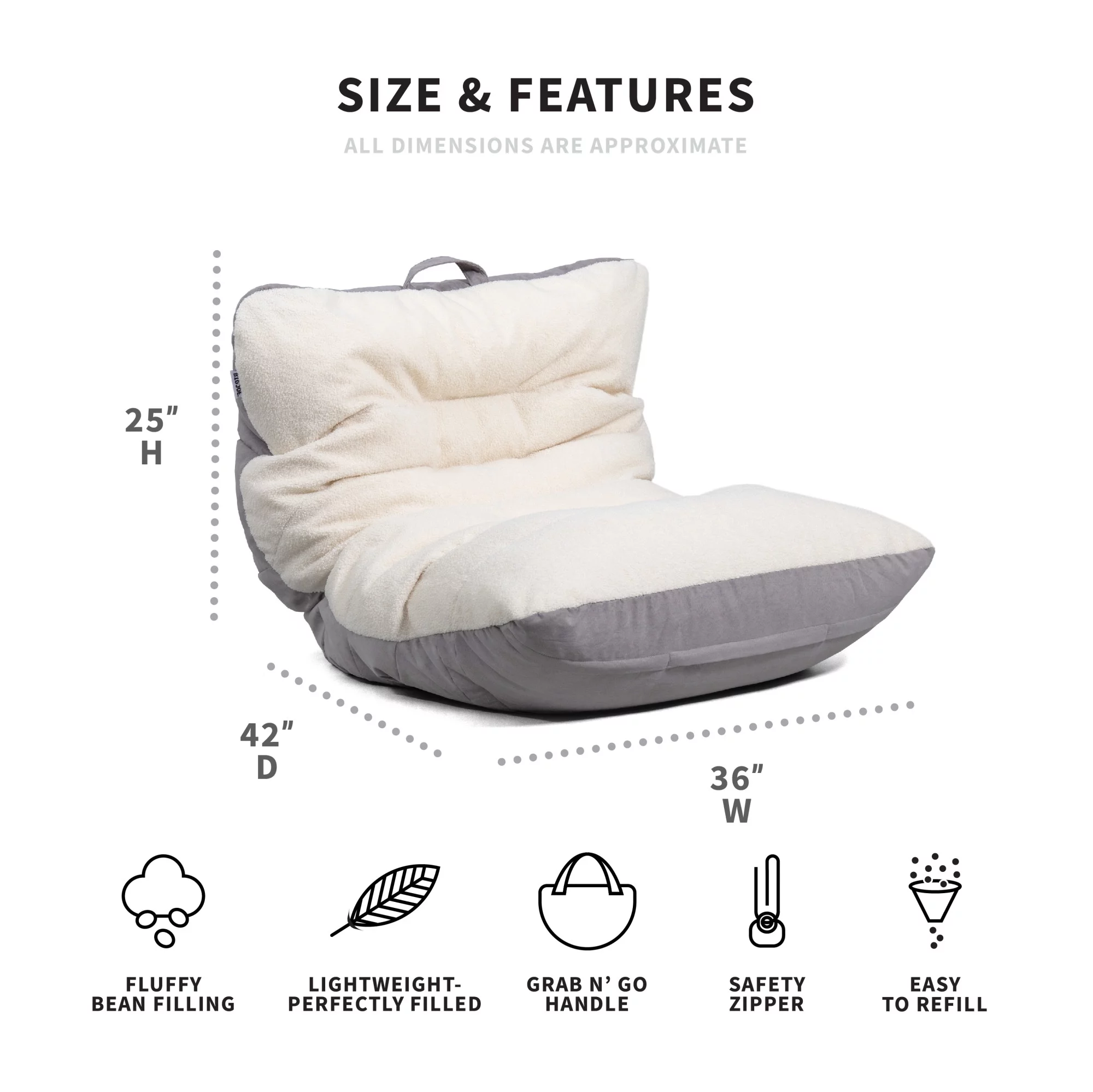 Big Joe Roma Bean Bag Chair, Oat Sherpa and Graphite, Vegan Suede, 3 feet