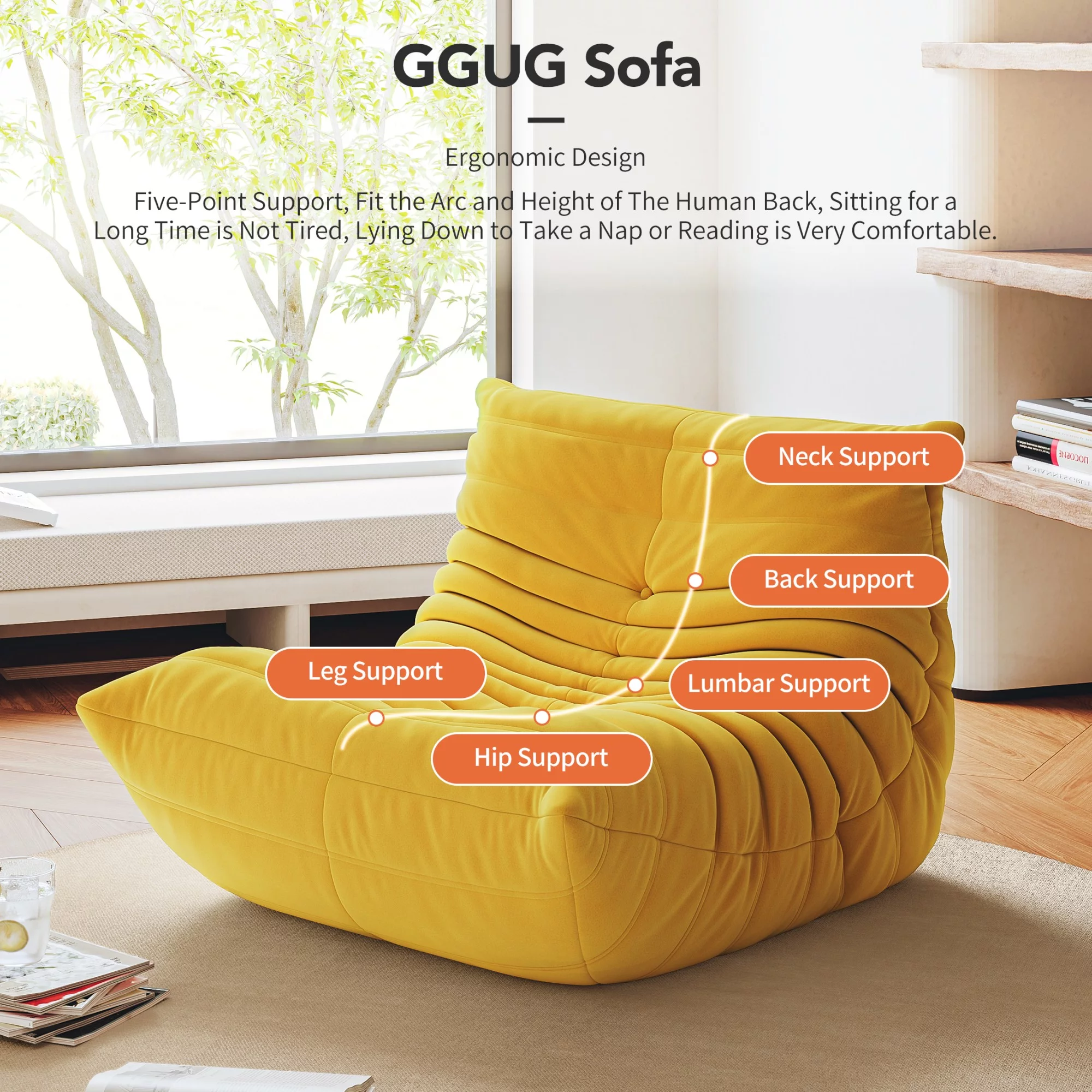 GDF Studio Calef Modern Velveteen 2 Seater Oversized Bean Bag Chair with Armrests, Royal Blue