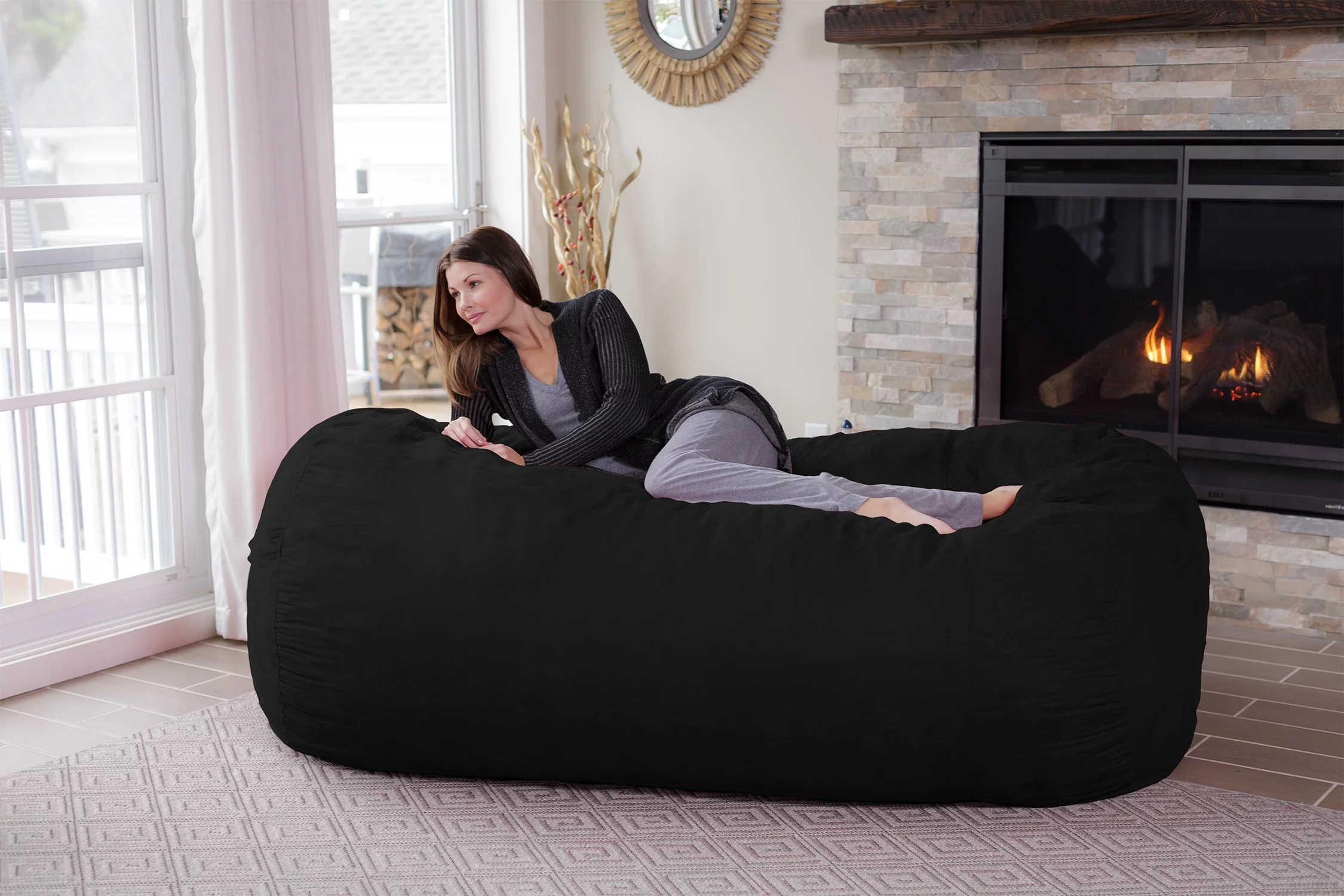 Chill Sack Bean Bag Chair, Memory Foam Lounger with Microsuede Cover, Kids, Adults, 7.5 ft, Black