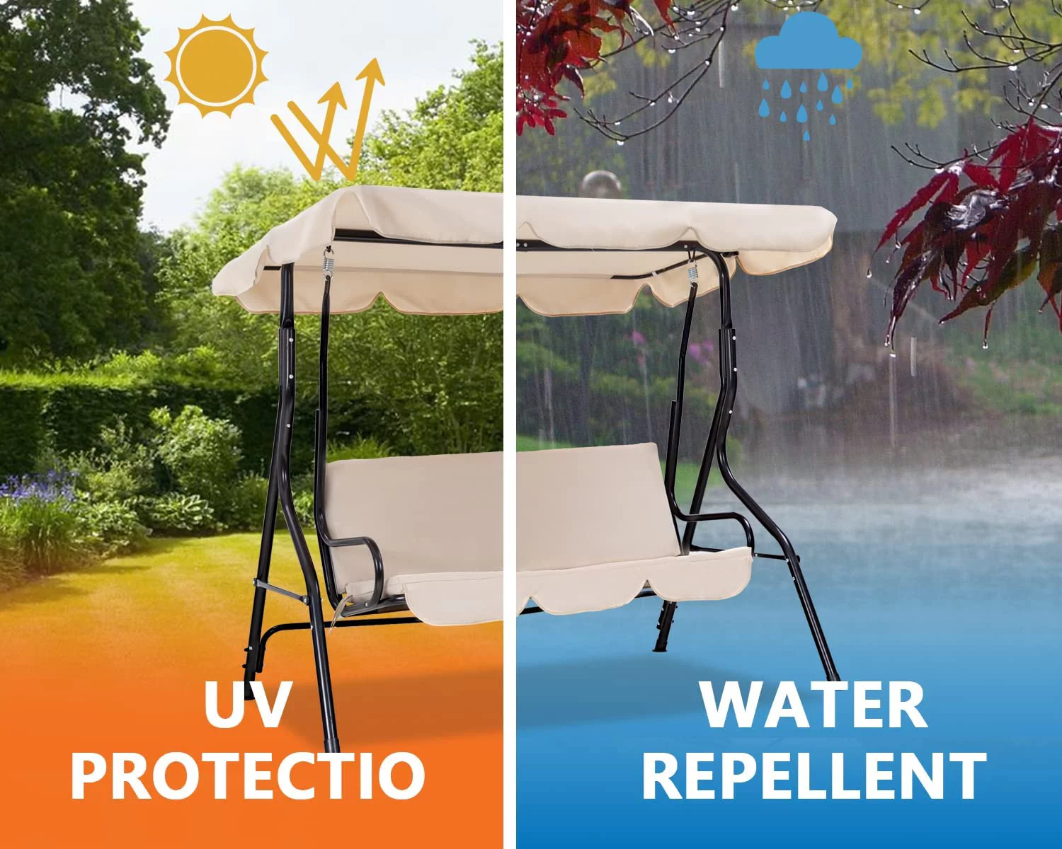FDW Canopy Backyard Outdoor Swing Chair Removable Cushion Adjustable Recline Comfort Armrest Beige