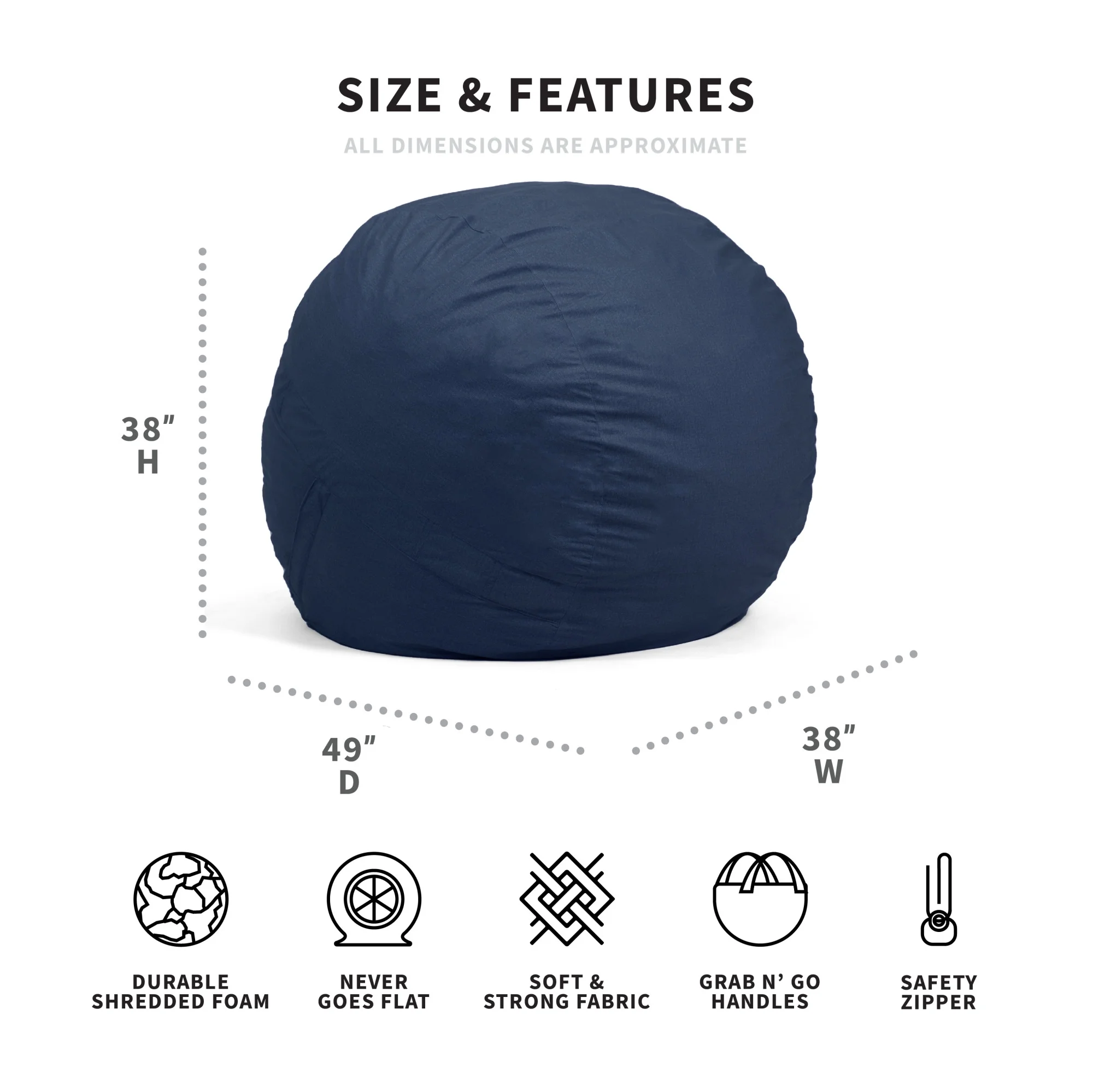Big Joe Fuf Large Foam Filled Bean Bag Chair with Removable Cover, Cobalt Lenox, Durable Woven Polyester, 4 feet Big