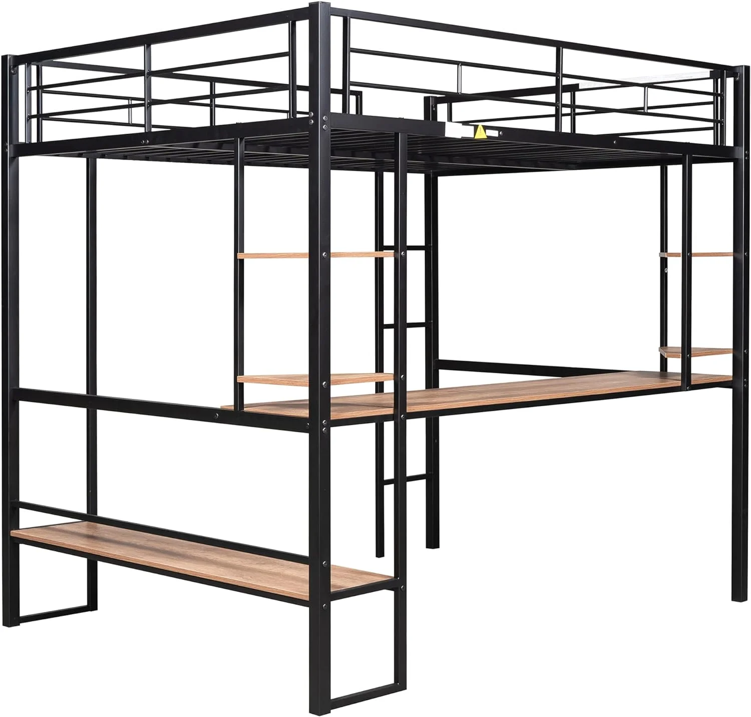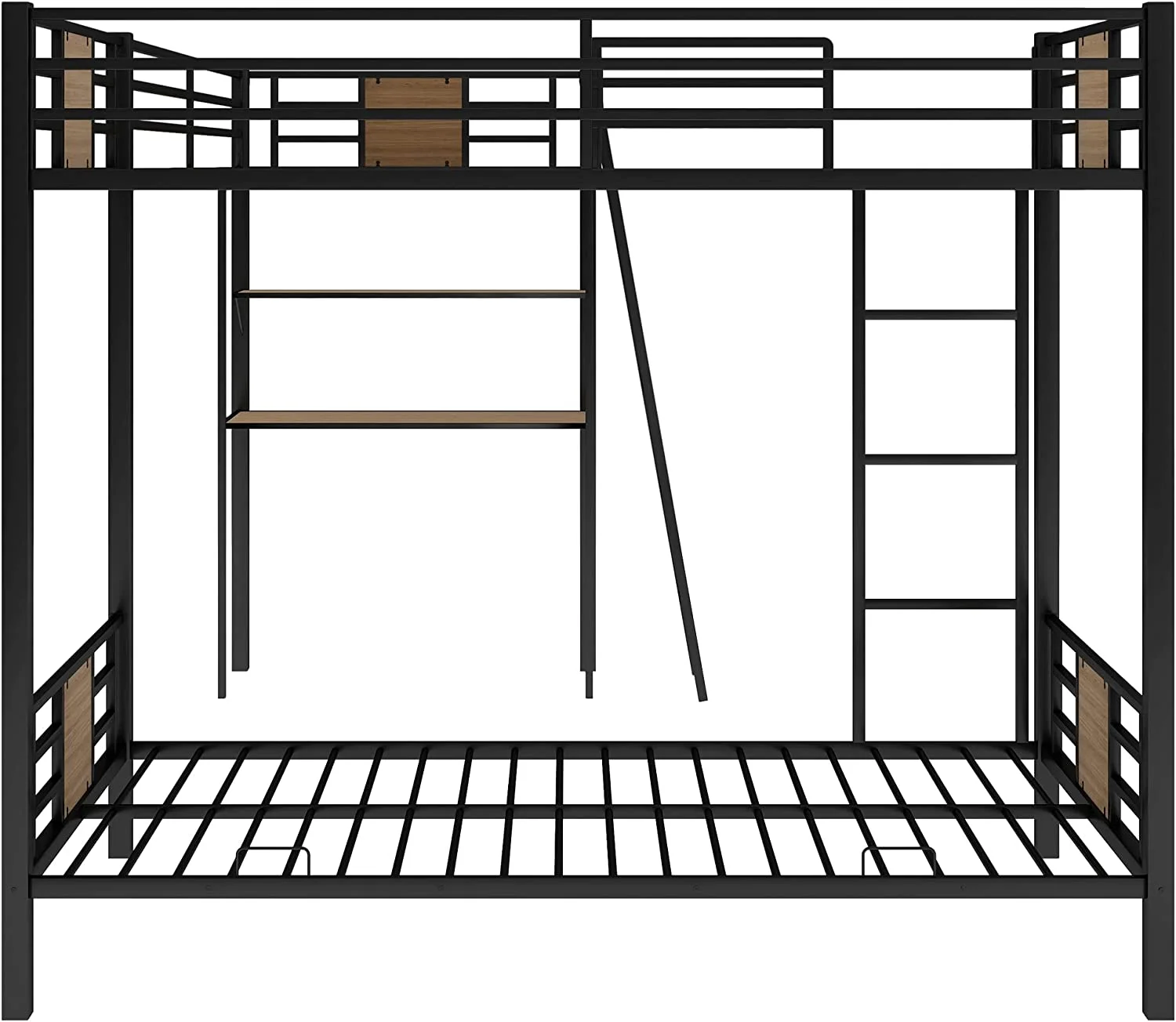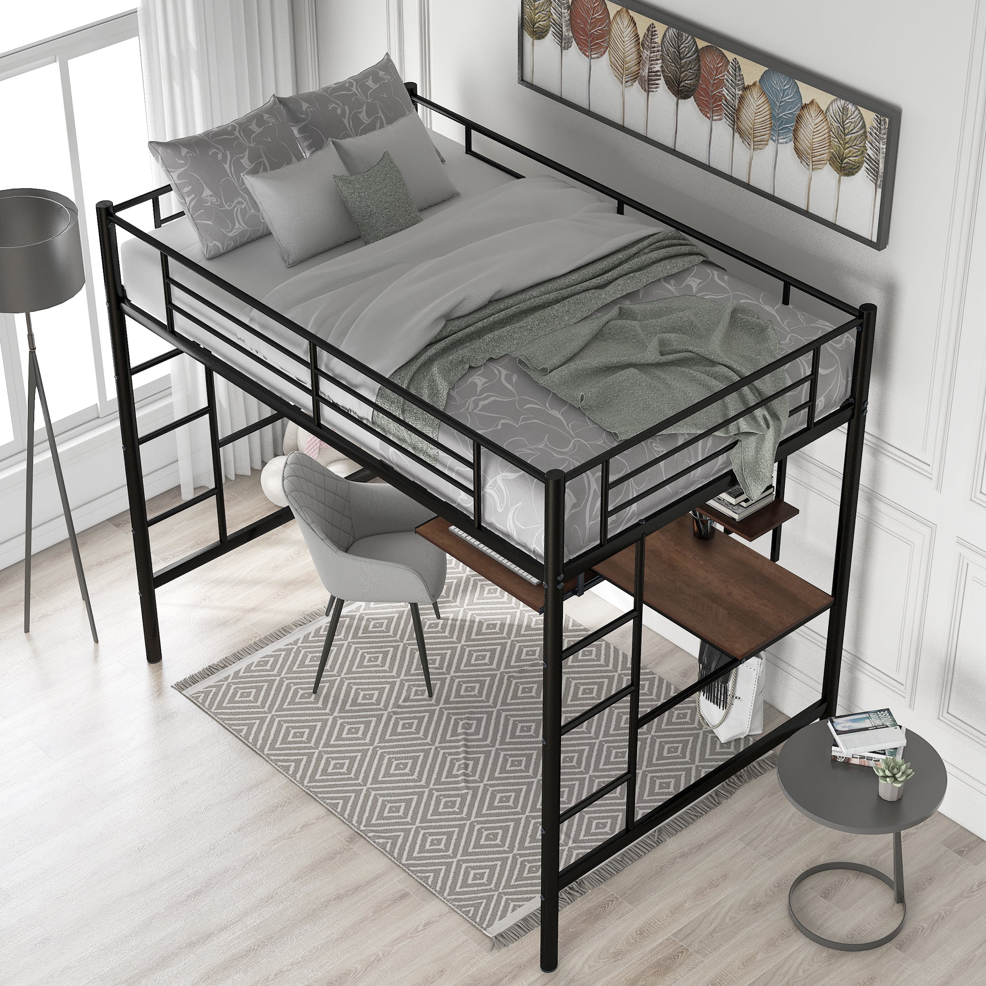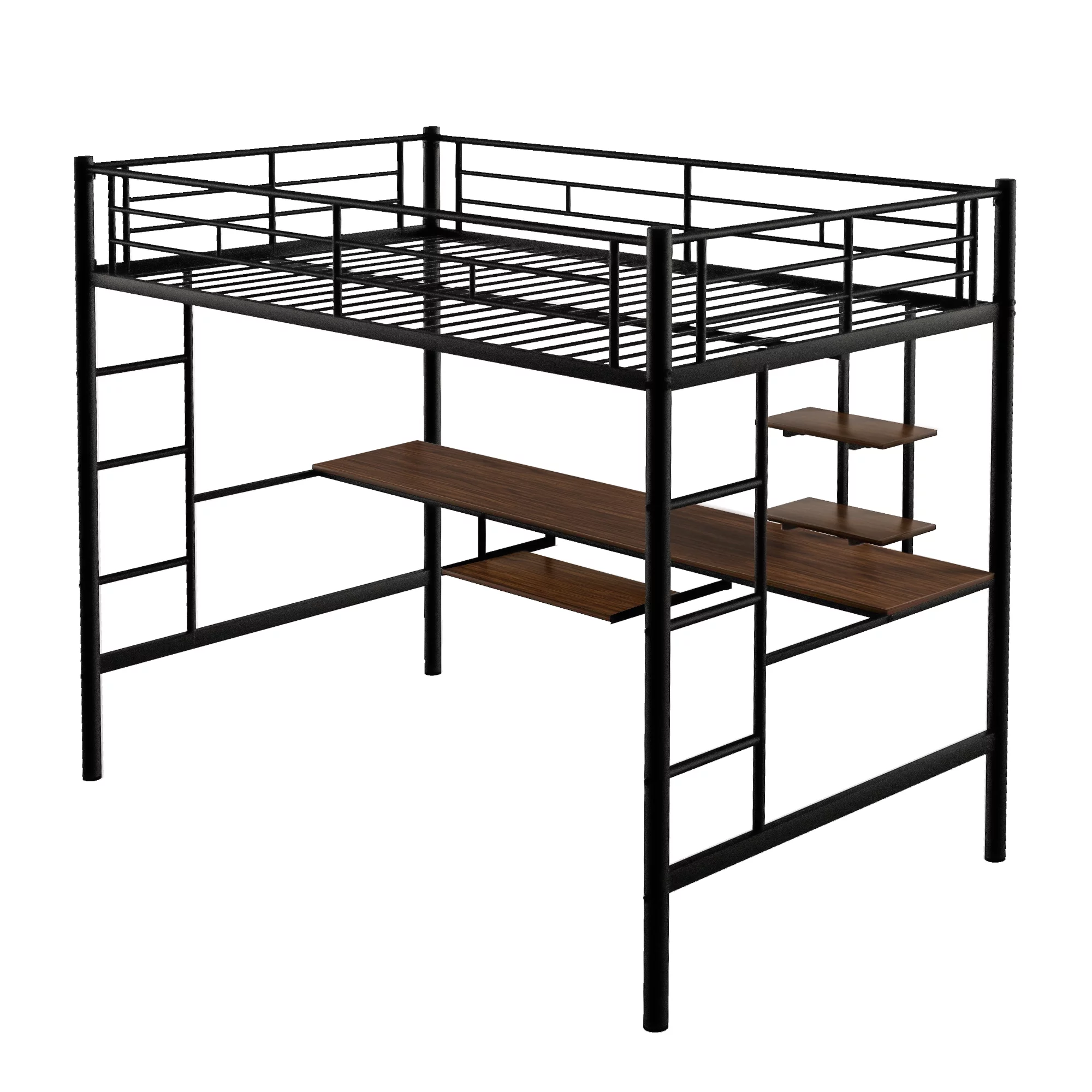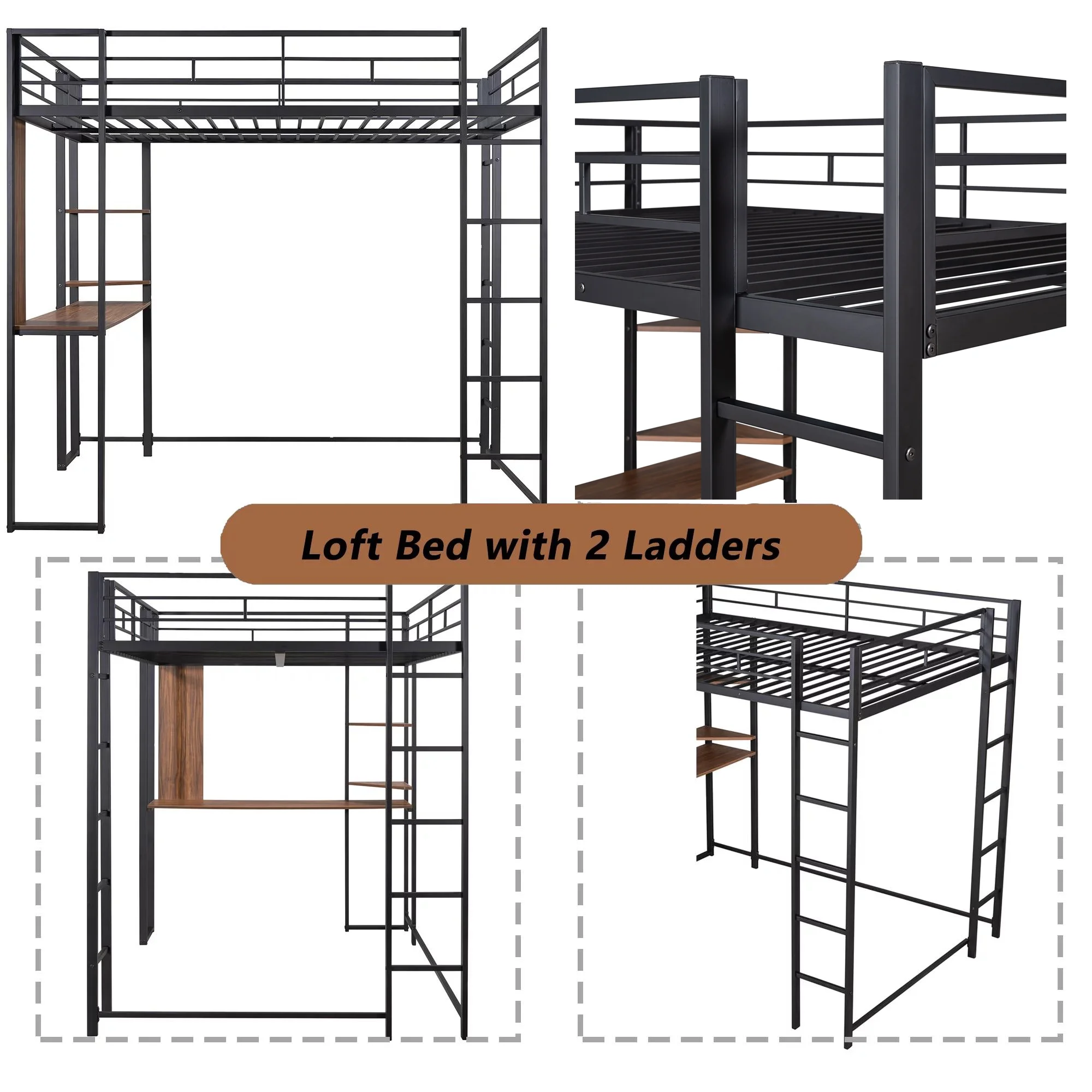 Gewnee Full Size Metal Loft Bed with Desk and Two Ladders for Kids and Teens,Black