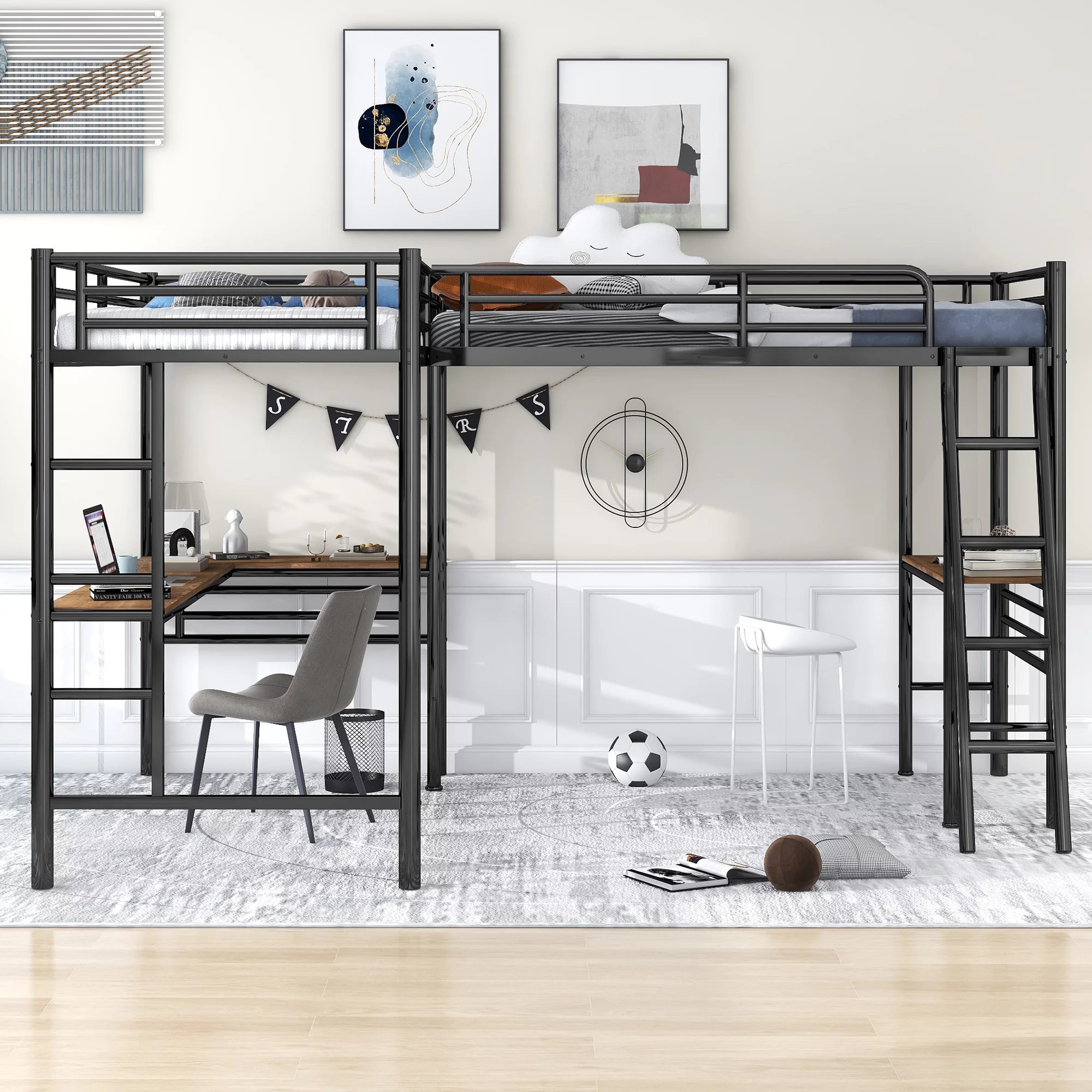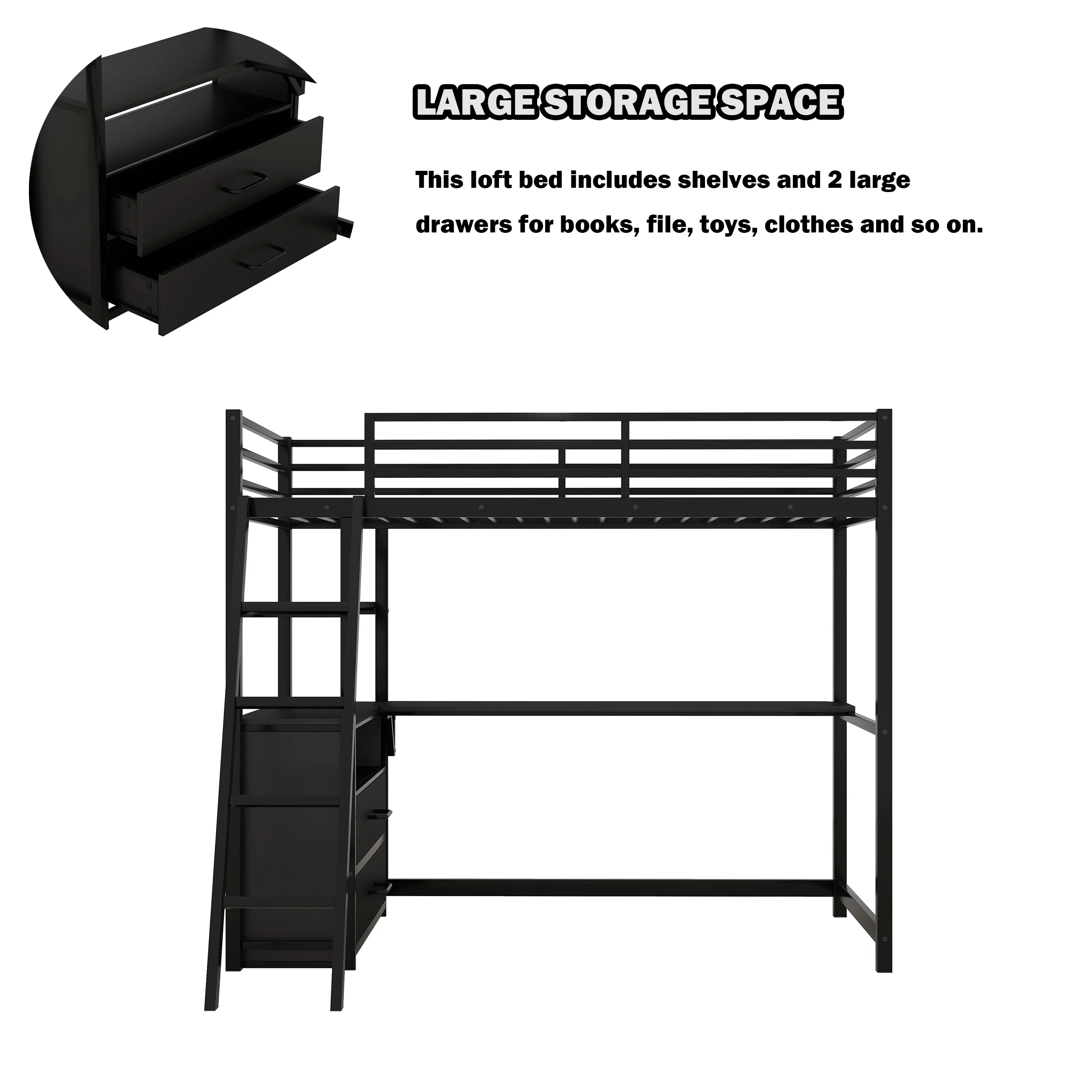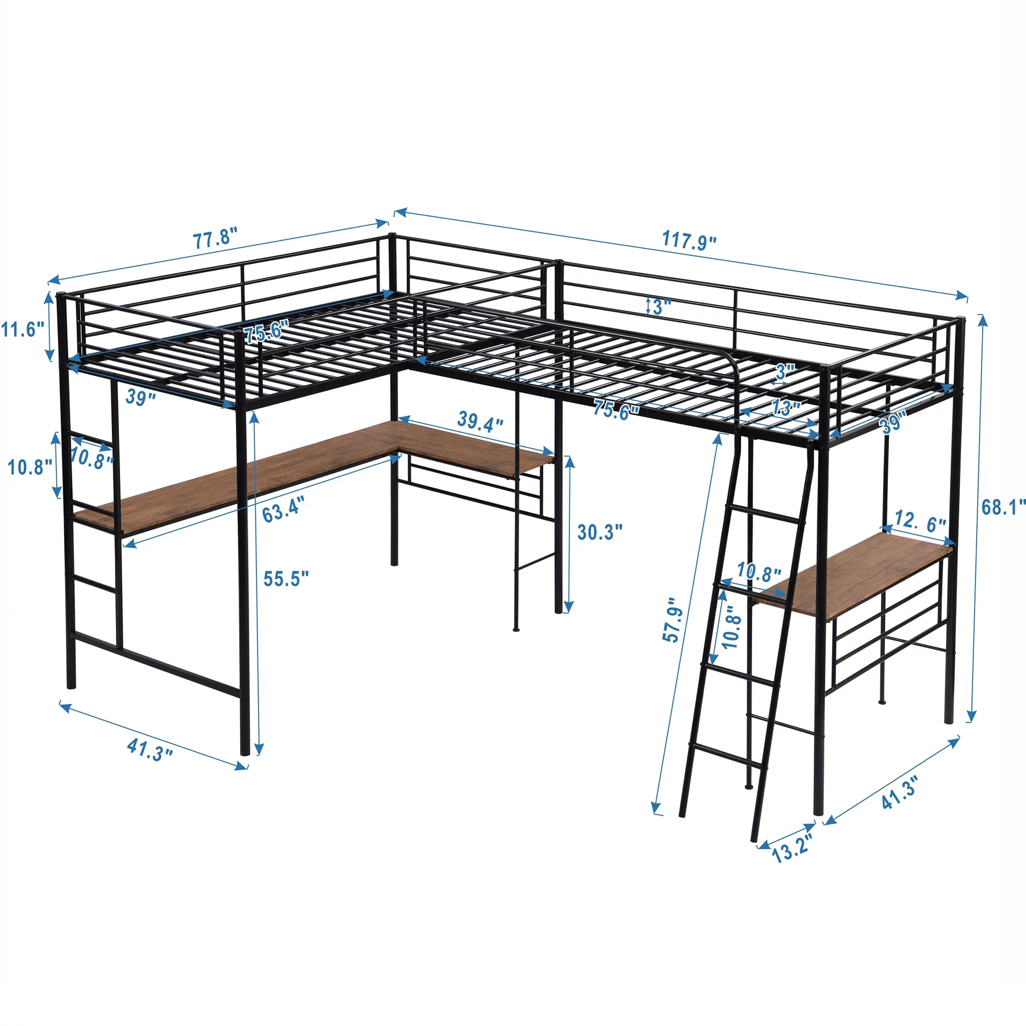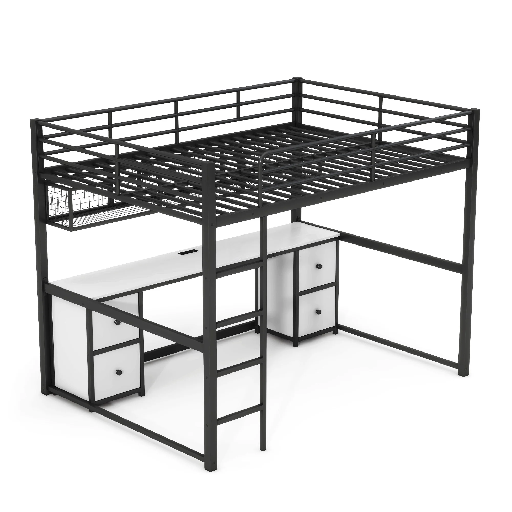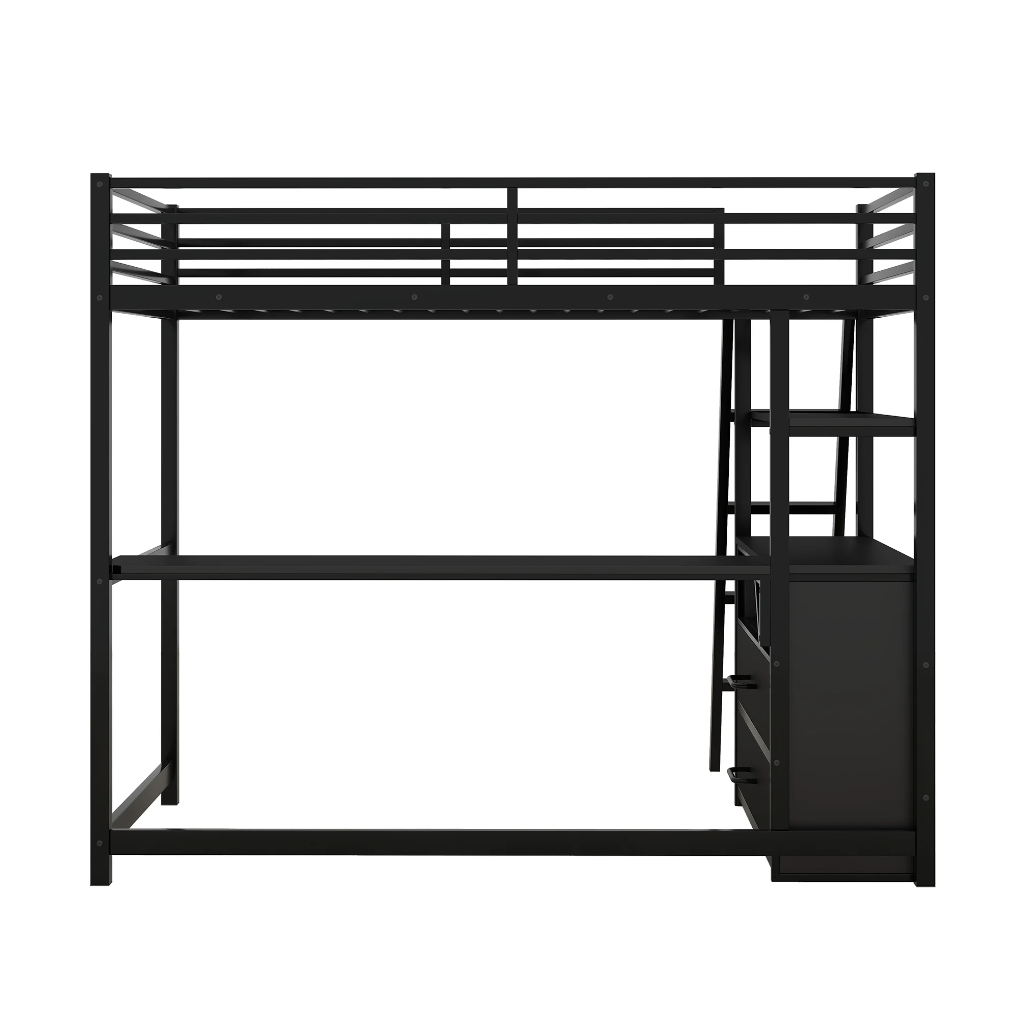 Gewnee Full Size Metal Loft Bed with Desk and Two Ladders for Kids and Teens,Black