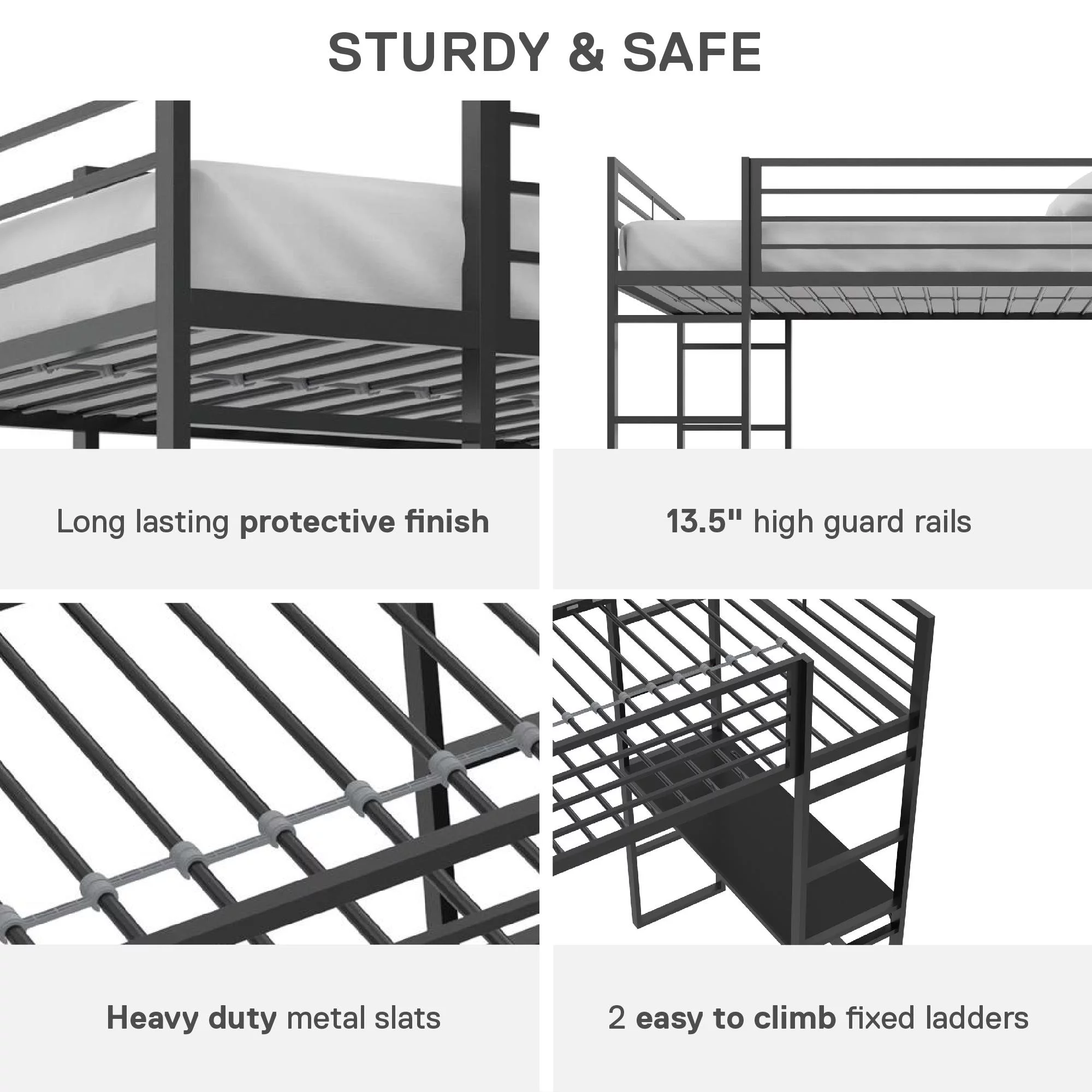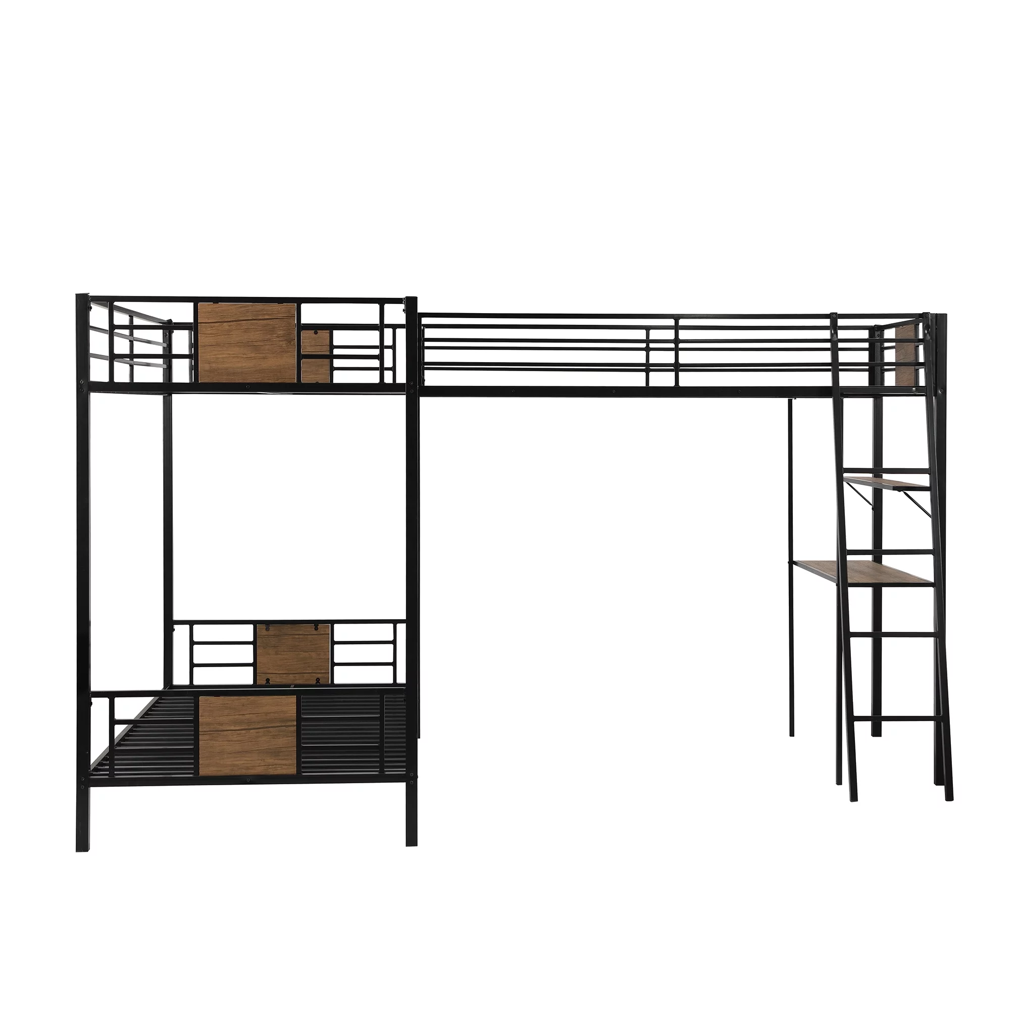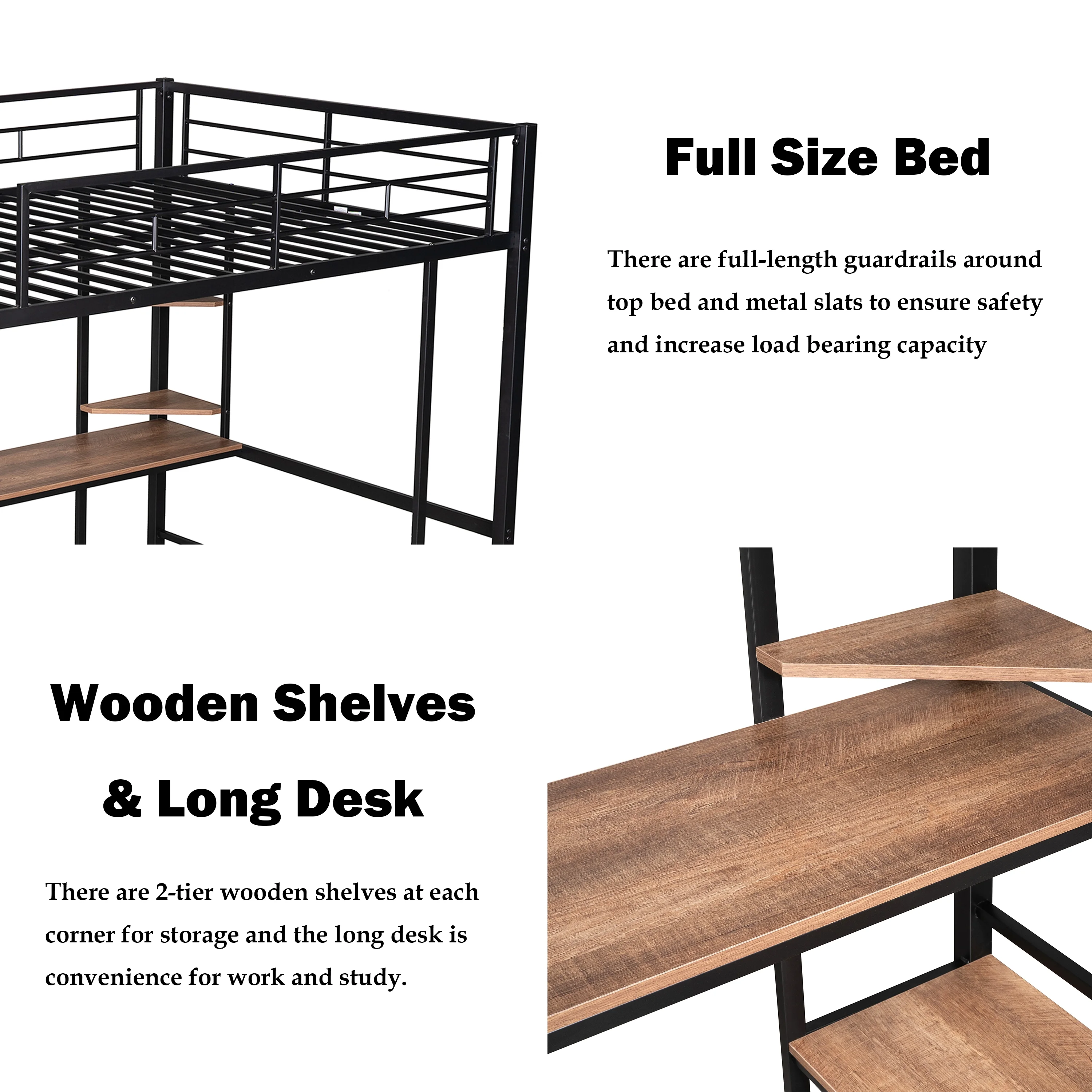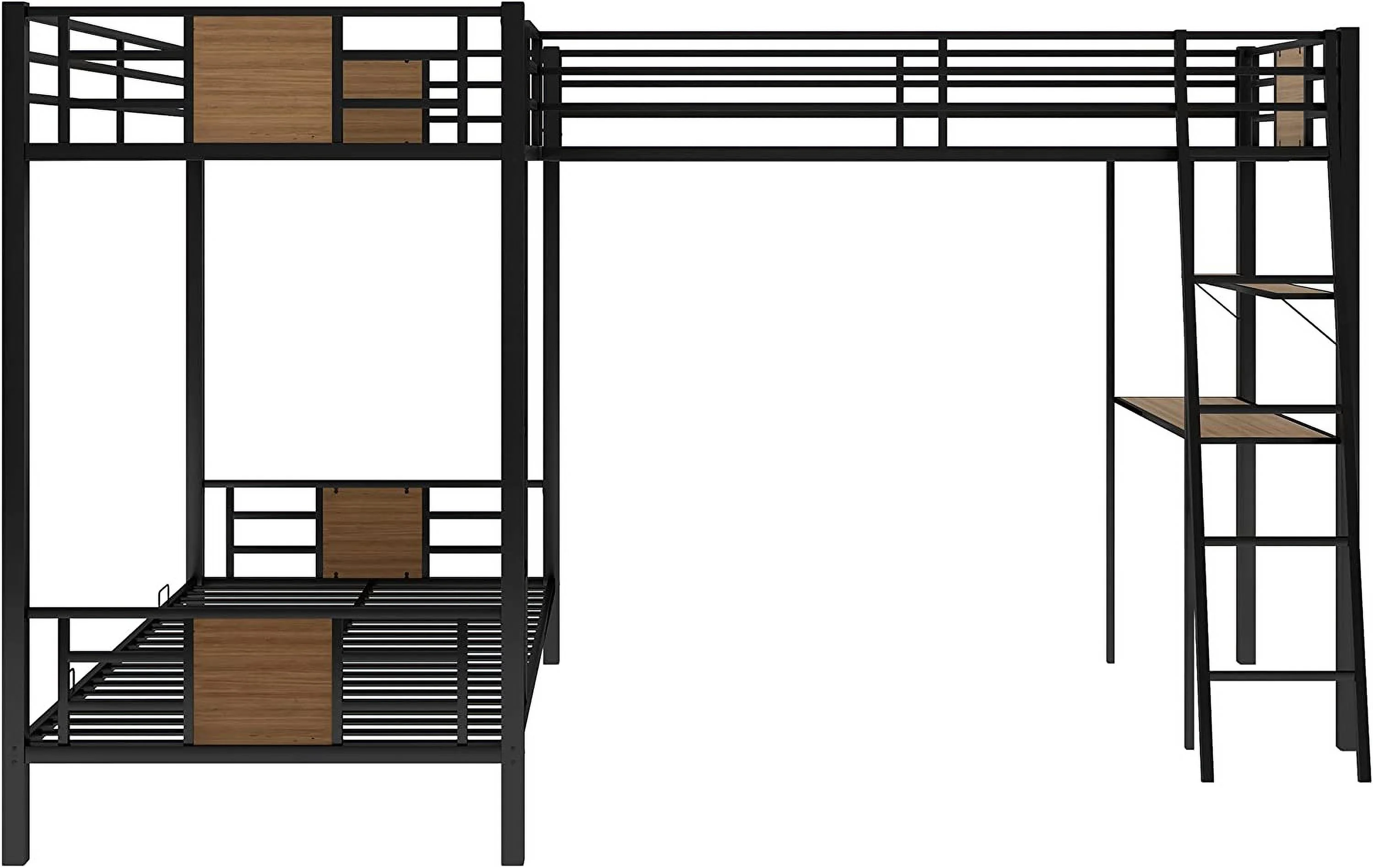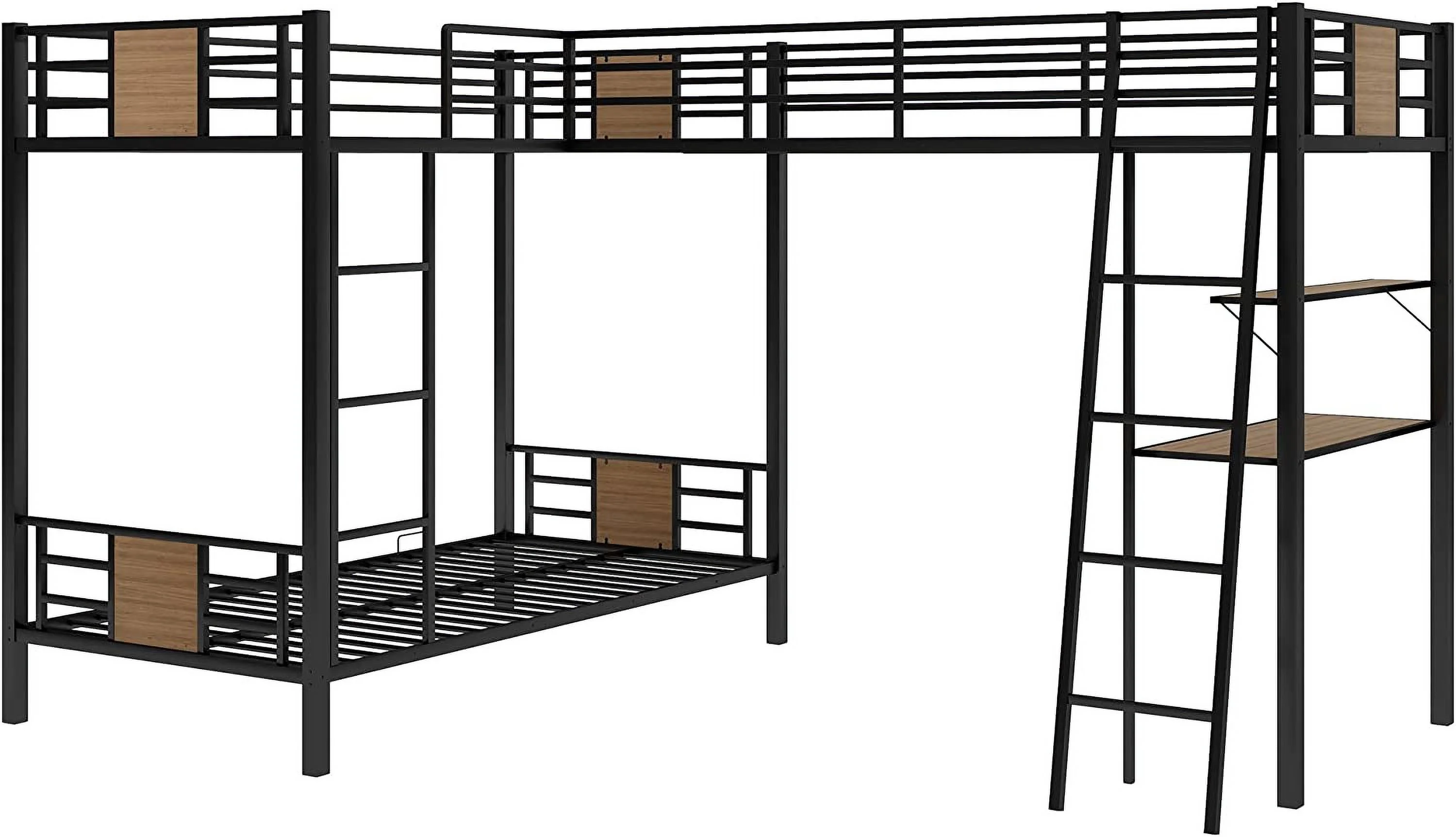 Gewnee Full Size Metal Loft Bed with Desk and Two Ladders for Kids and Teens,Black