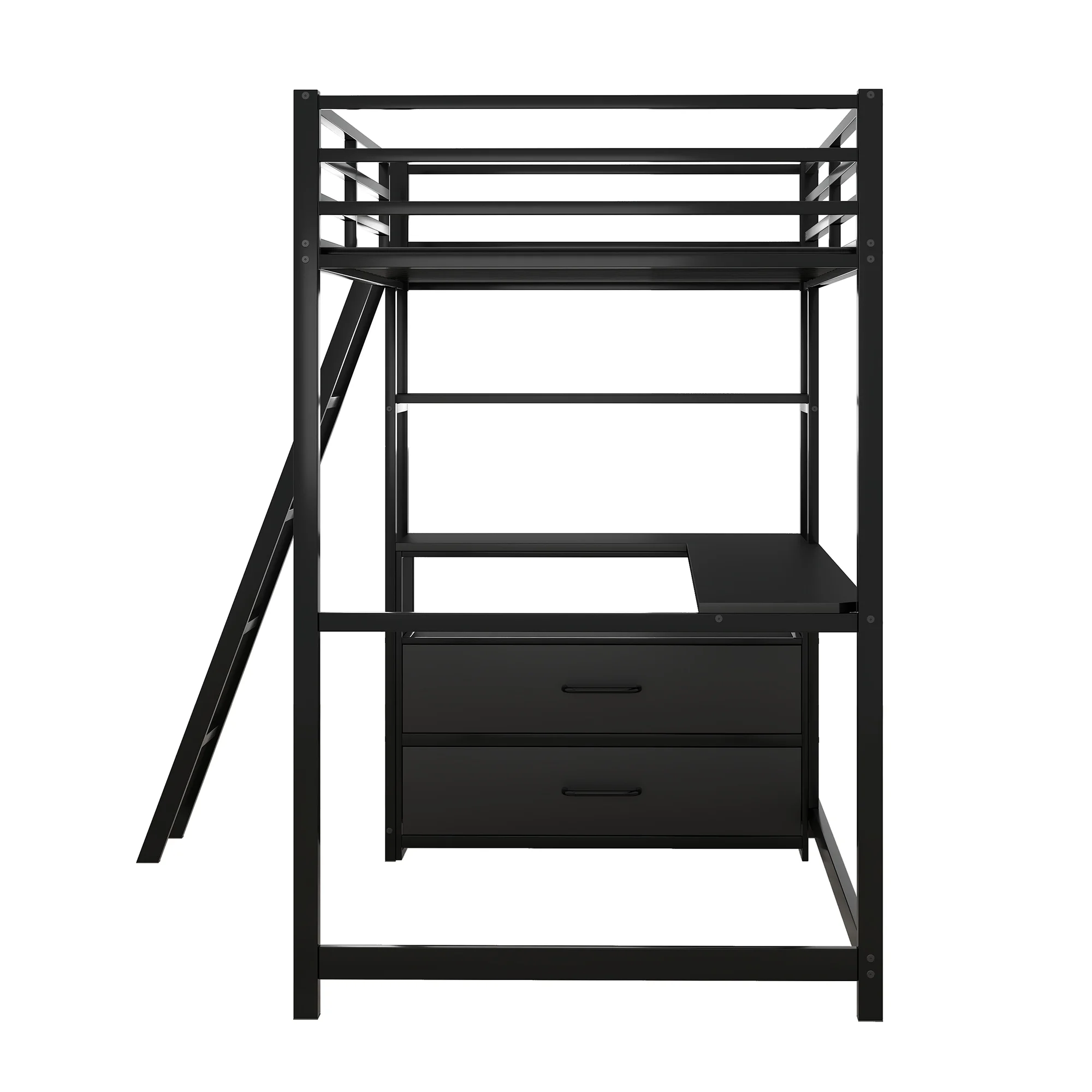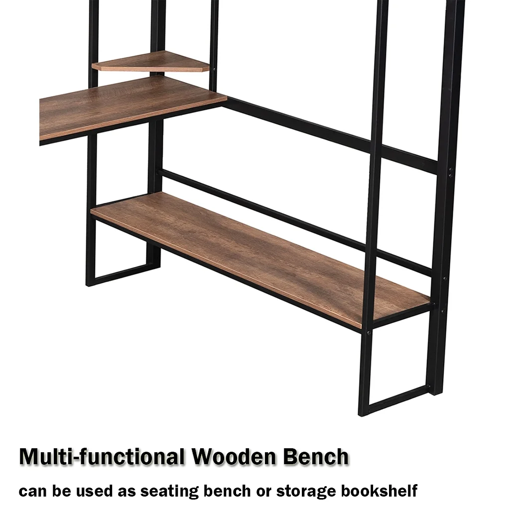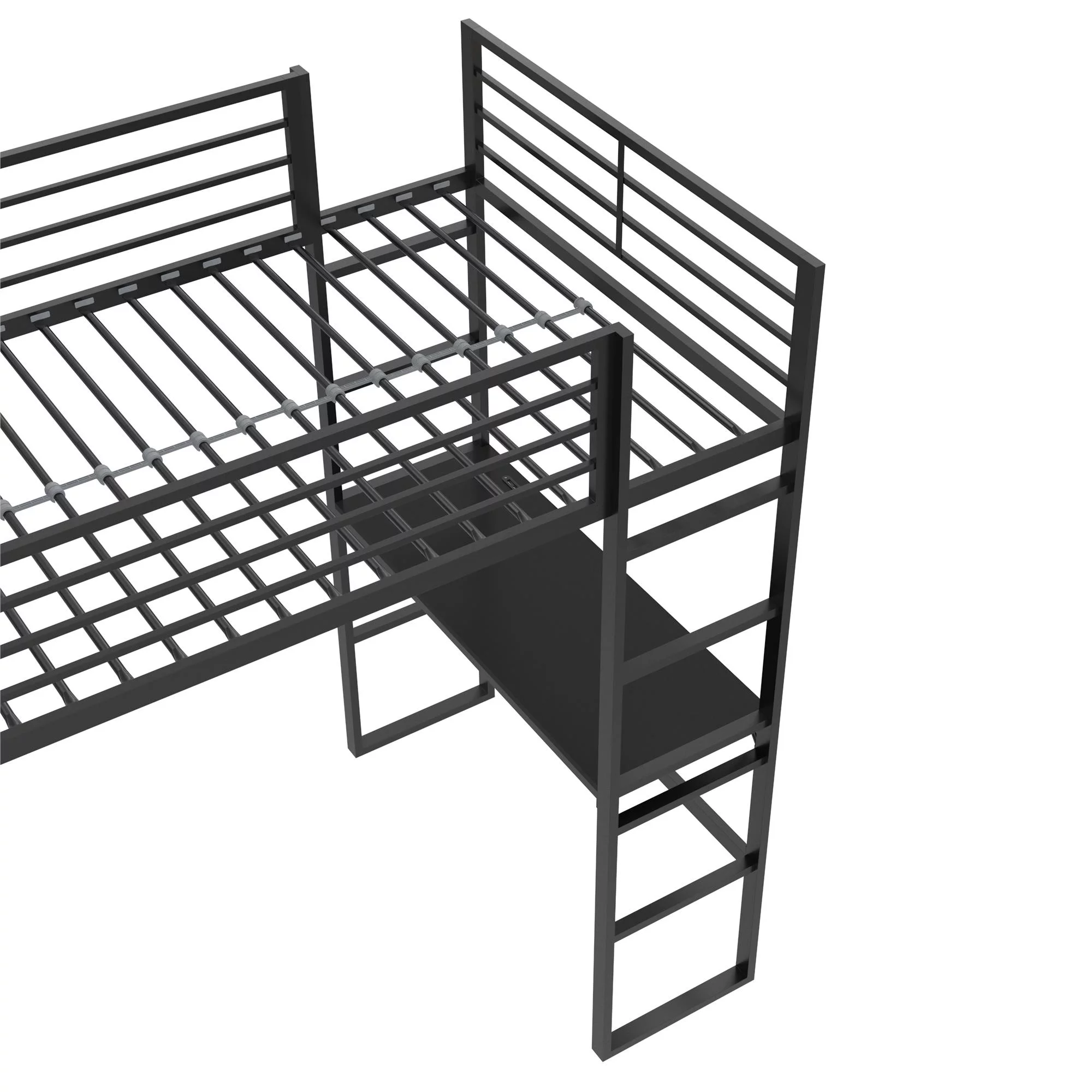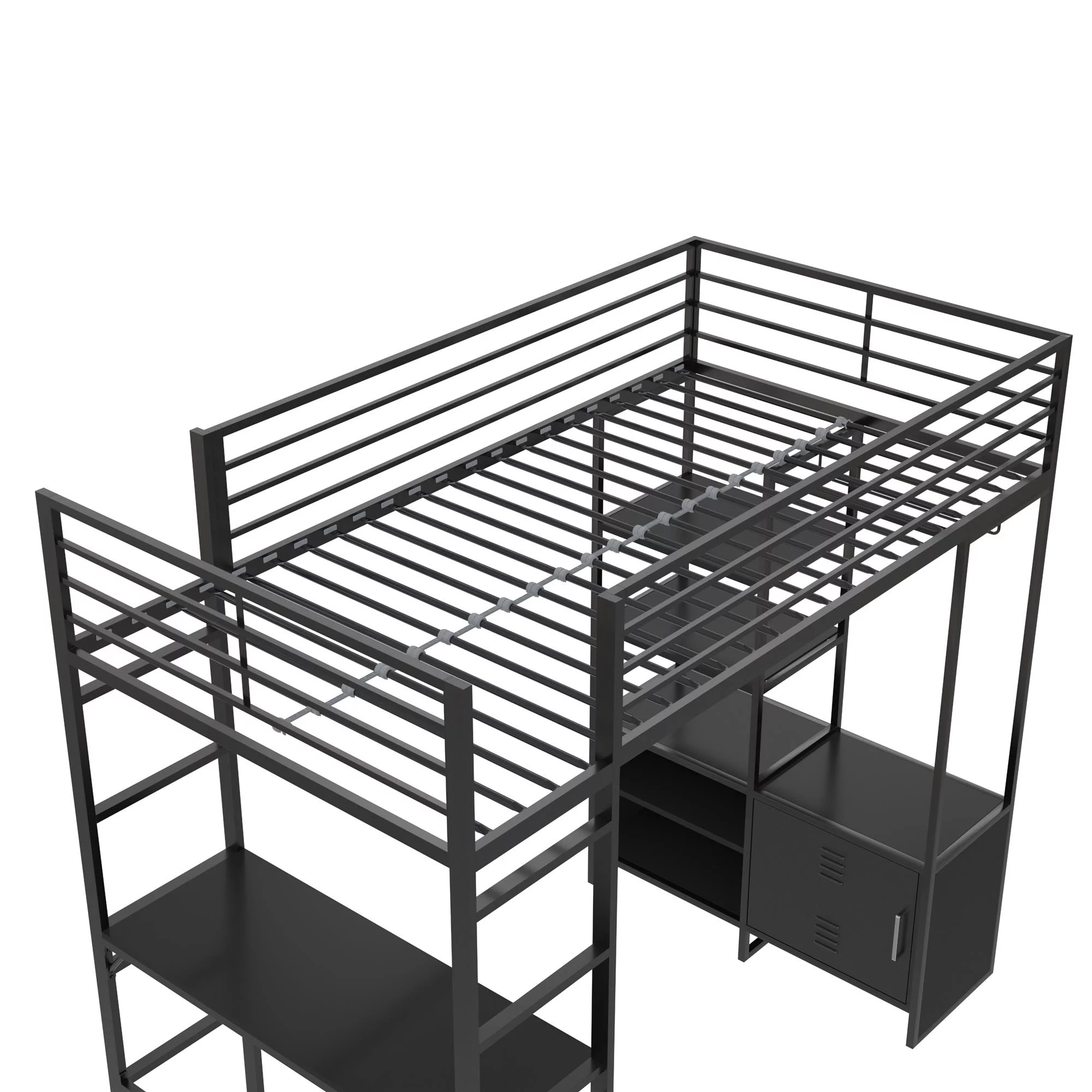Gewnee Twin Size Metal Loft Bed with Desk and Shelving for Kids,Teens,Black