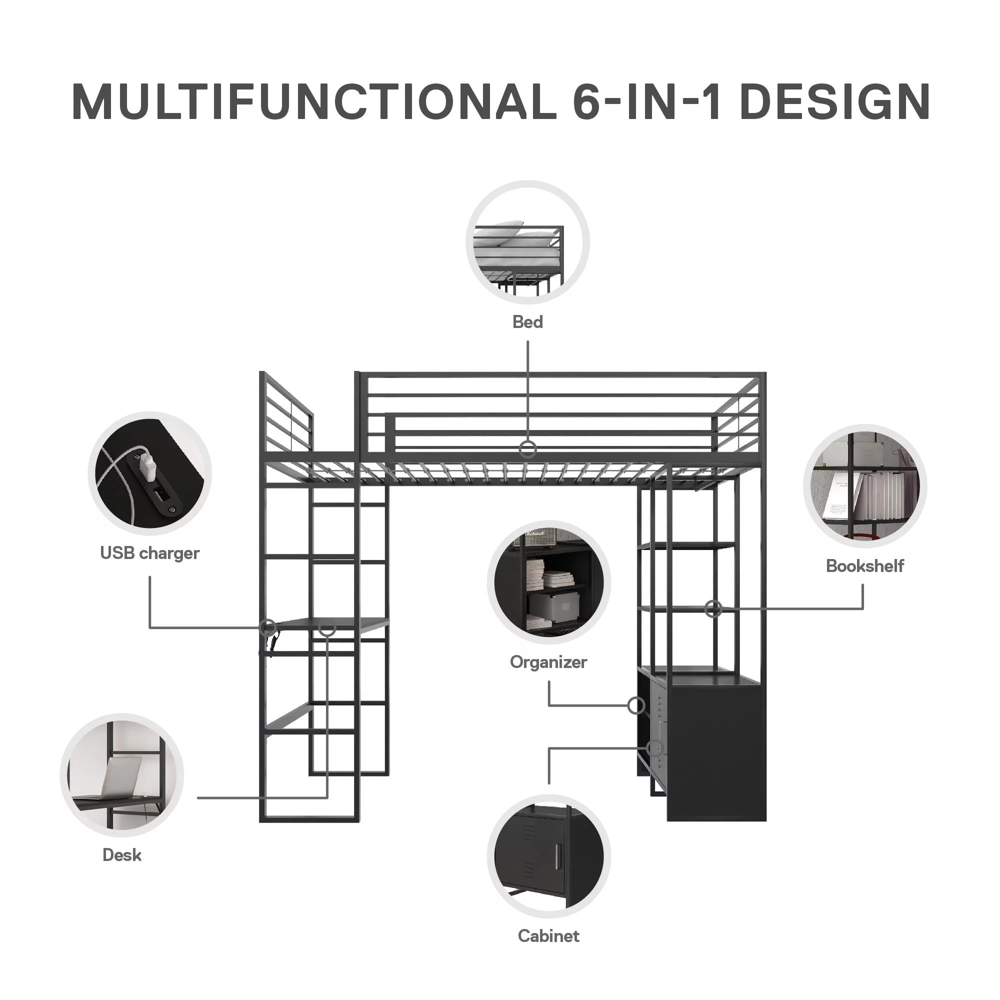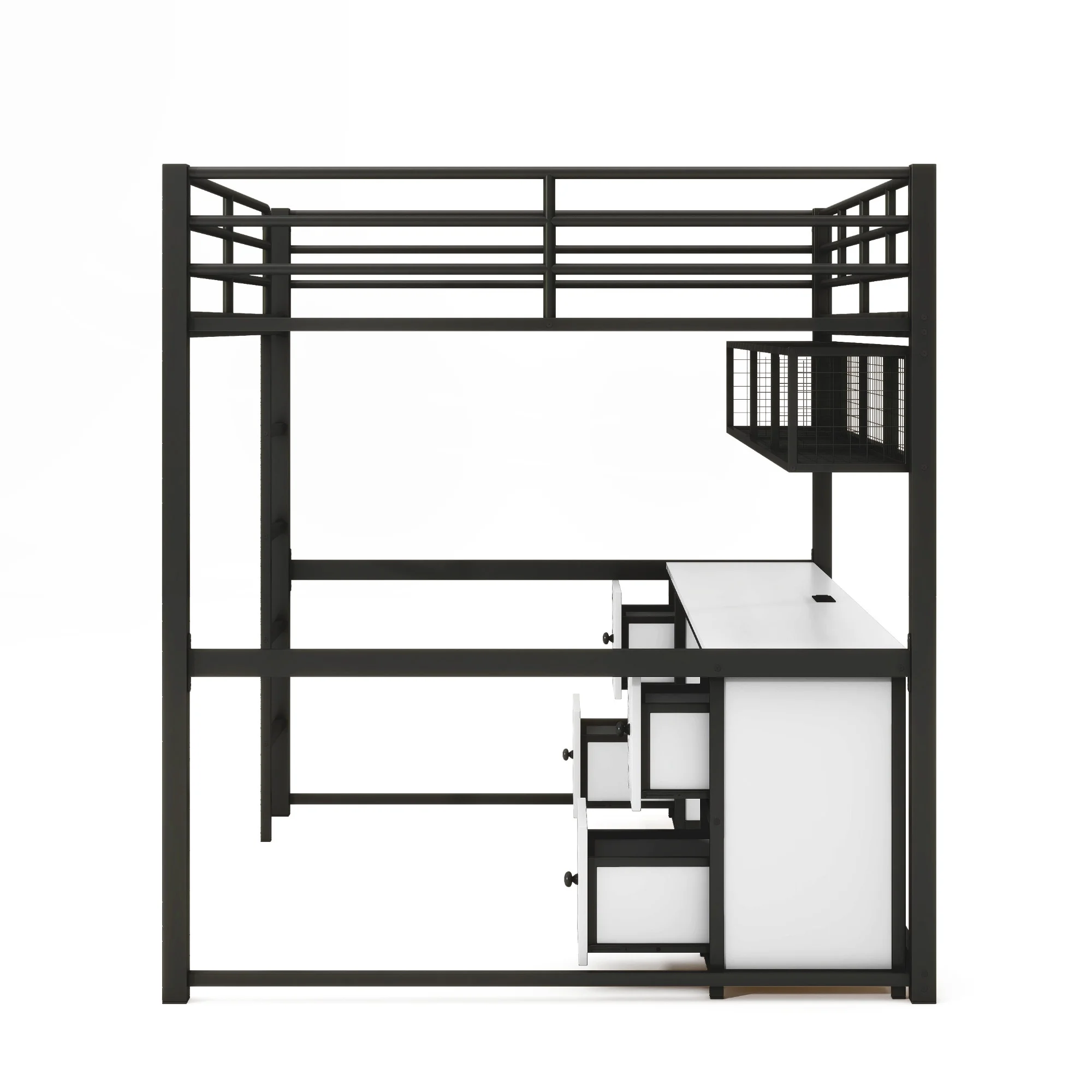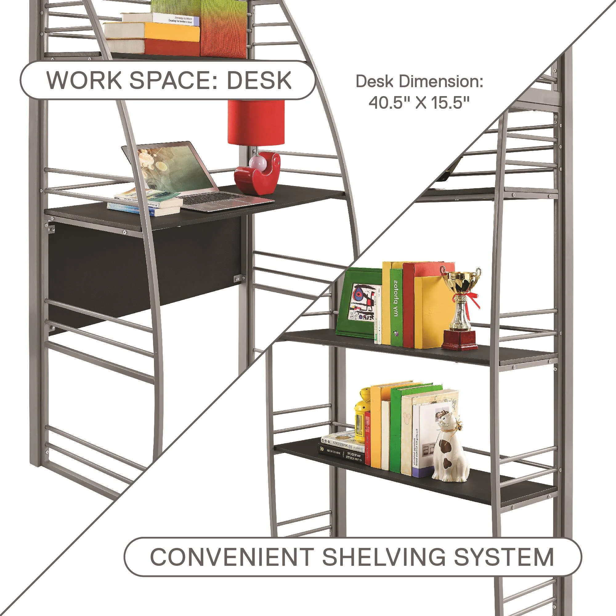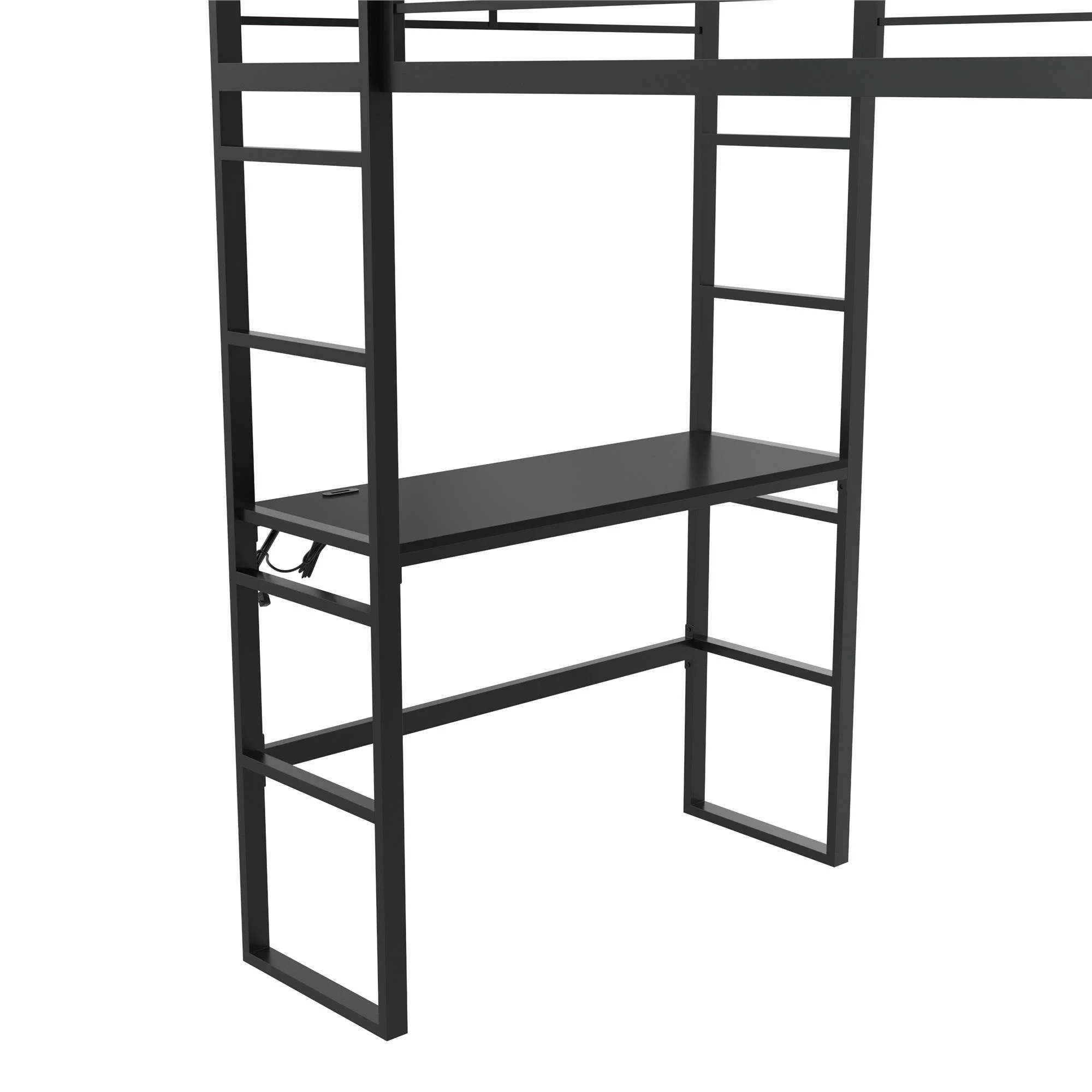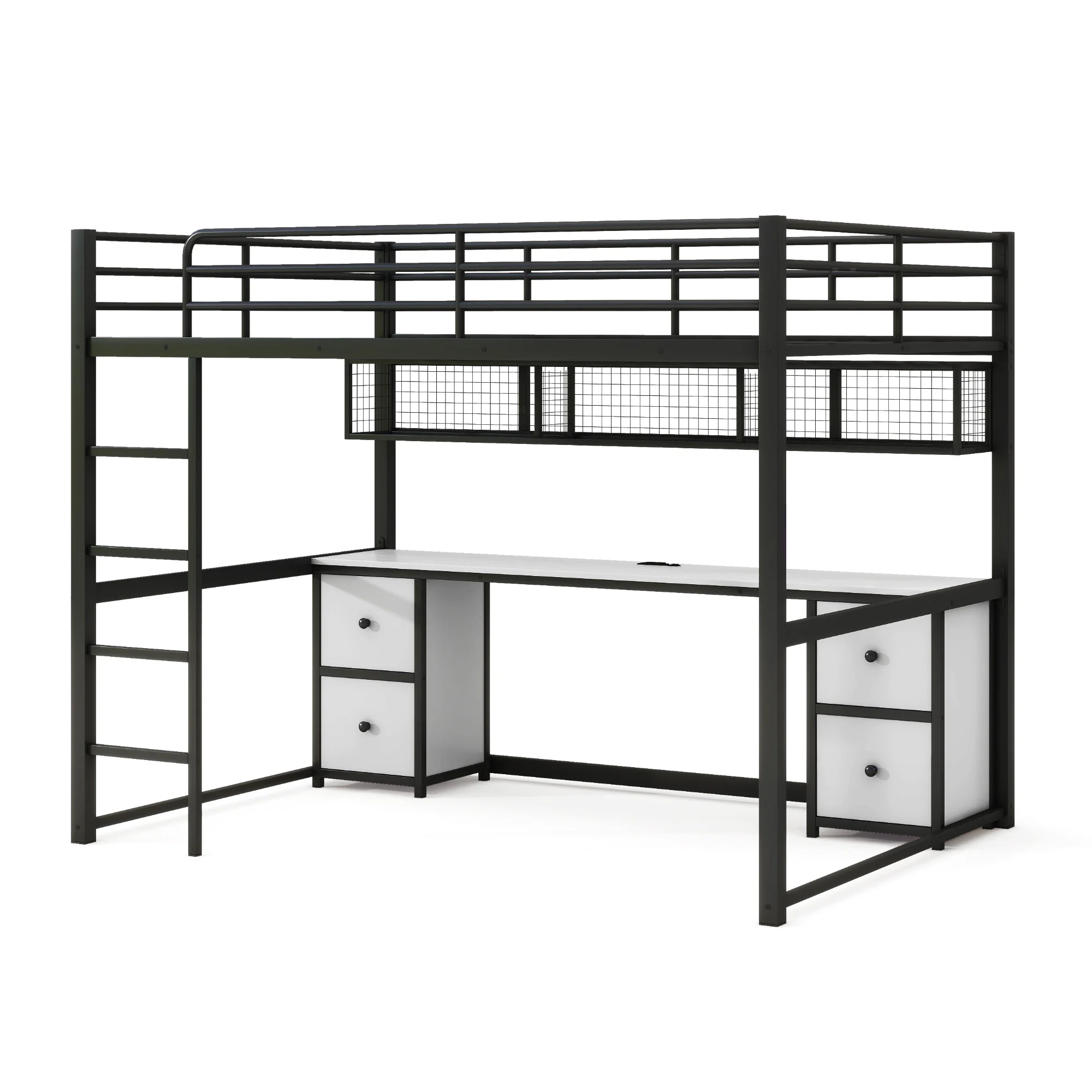 Gewnee Twin Size Metal Loft Bed with Desk and Shelving for Kids,Teens,Black
